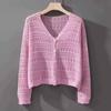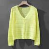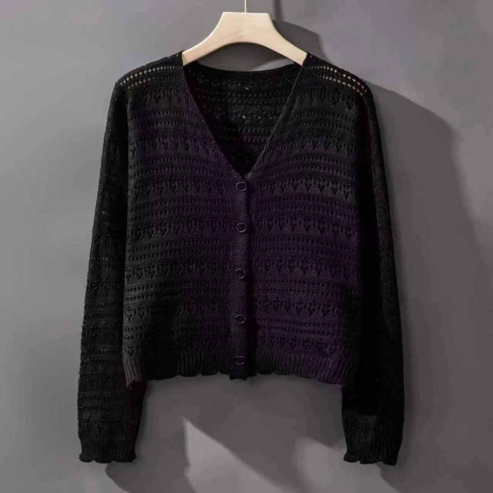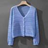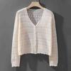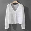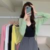 Cárdigan de punto de seda helada para mujer, estilo coreano, holgado, fino, de manga larga, corto, con protección solar, chal, novedad de verano