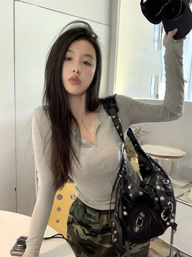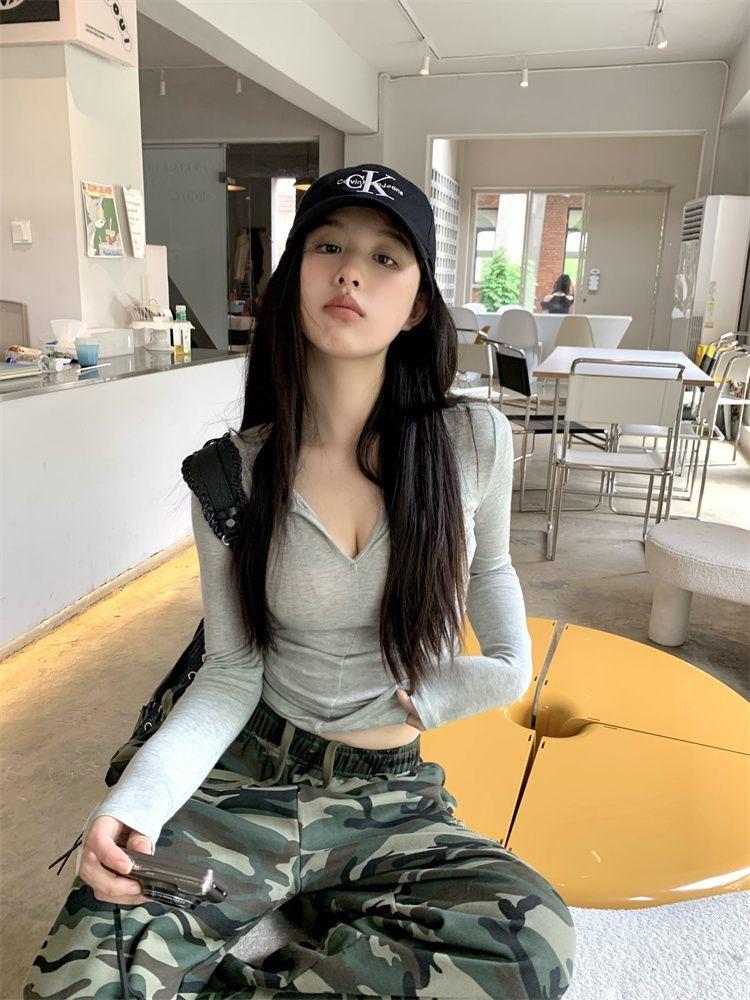 Camiseta de Protección Solar de Manga Larga Ajustada Estilo Deseo Puro Otoño Chicas Calientes Sexy Combinable Moda Nicho Top Ins
