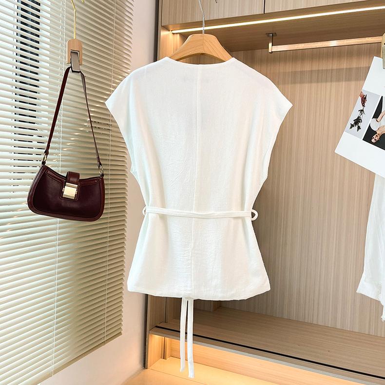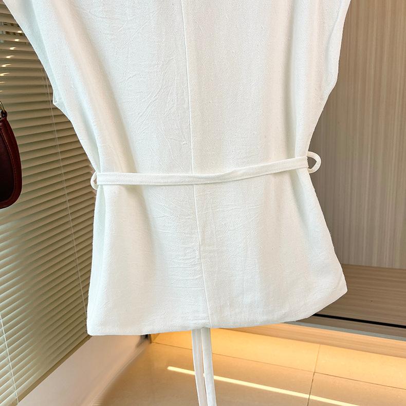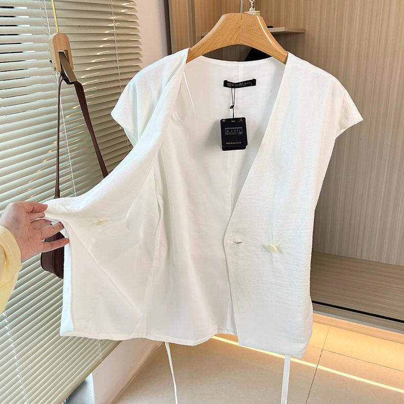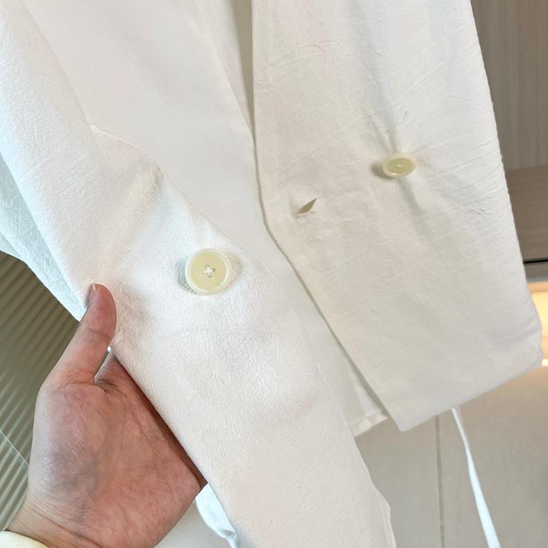 Español Individual en Stock 2025 Nuevo Estilo Chino Elegante para Viajeras Entallado con Lazo Camisa Blanca Blazer