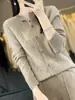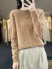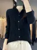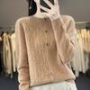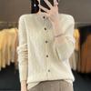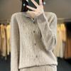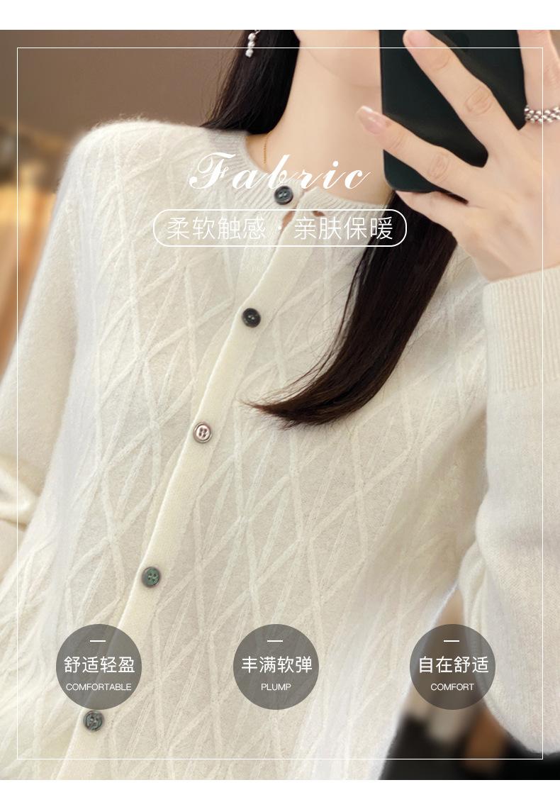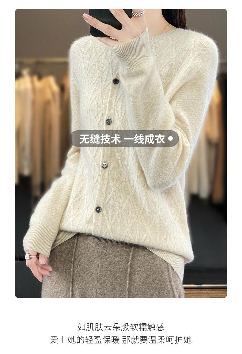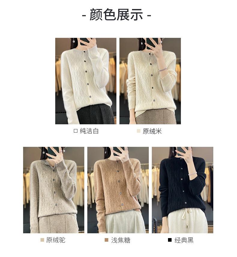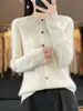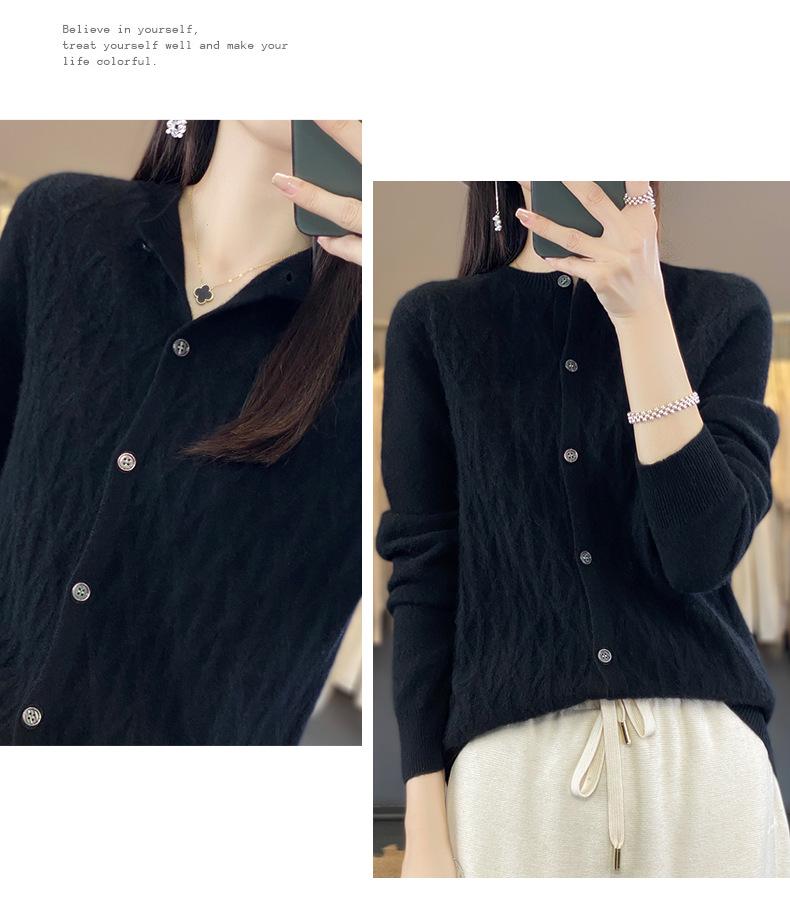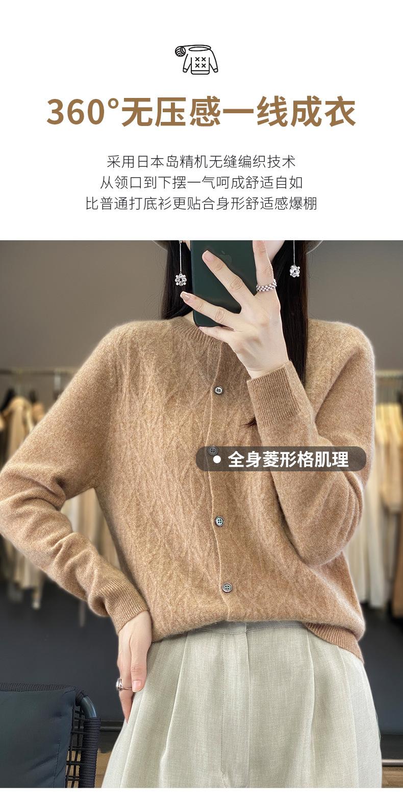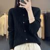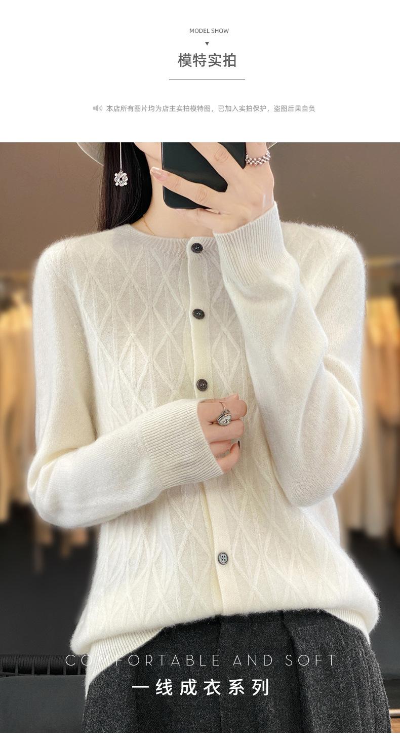 Top Elegante Suelto Jacquard Diamante para Mujer Otoño e Invierno 2025 Nuevo Lana Cuello Redondo Cárdigan Tejido Manga Larga