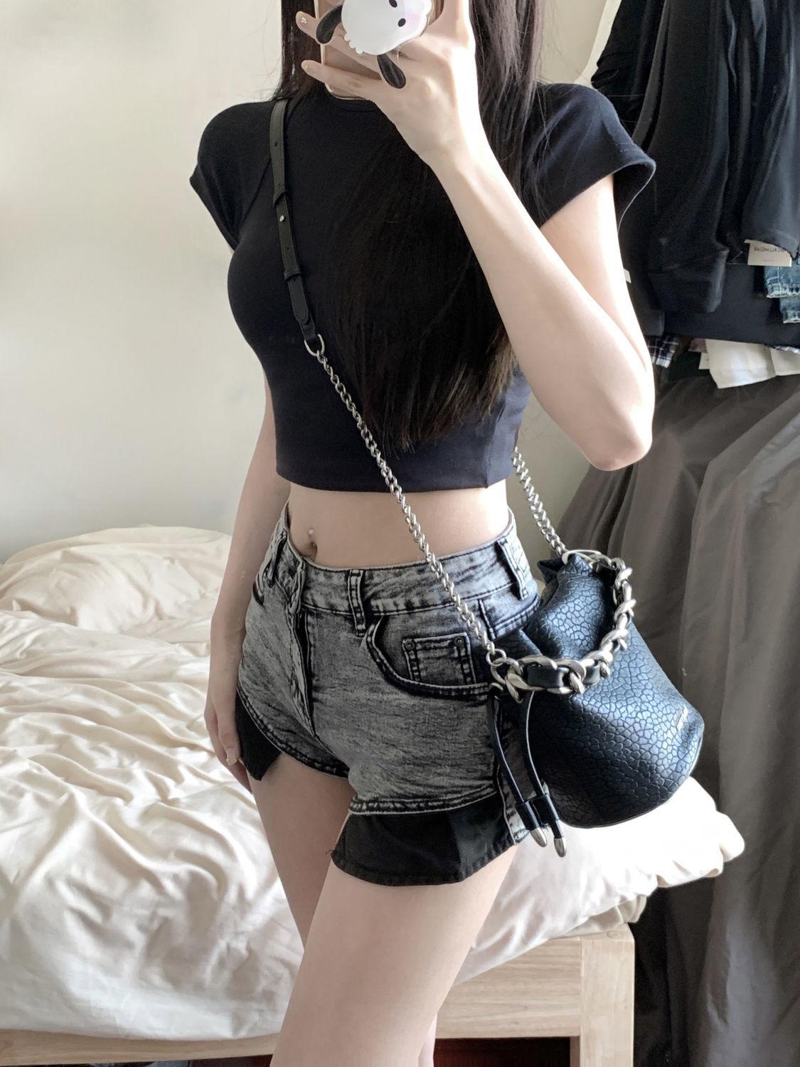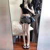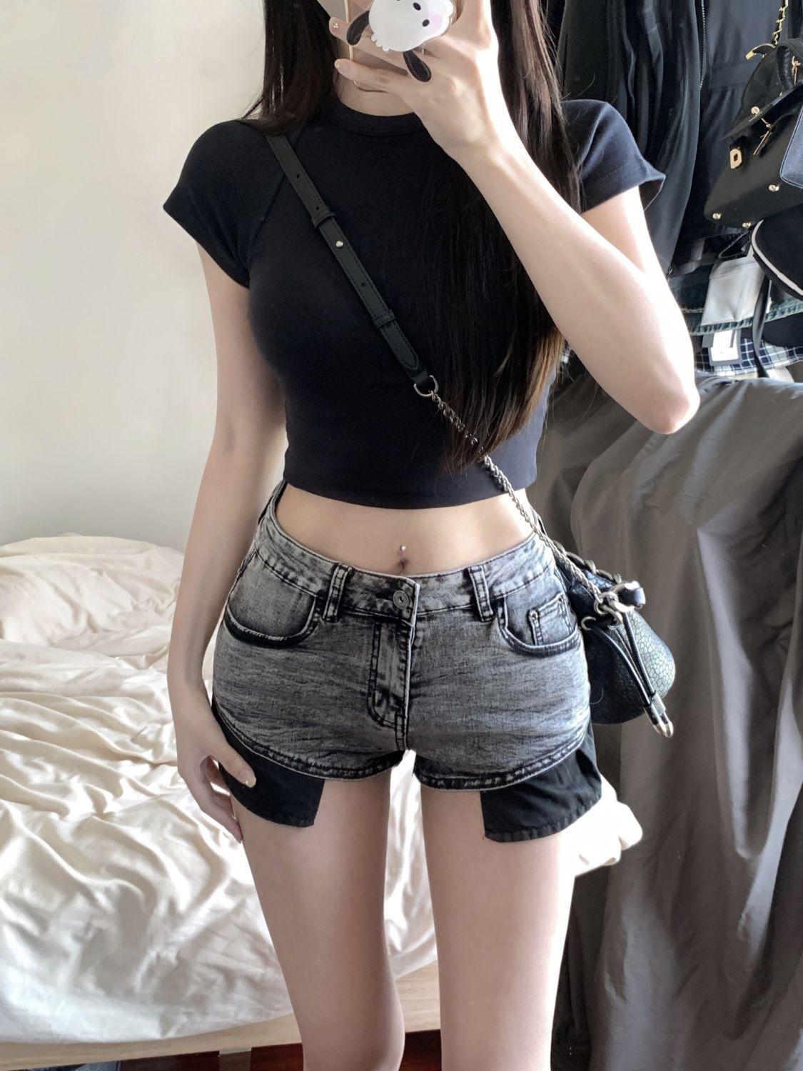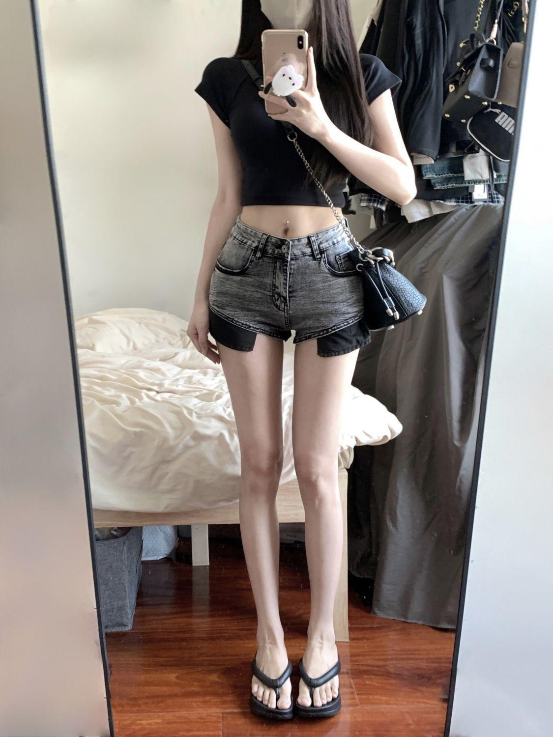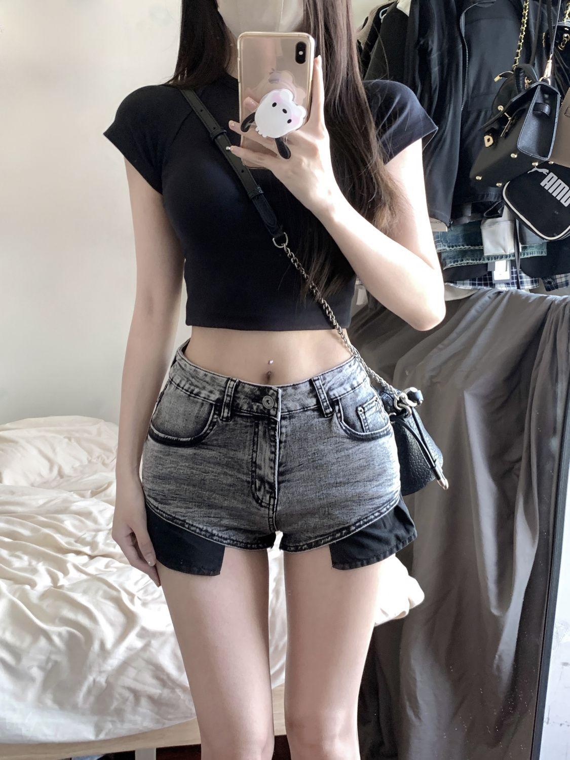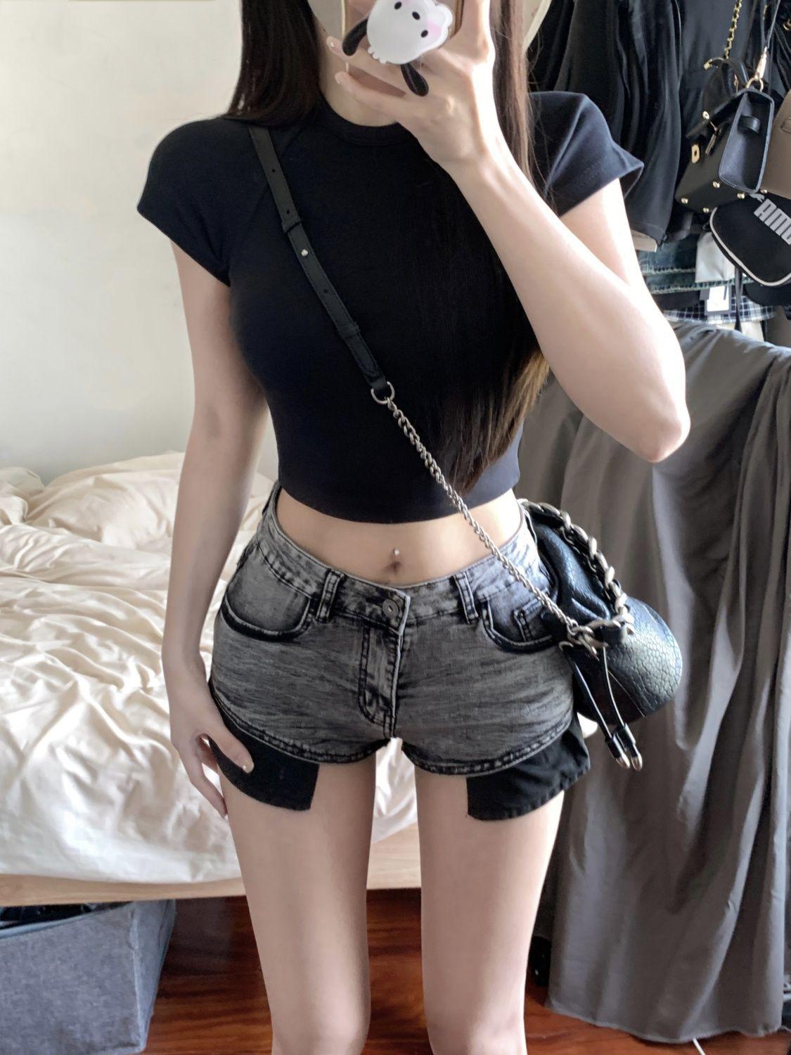 Pantalones cortos vaqueros anchos y sexys para mujer, novedad de verano 2024, cintura alta, combinables, ajustados, corte A, hasta la cadera.