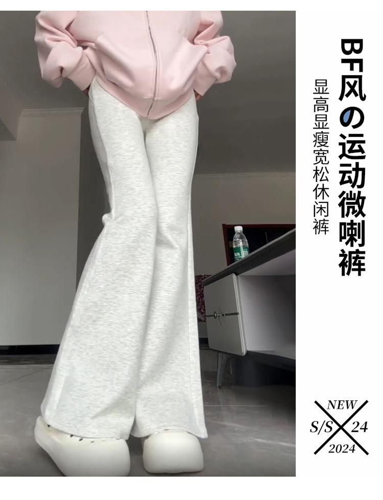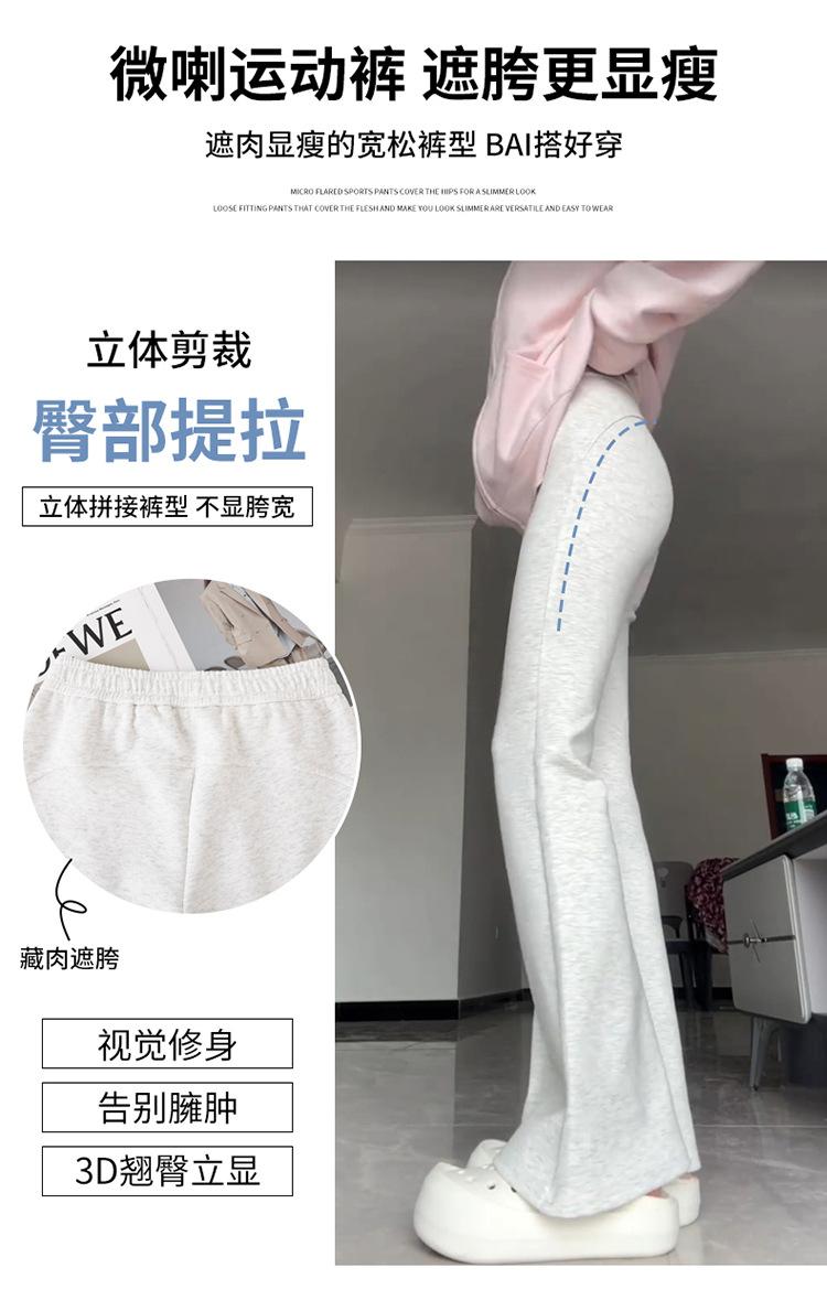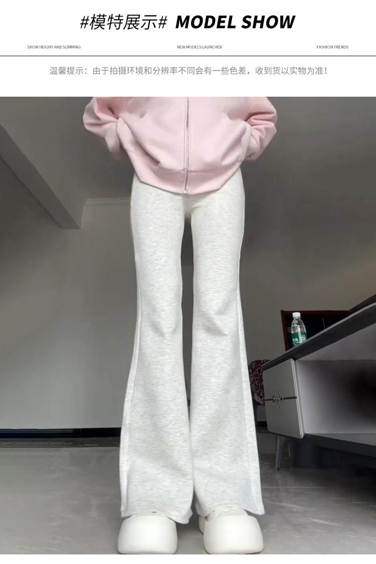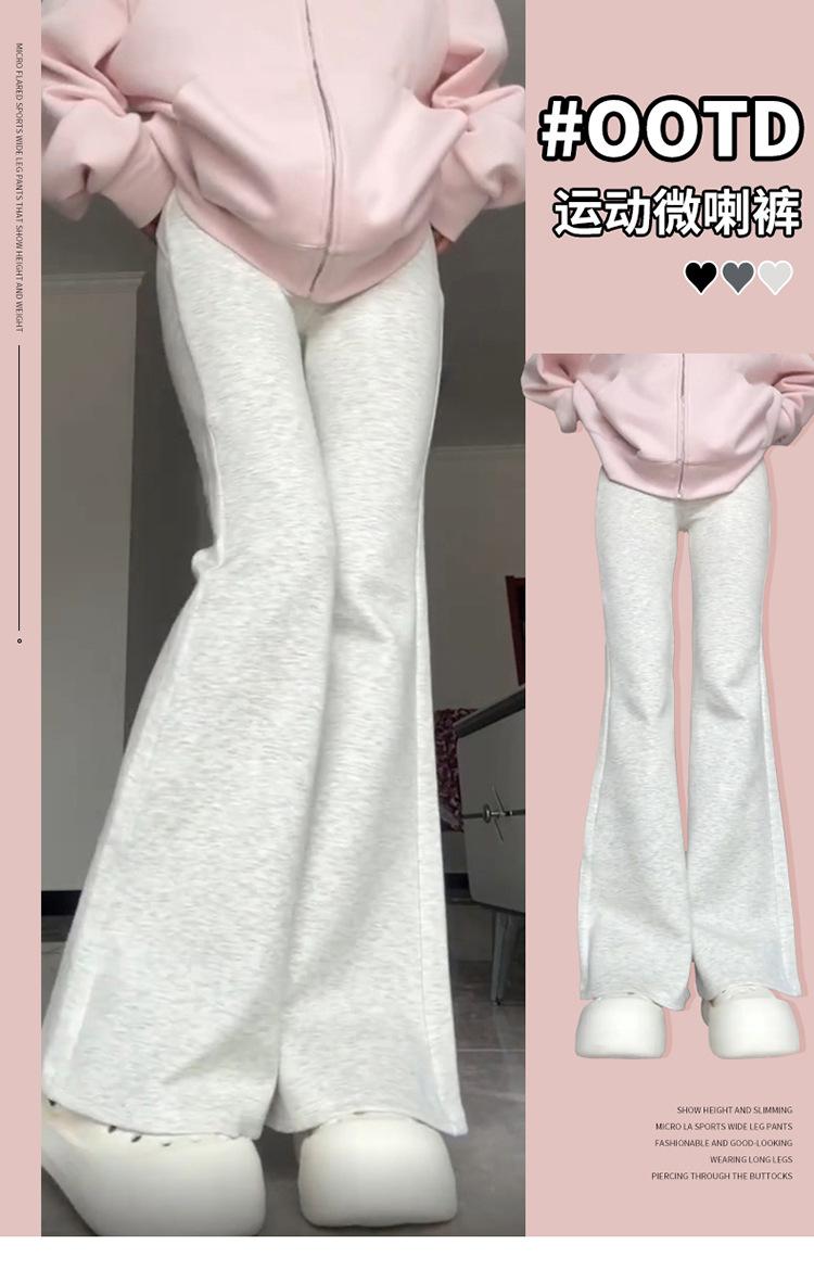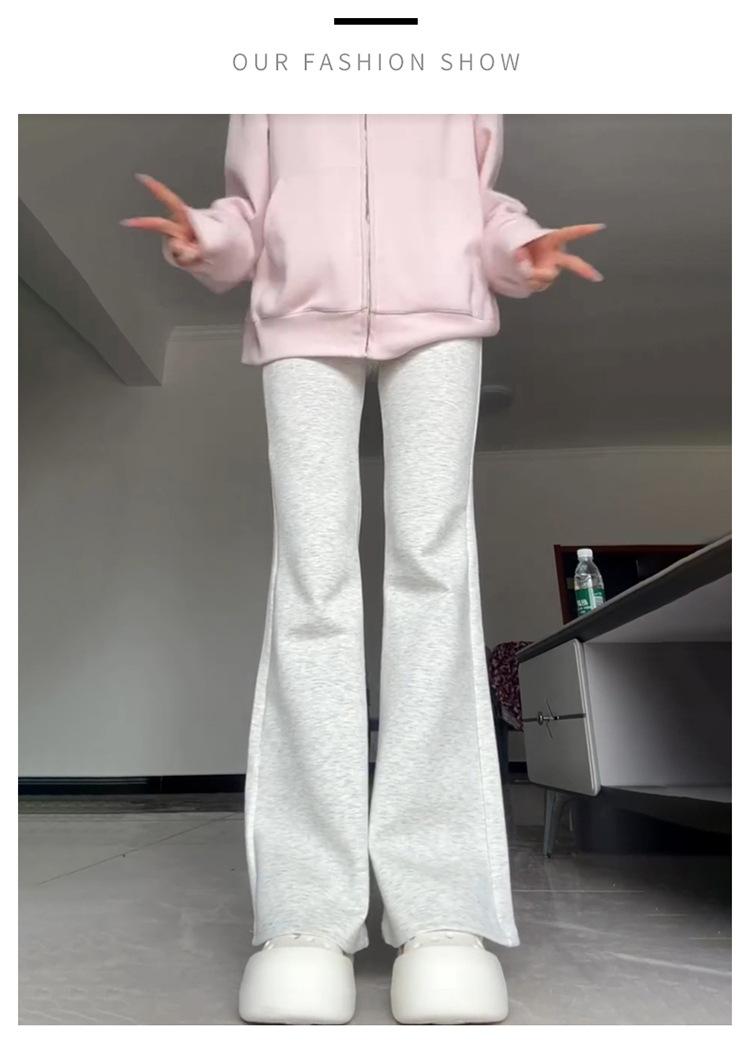 Pantalones deportivos acampanados gris-blanco para primavera y otoño de 2025, nuevos pantalones deportivos largos acampanados casuales petite adelgazantes de cintura alta