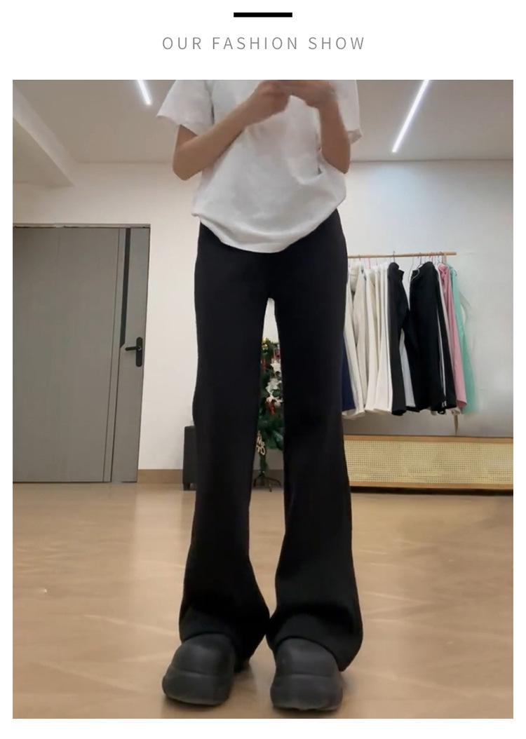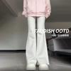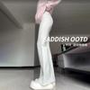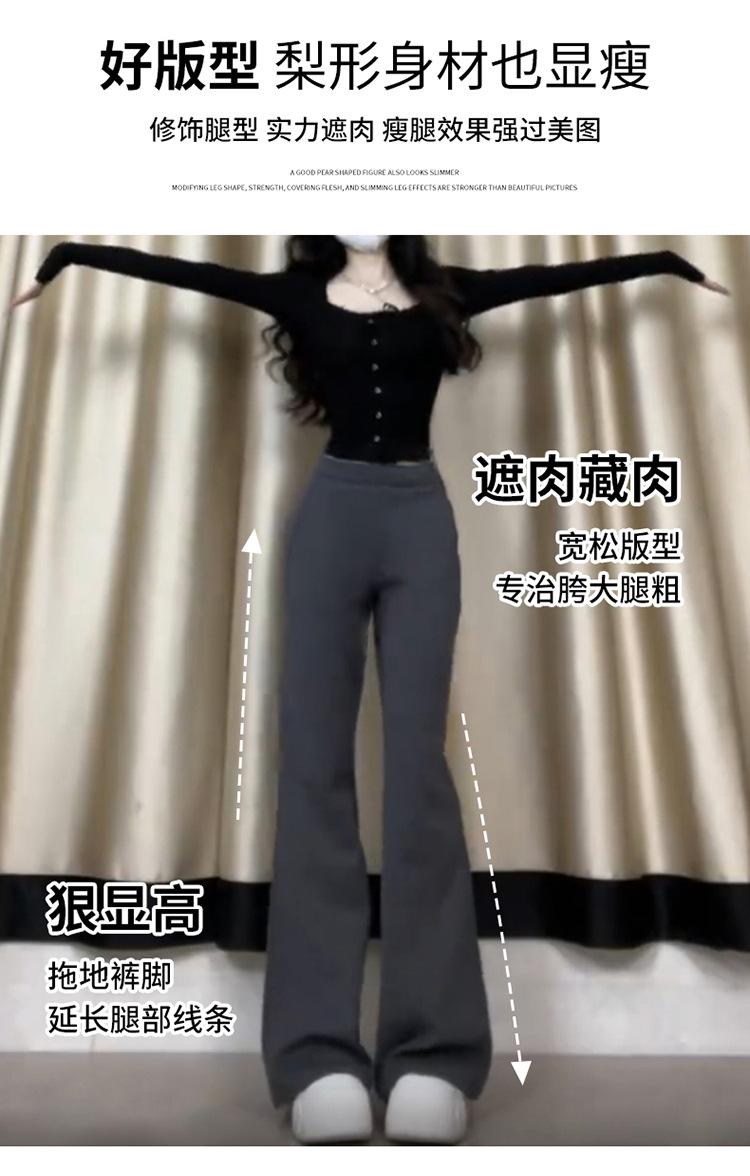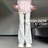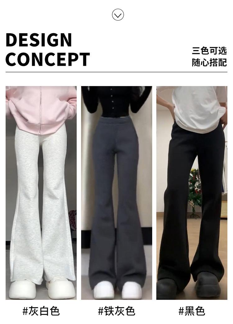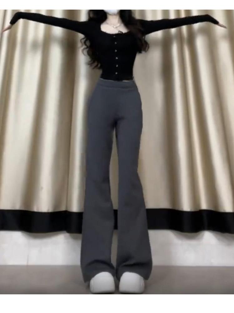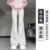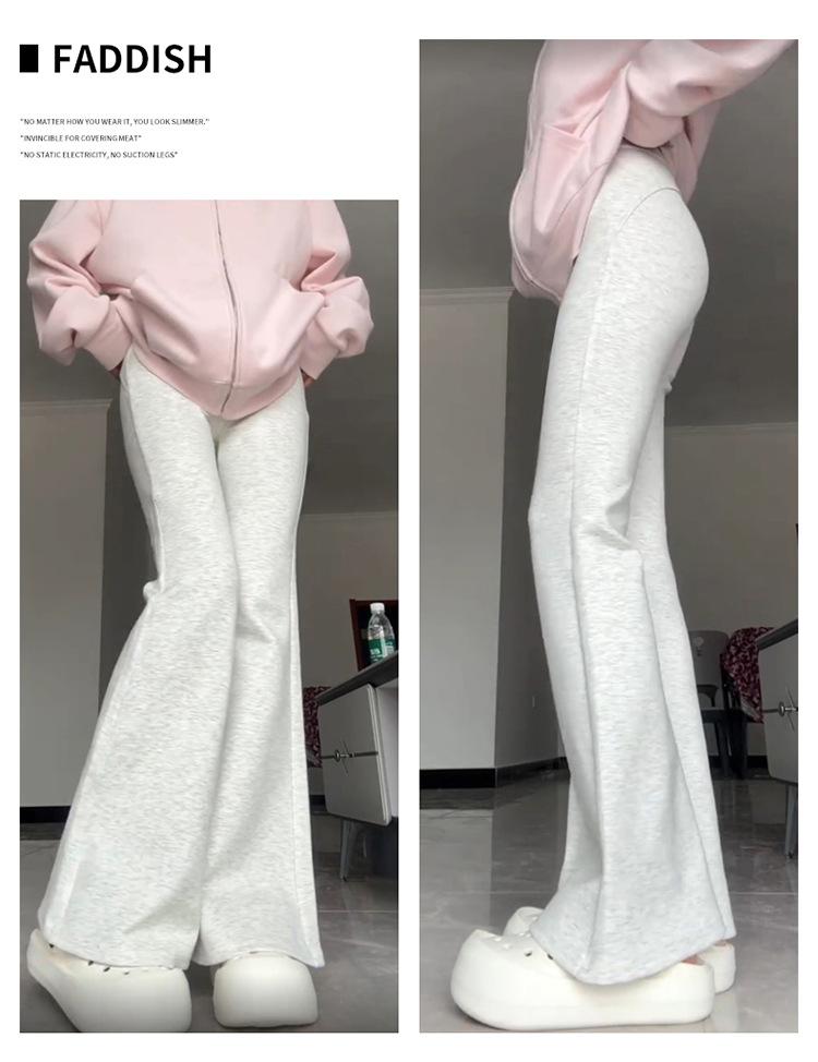 Pantalones deportivos acampanados gris-blanco para primavera y otoño de 2025, nuevos pantalones deportivos largos acampanados casuales petite adelgazantes de cintura alta