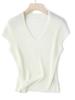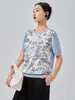 [Incluyendo seda de morera] top de verano de seda jacquard de hombro y manga corta, suéter corto para mujer, camiseta de punto para mujer