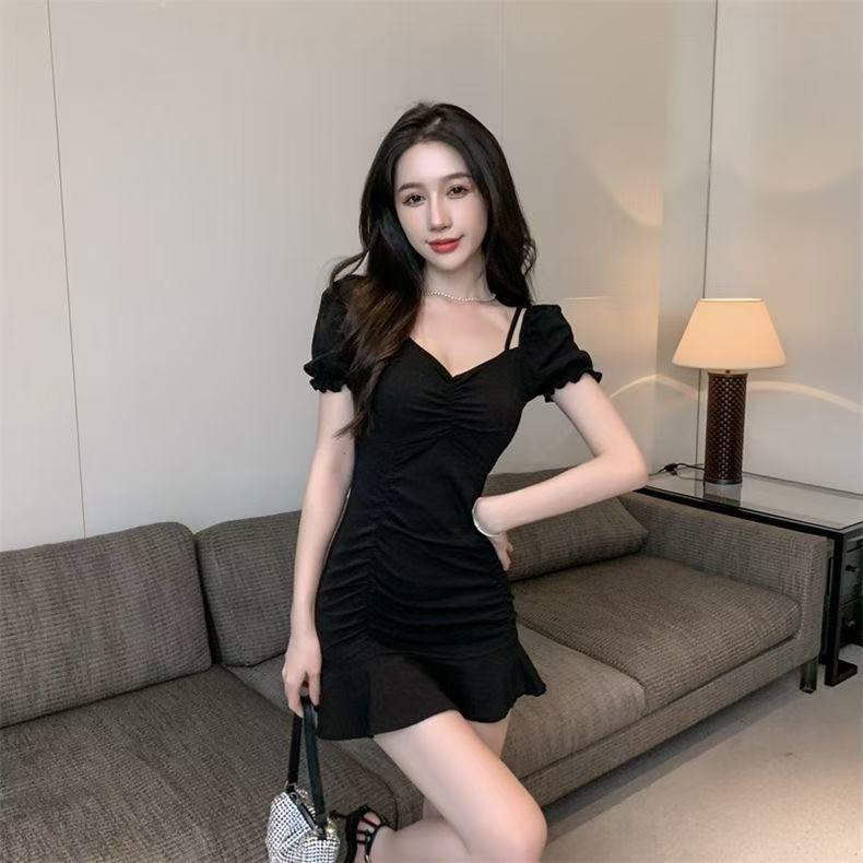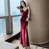 Vestido Rojo Sexy con Tirantes y un Hombro para Trabajo Nocturno 2025 Nuevo Estilo Ajustado Ceñido a las Caderas Falda de Cola de Pescado