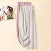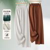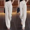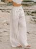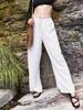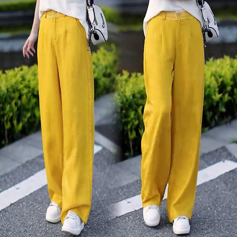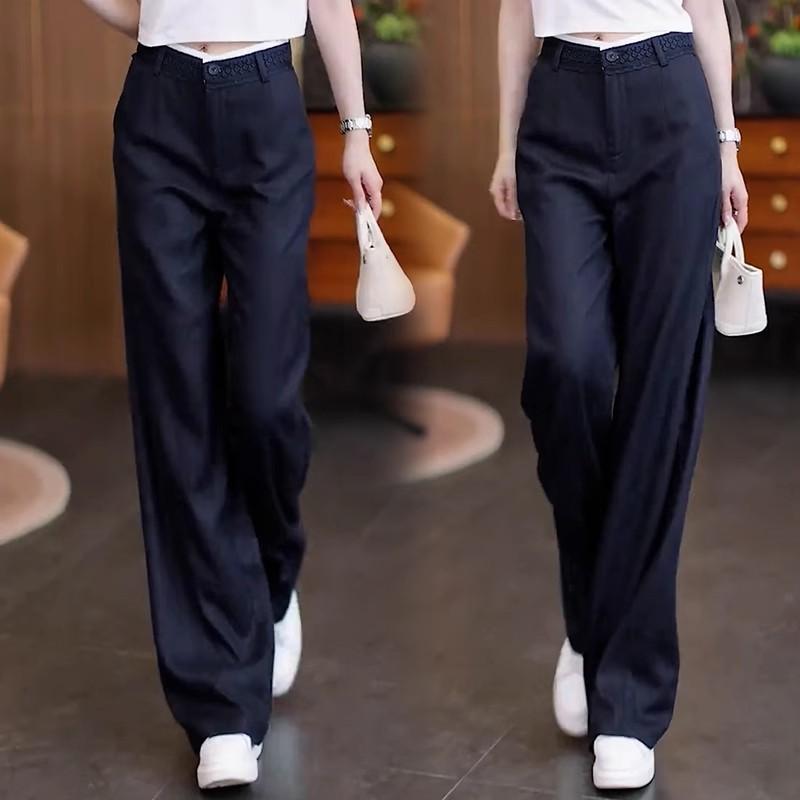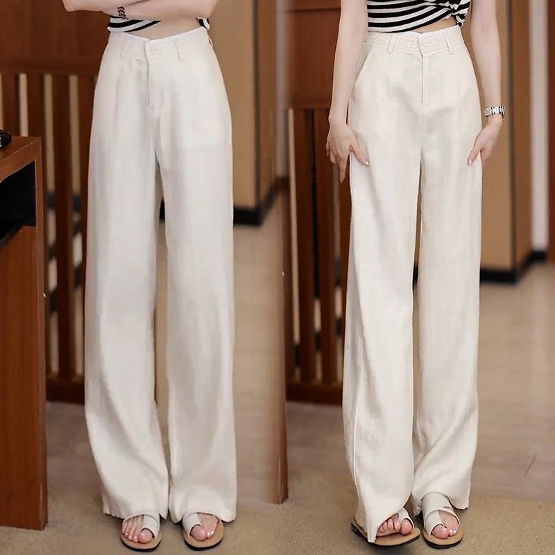 2025 Verano Nuevo Pantalones Finos de Lino Tencel de Pierna Ancha para Mujer Cintura Alta Sueltos Adorno de Encaje Algodón Lino Versátiles Rectos