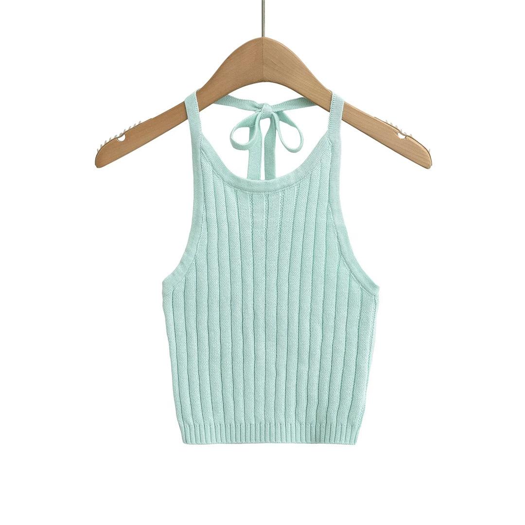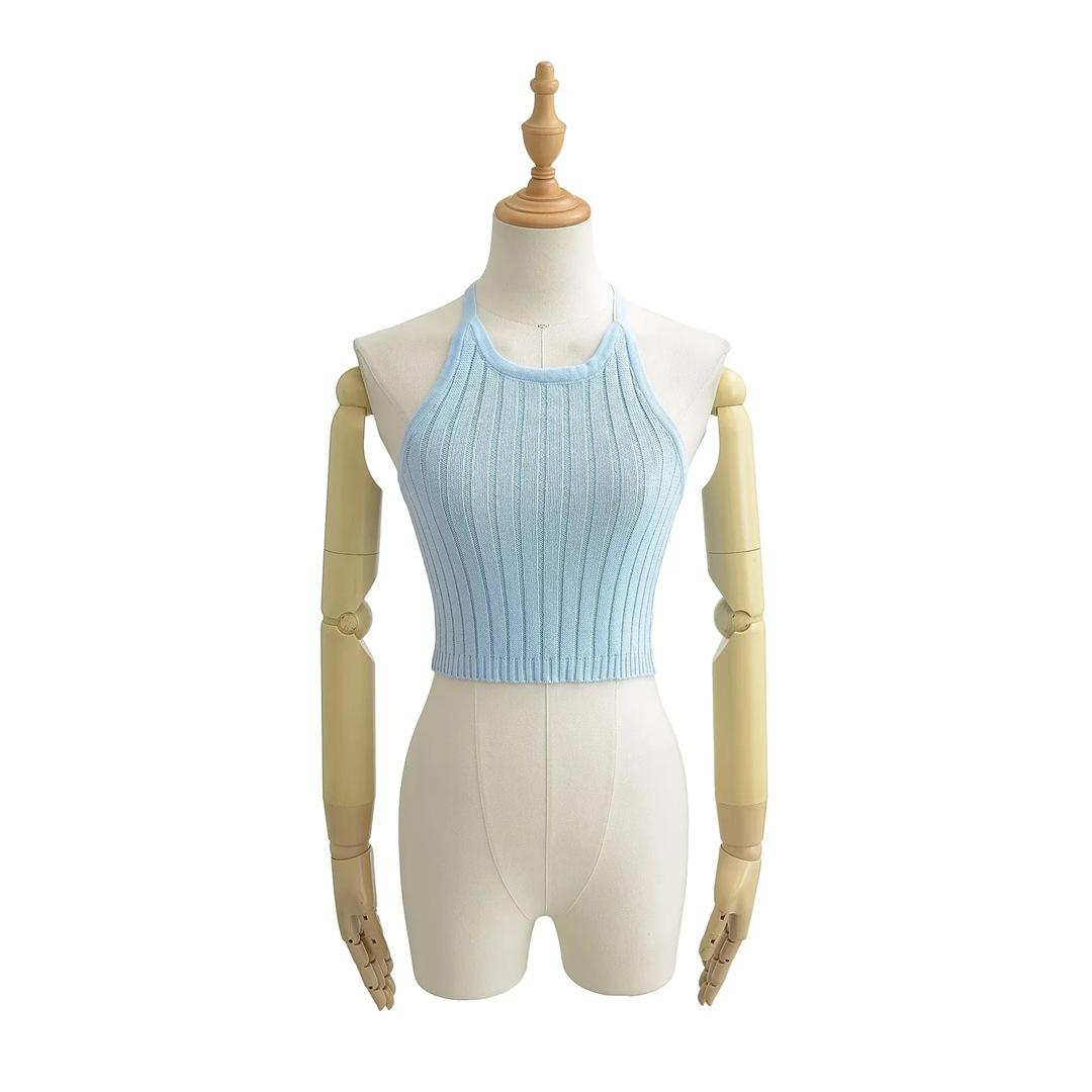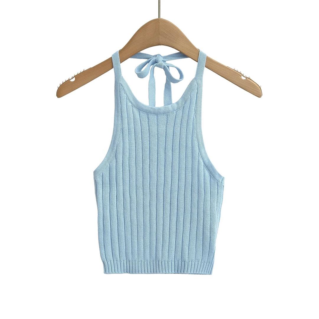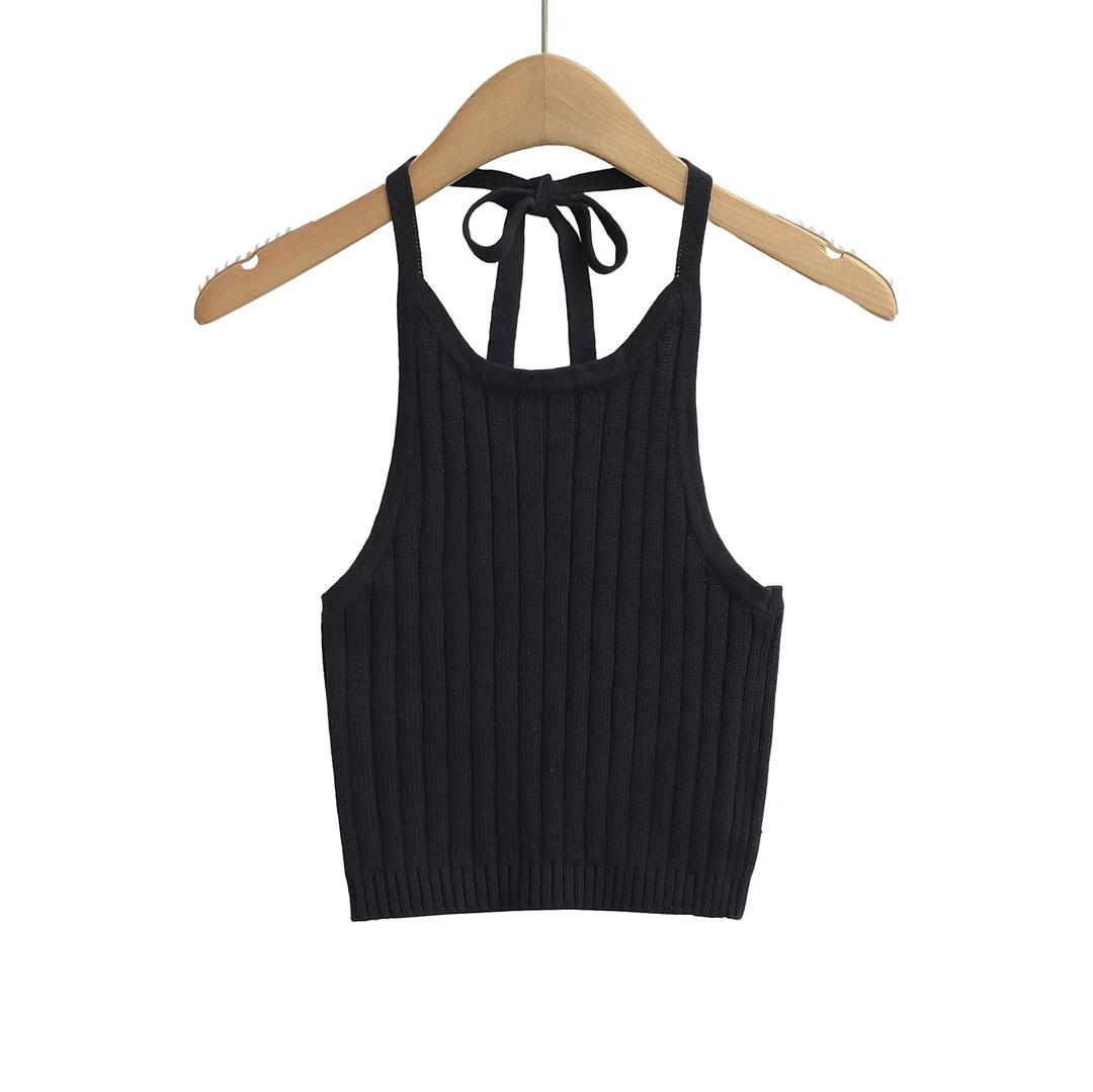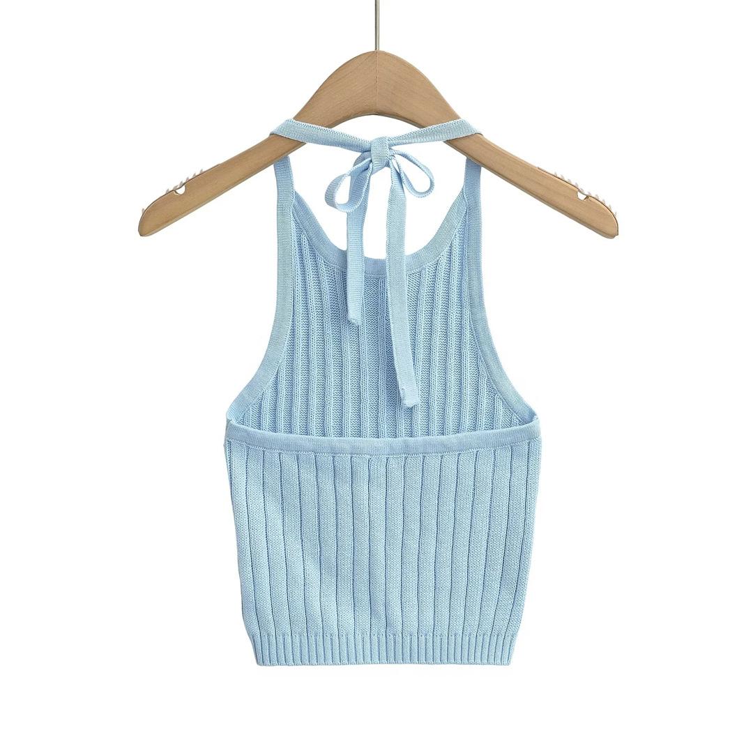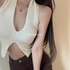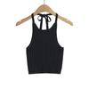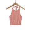 Estilo Europeo y Americano Sexy Camisola de Punto con Cuello Halter Niche Ropa Exterior Sin Espalda Ultra Corta Top sin Mangas de Color Sólido