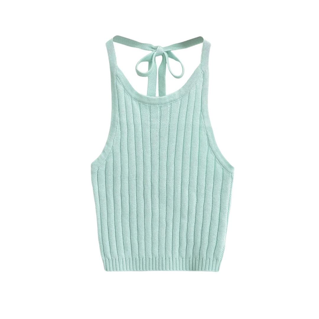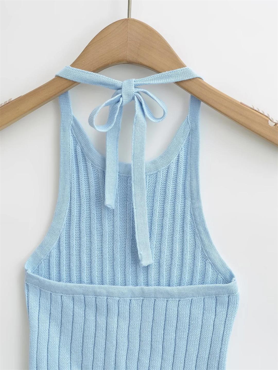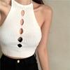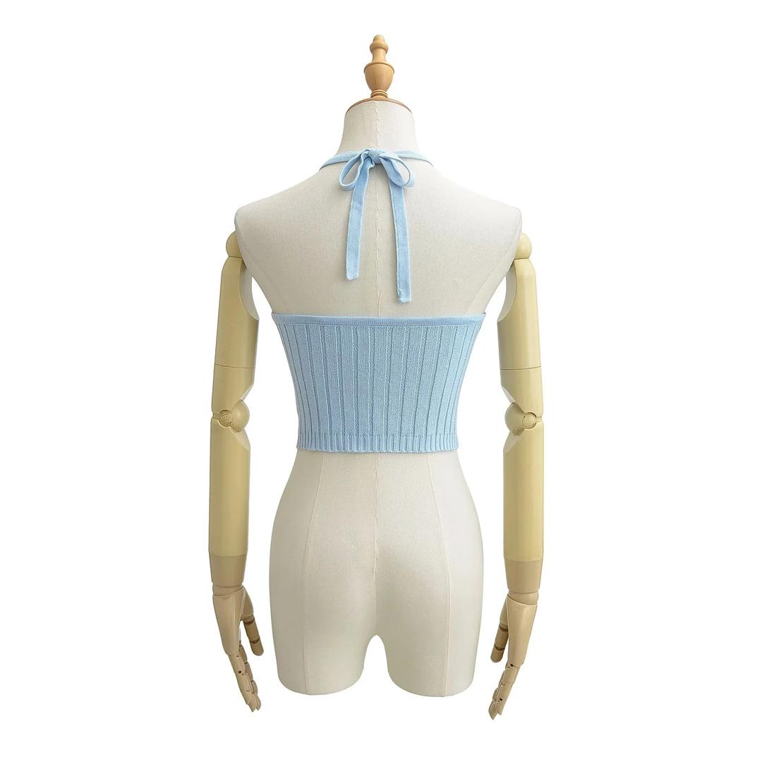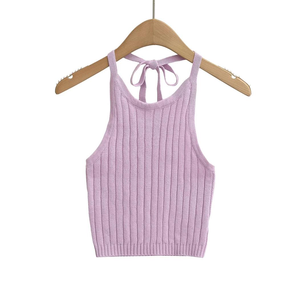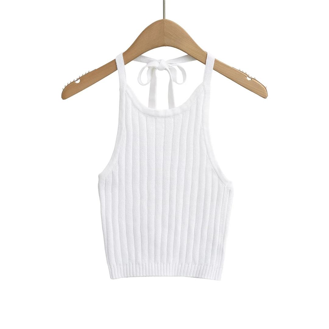 Estilo Europeo y Americano Sexy Camisola de Punto con Cuello Halter Niche Ropa Exterior Sin Espalda Ultra Corta Top sin Mangas de Color Sólido