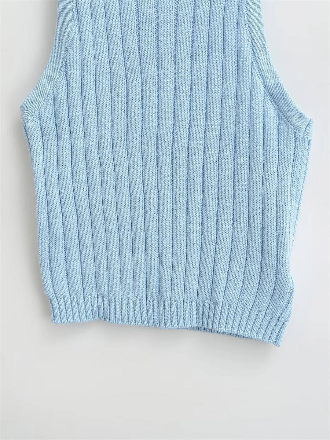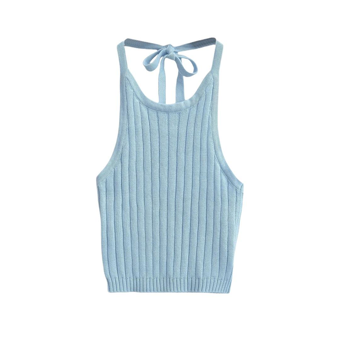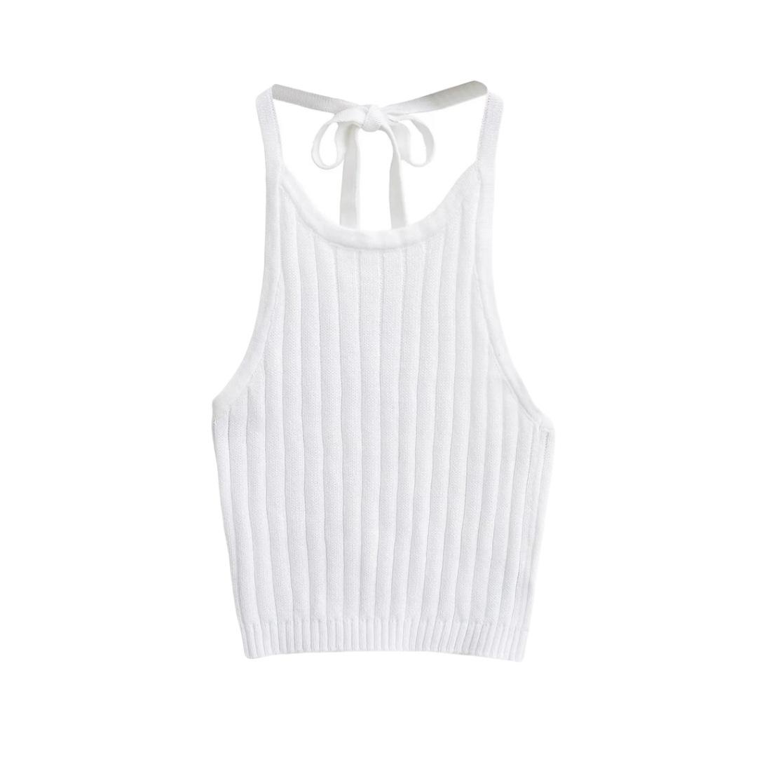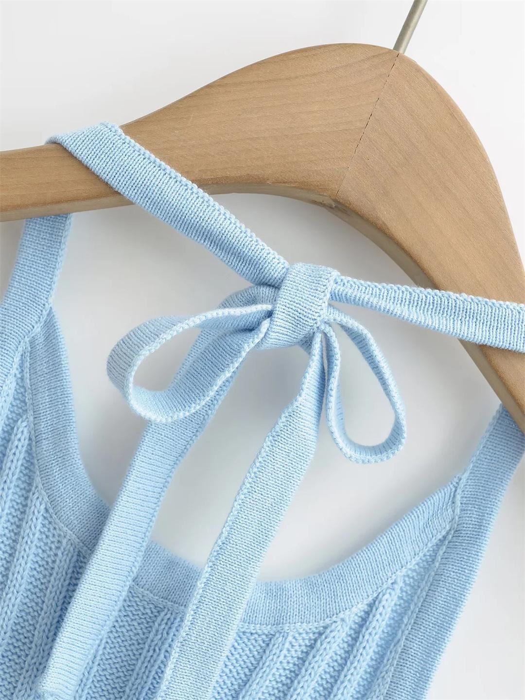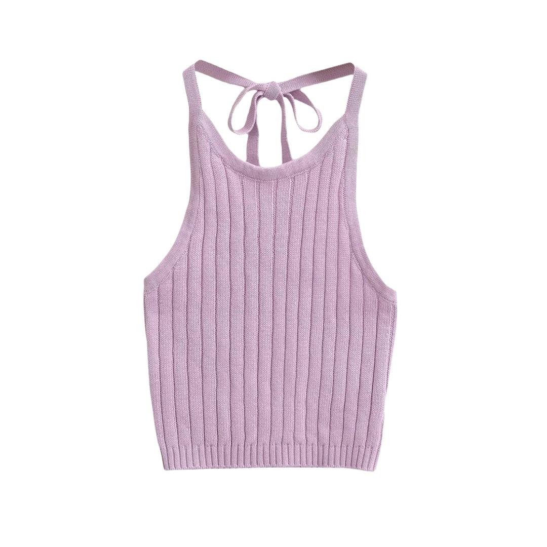 Estilo Europeo y Americano Sexy Camisola de Punto con Cuello Halter Niche Ropa Exterior Sin Espalda Ultra Corta Top sin Mangas de Color Sólido