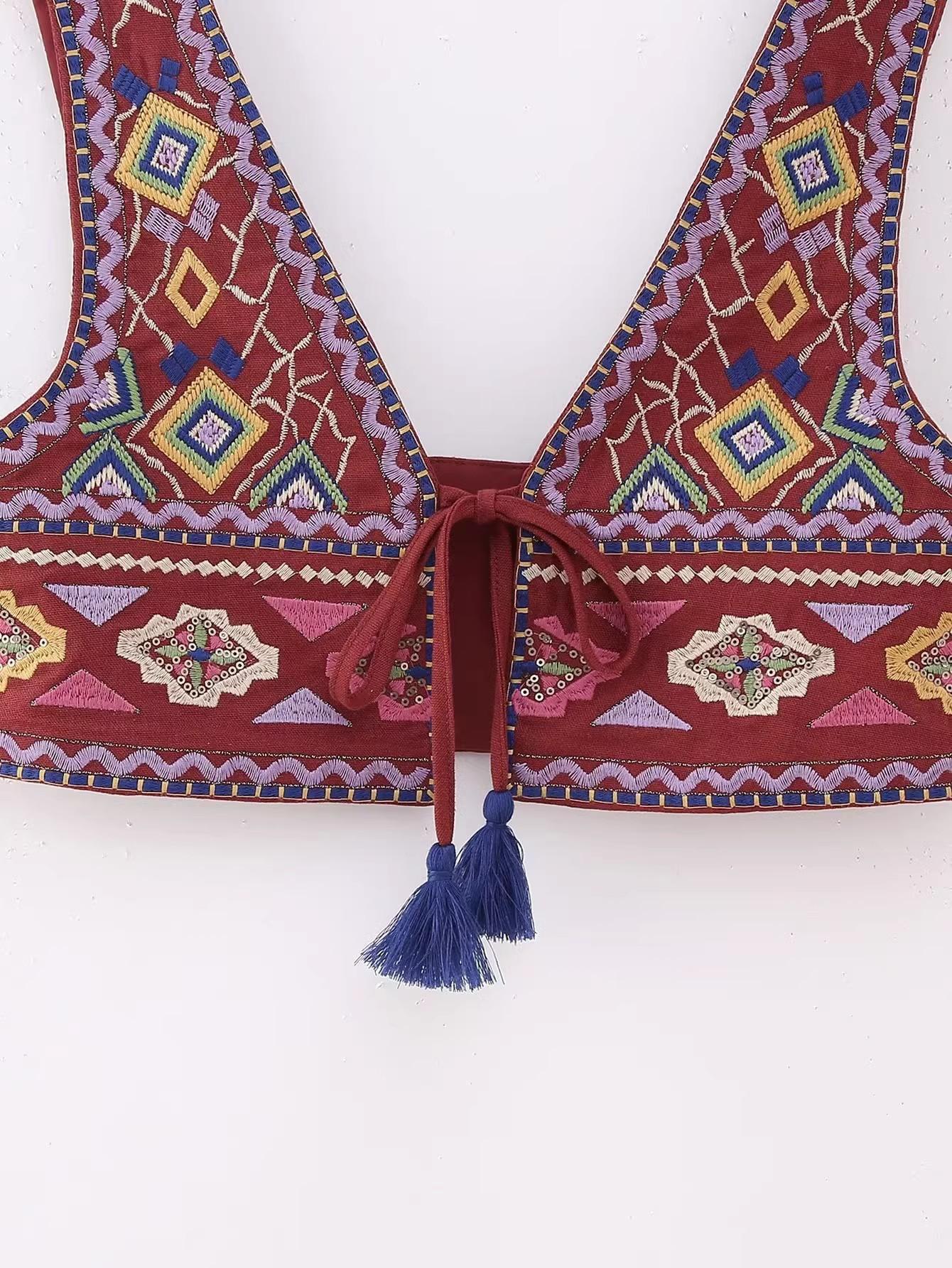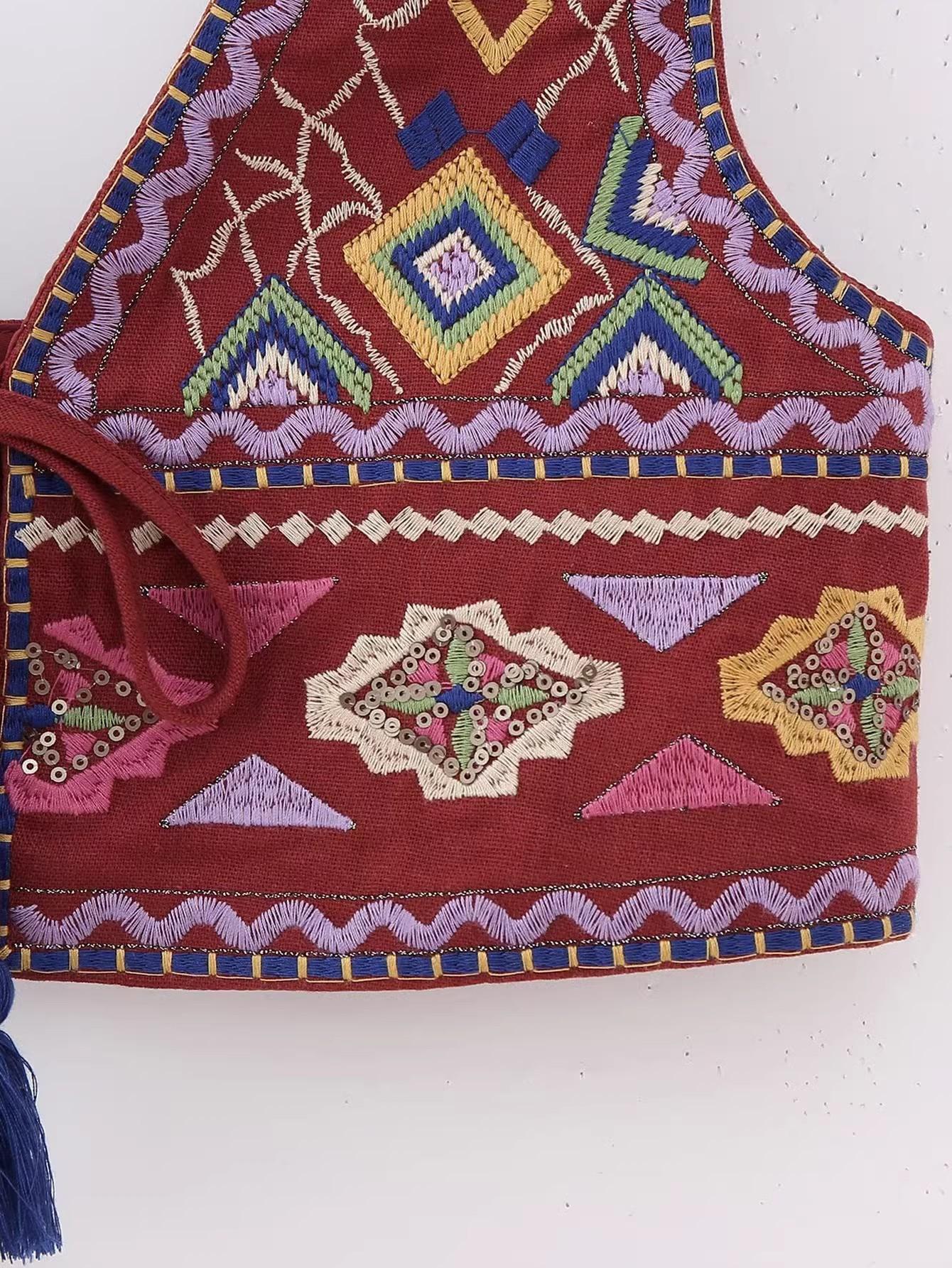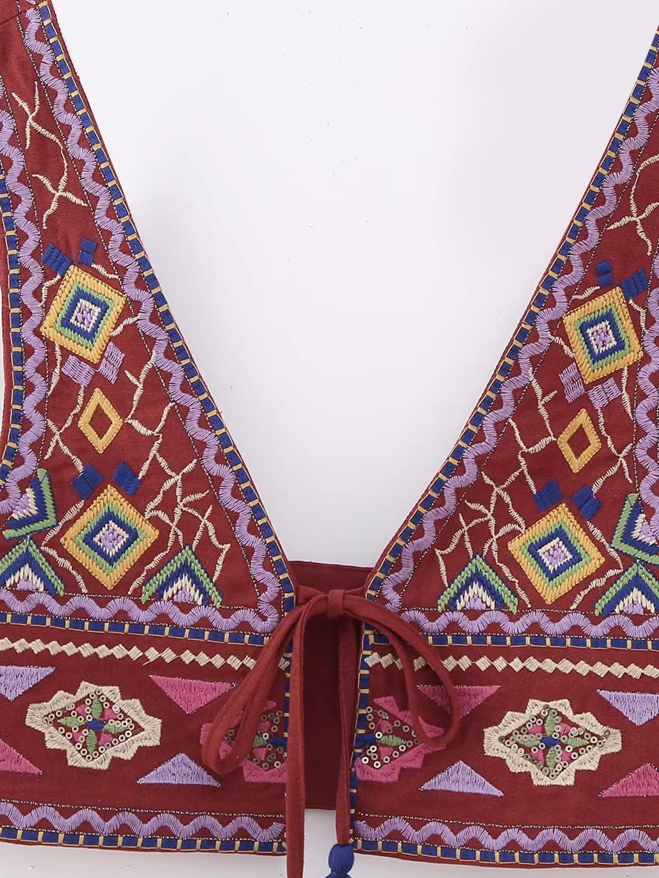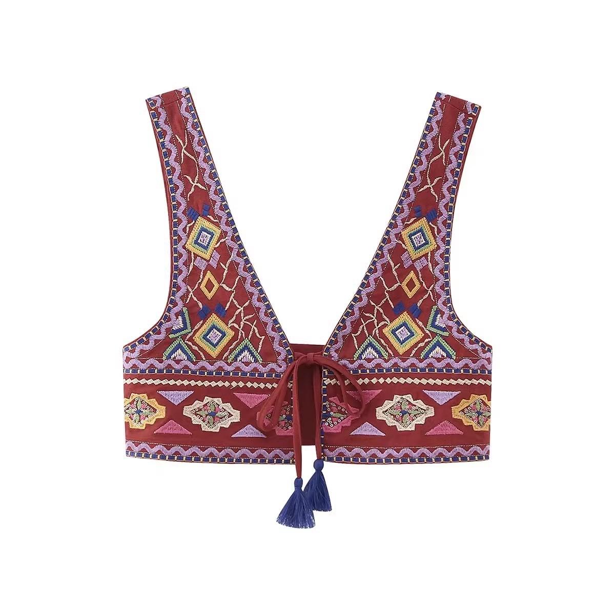 Verano 2024 Nuevo Ropa de Mujer Estilo Europeo y Americano Cuello en V Tirante Ancho Bordado Chaleco Corto 0881 716 605