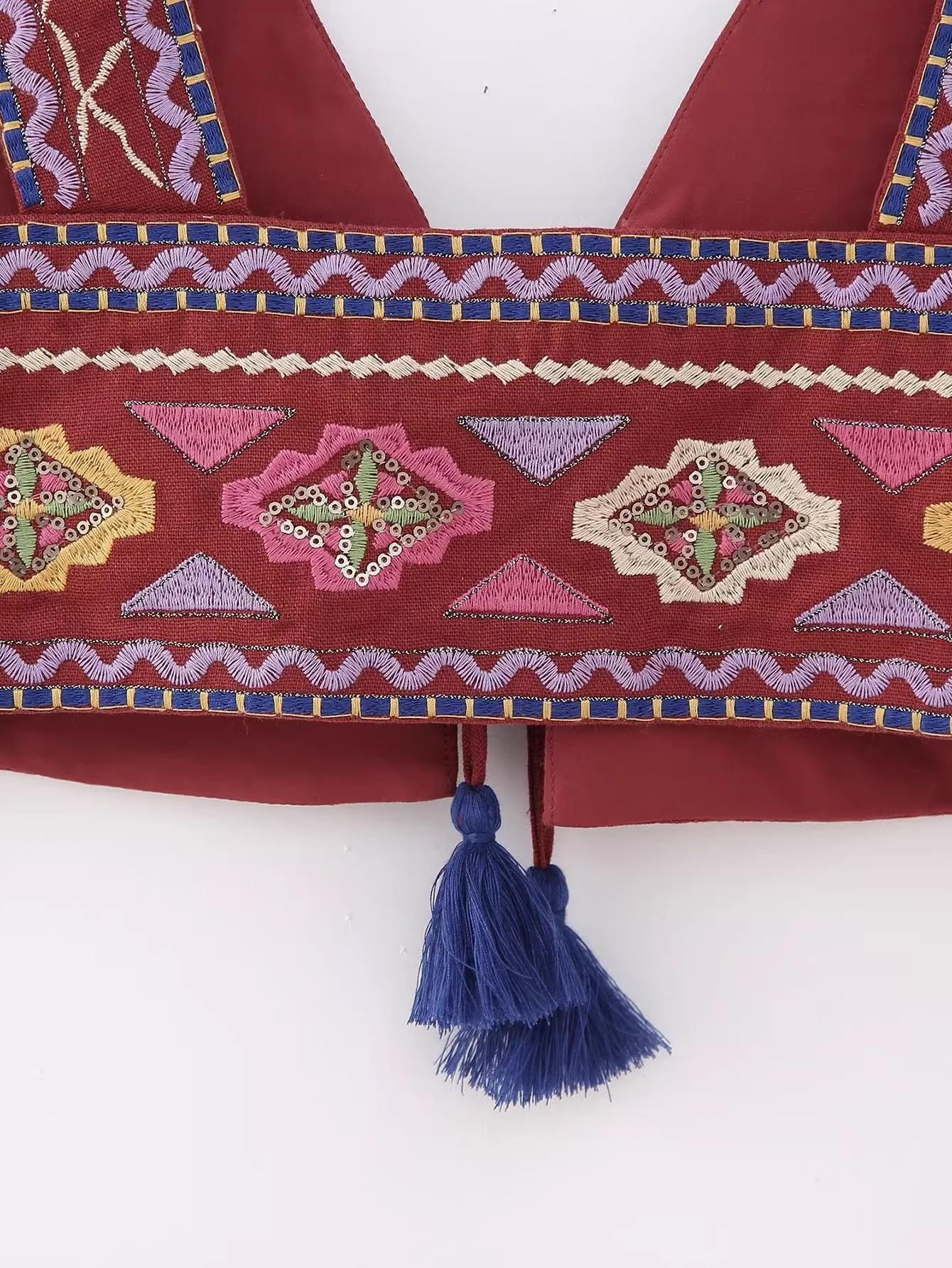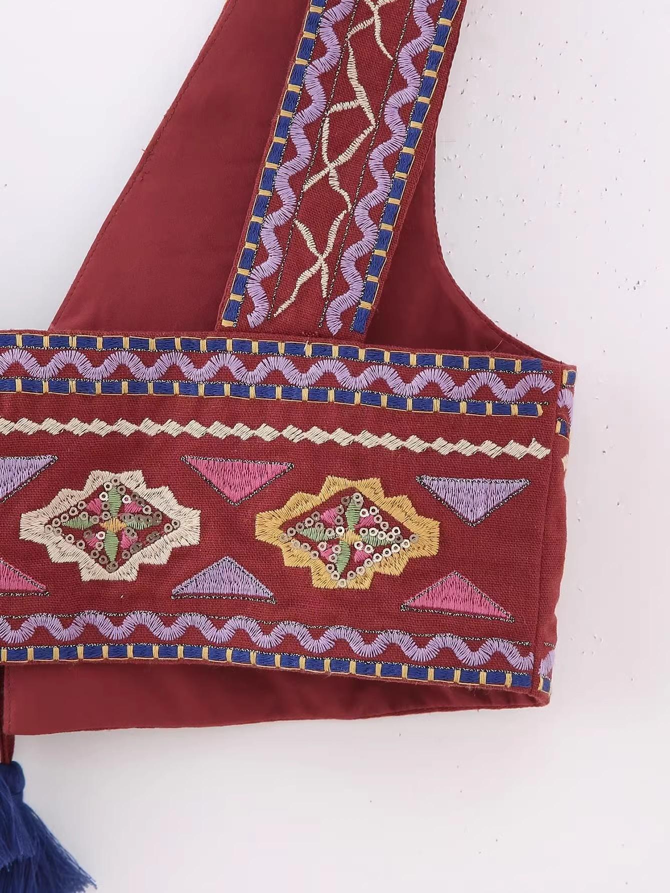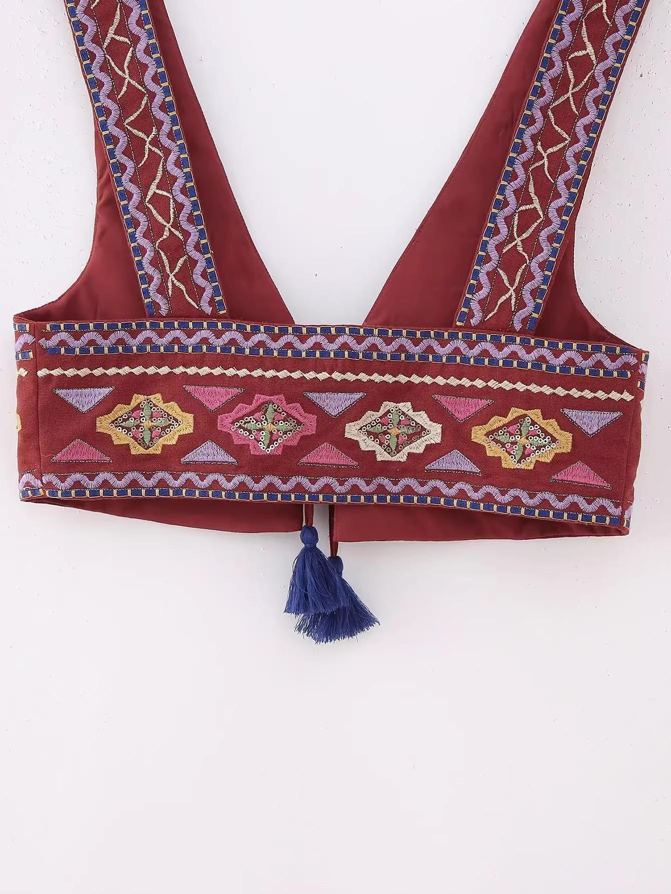 Verano 2024 Nuevo Ropa de Mujer Estilo Europeo y Americano Cuello en V Tirante Ancho Bordado Chaleco Corto 0881 716 605