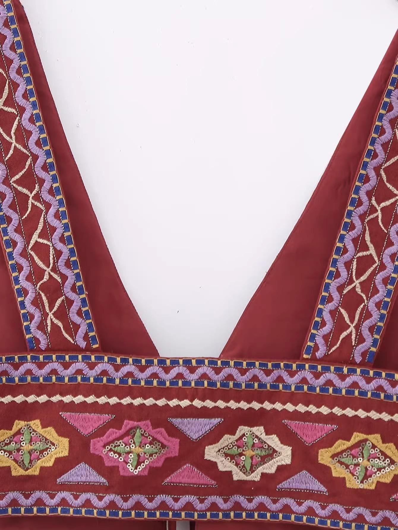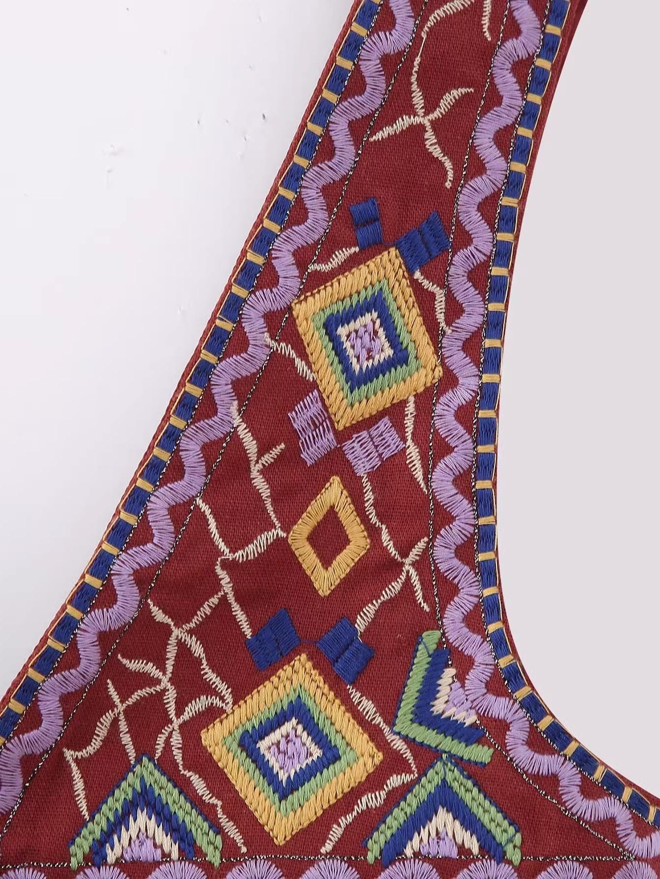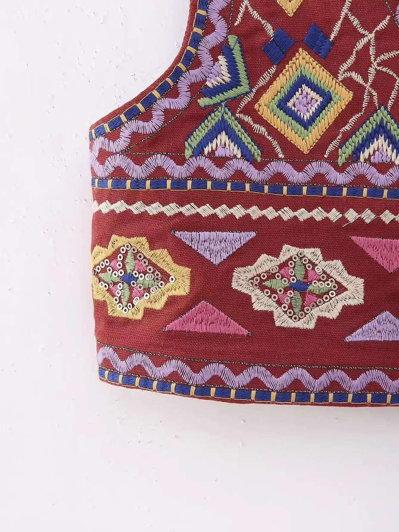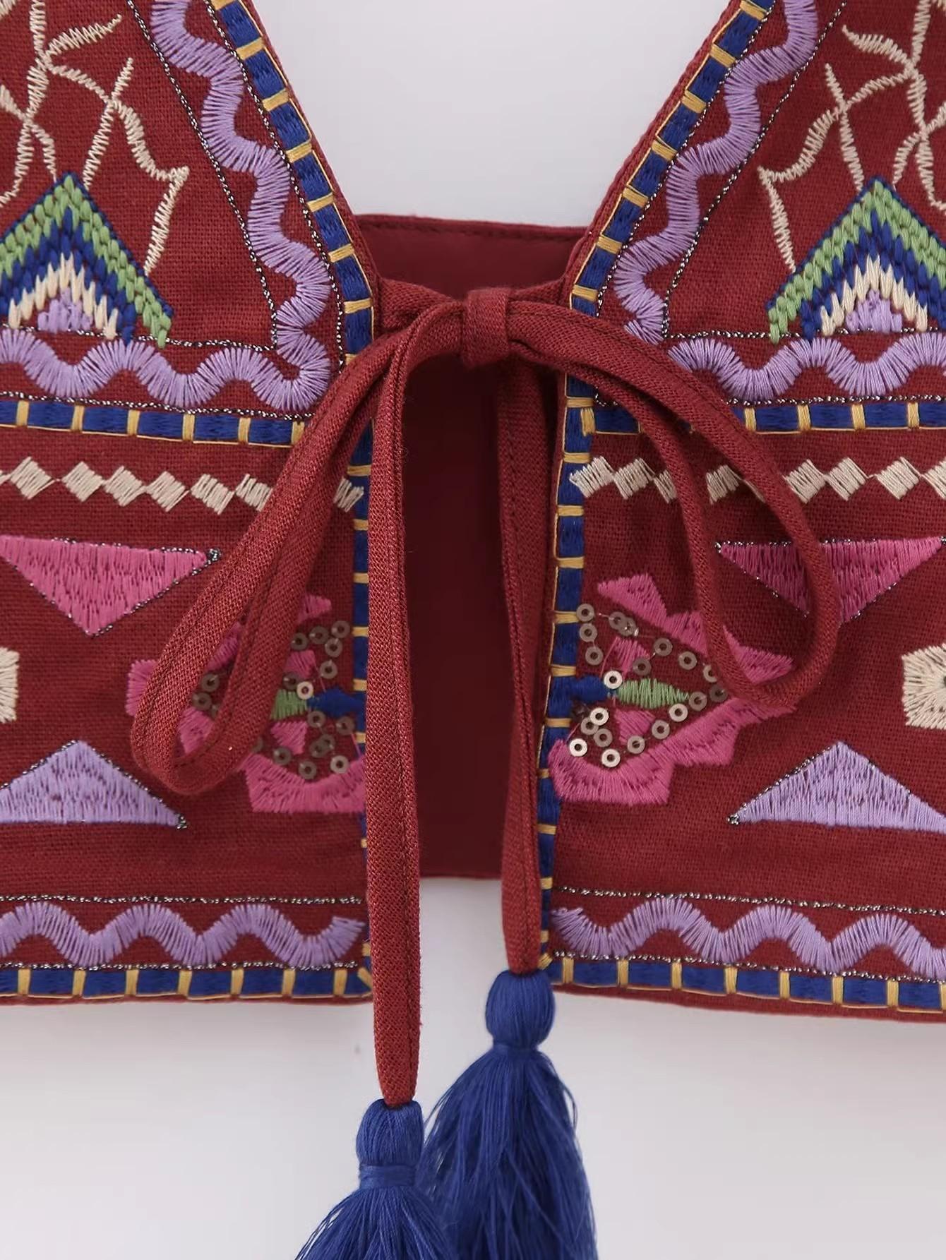 Verano 2024 Nuevo Ropa de Mujer Estilo Europeo y Americano Cuello en V Tirante Ancho Bordado Chaleco Corto 0881 716 605