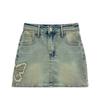 Falda de mezclilla de talle alto con mariposa bordada para mujer Diseño de verano 2025 Falda corta ceñida al cuerpo en línea A delgada y versátil