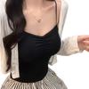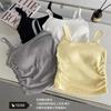 Estilo Puro Sexy Camisola Plisada de Verano para Mujer Cinturón Almohadilla para el Pecho Interior Cintura Ajustada Base Ropa Exterior Top Corto