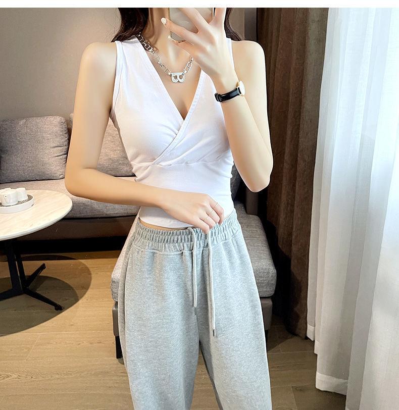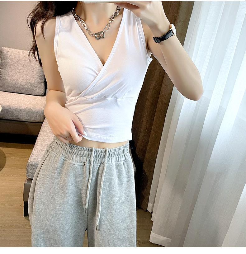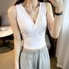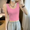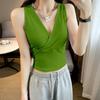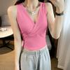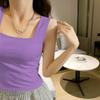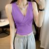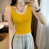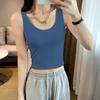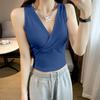 Camisola de Mujer con Cuello Corta de Verano Ajustada Sexy Diseño de Espalda Sin Mangas Top Básico