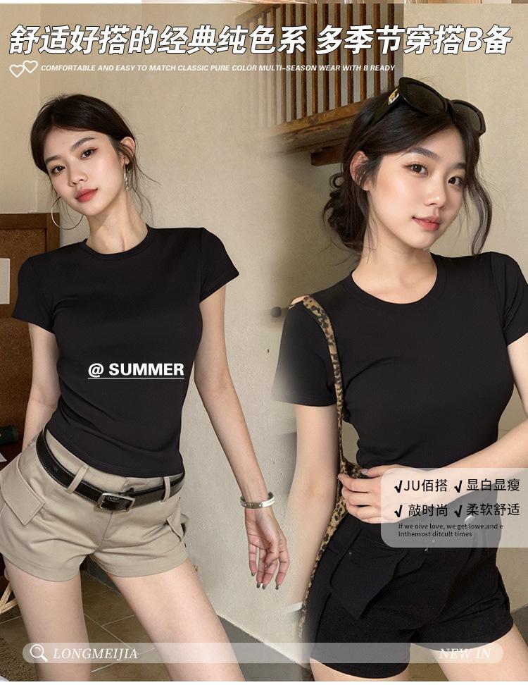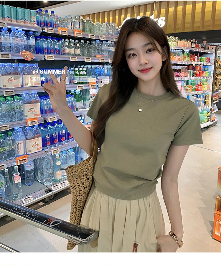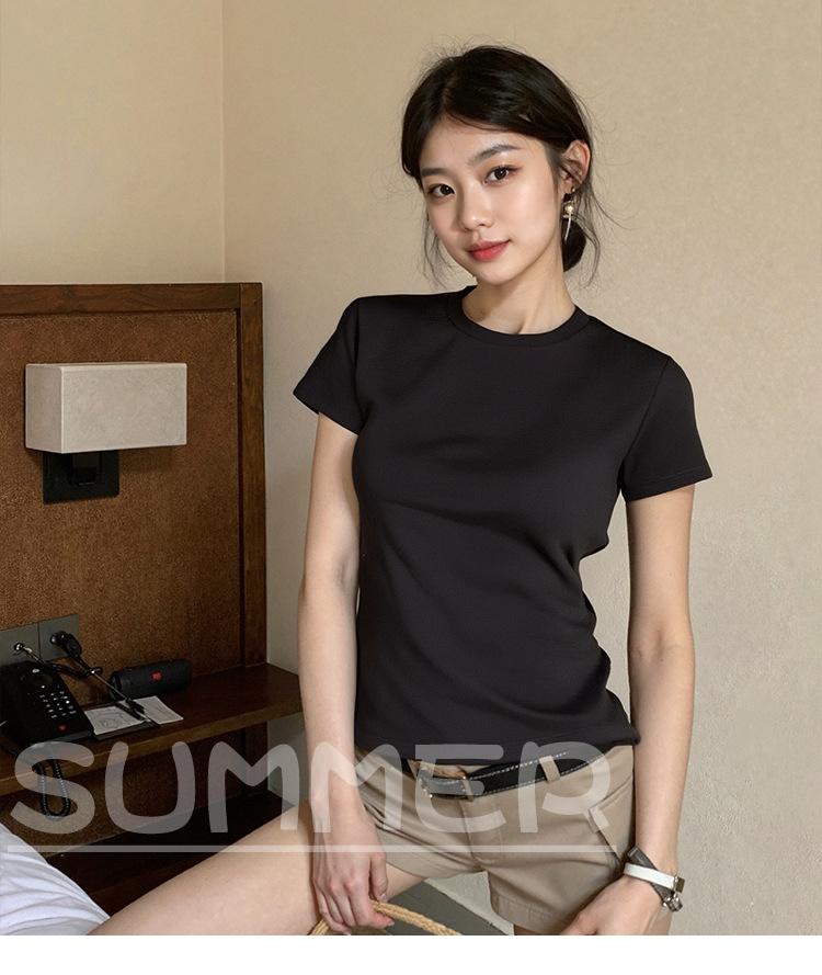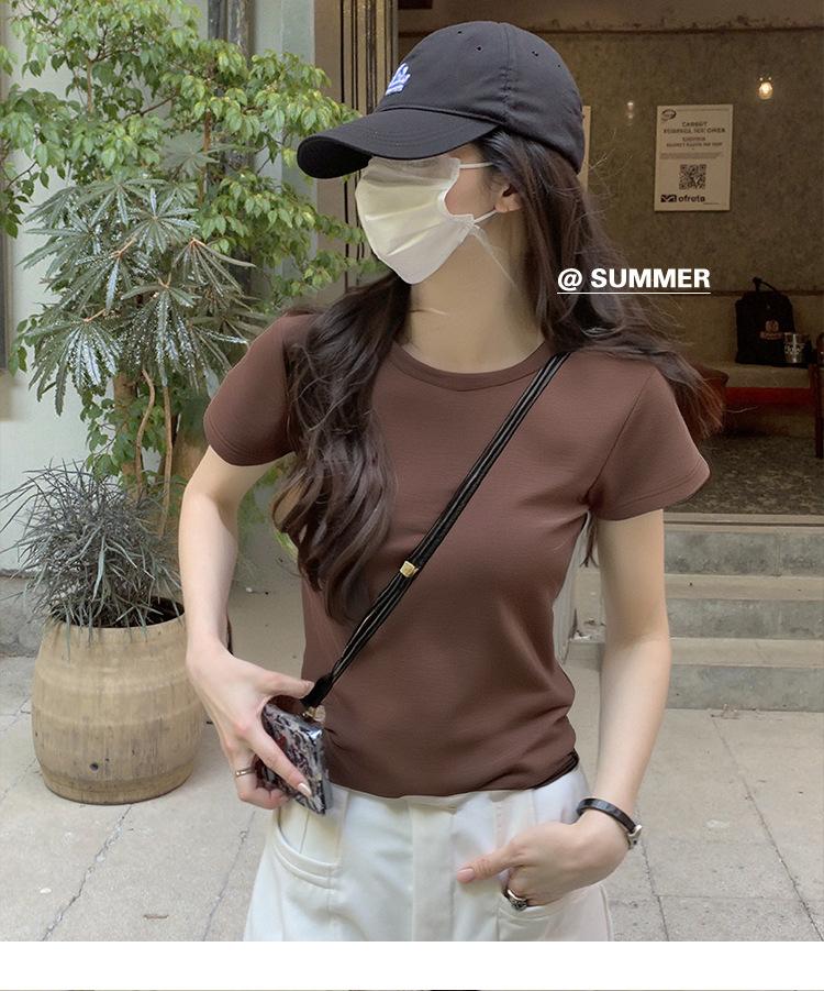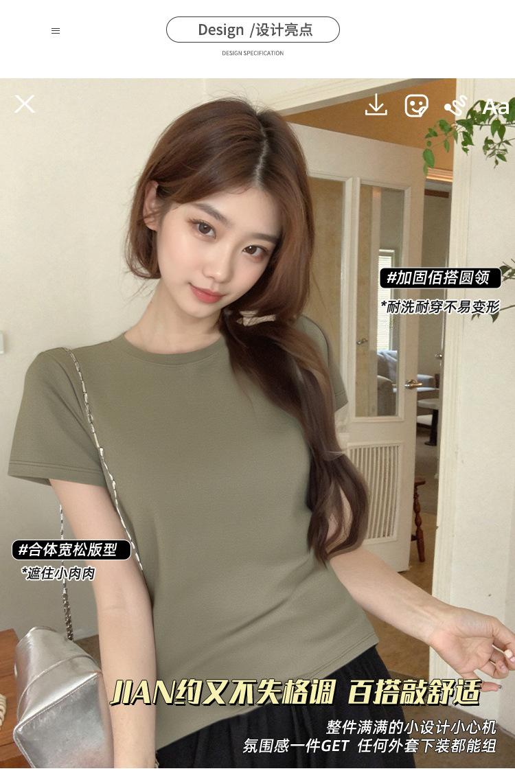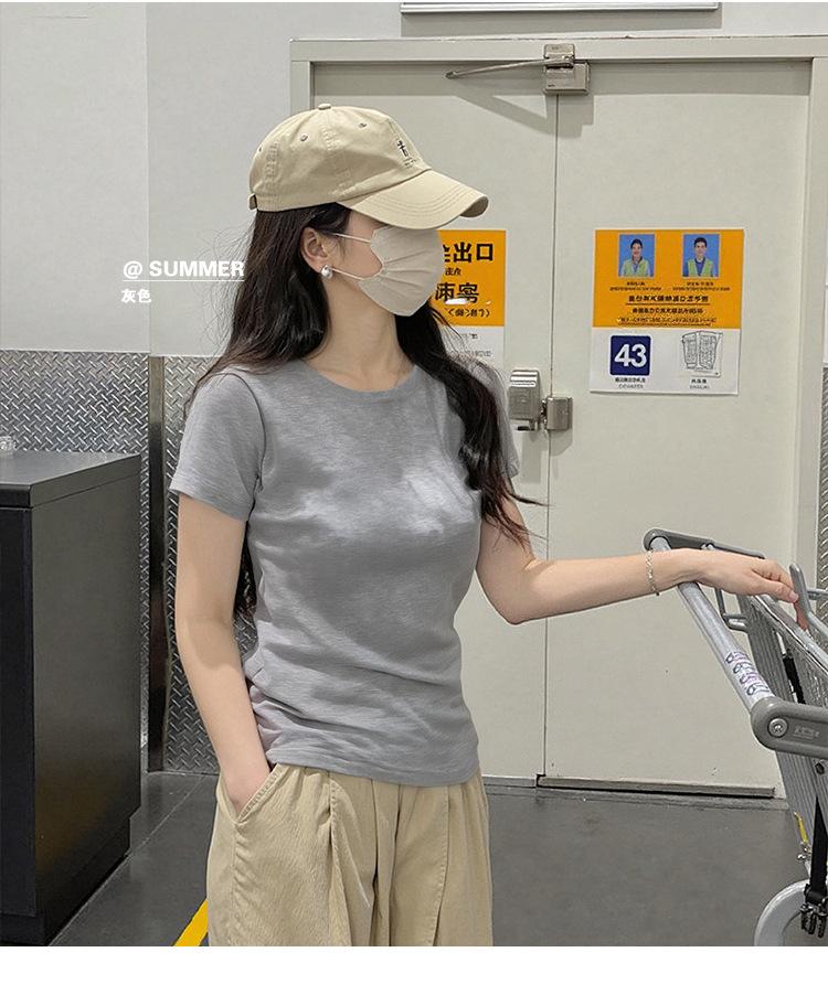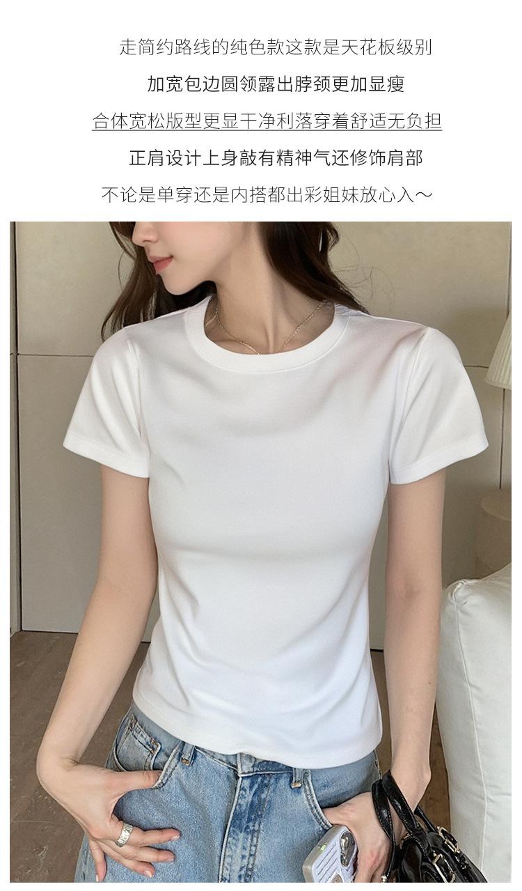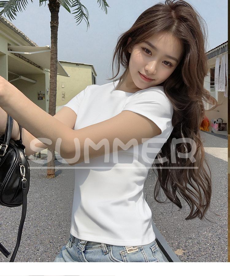 Camiseta de Algodón de Manga Corta para Mujer Verano 2025 Nueva Ajustada Adelgazante Hombro Corto Cuello Redondo Top para Hombres Pequeños