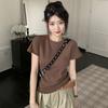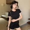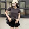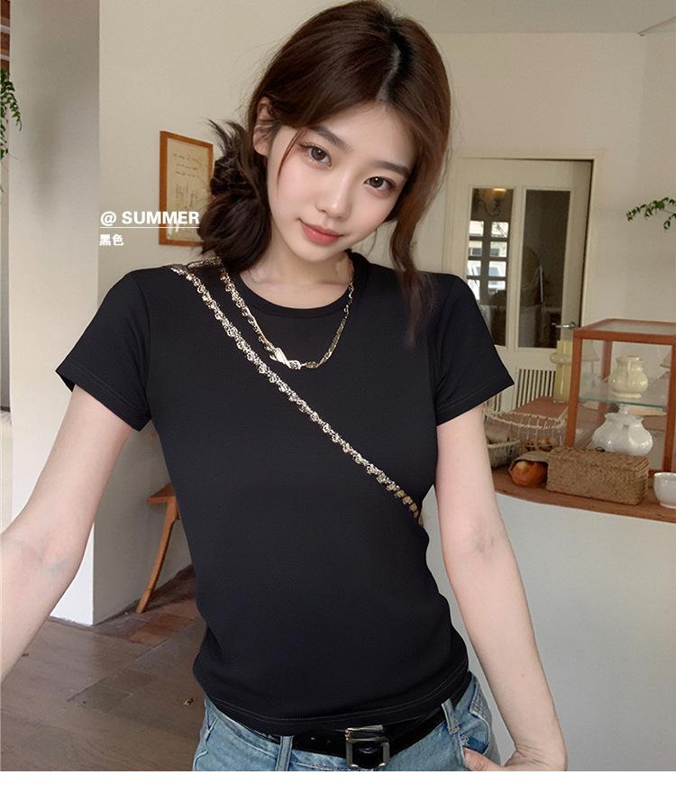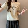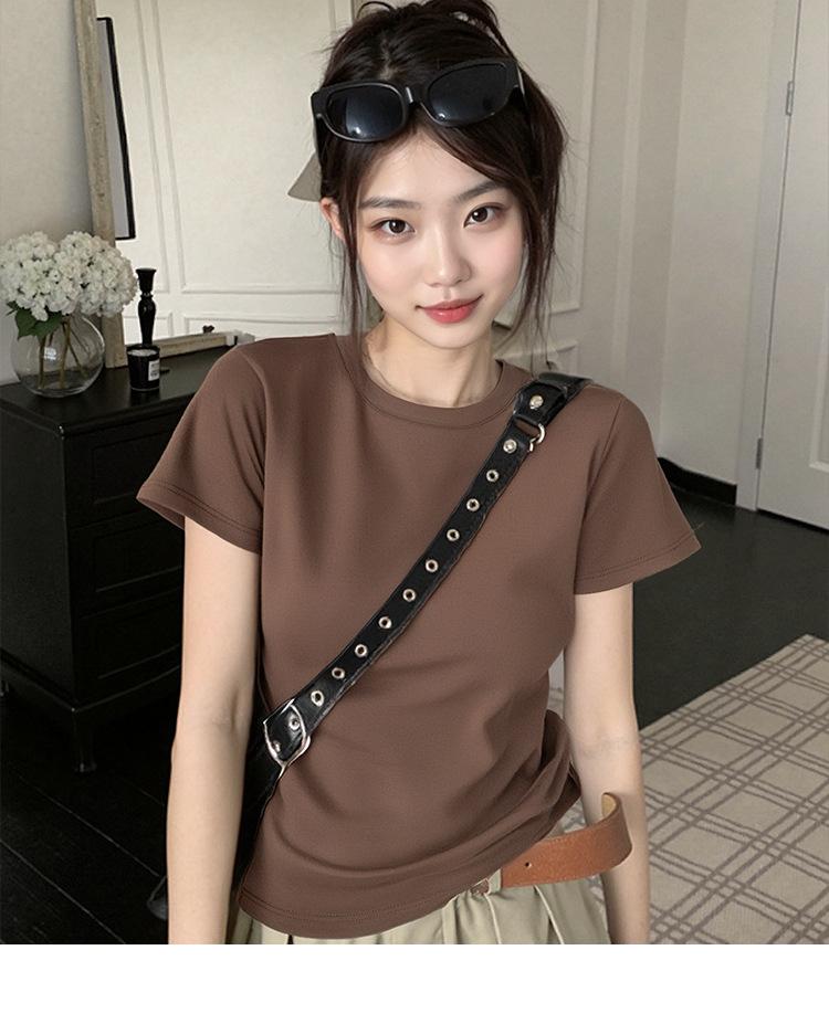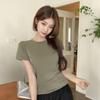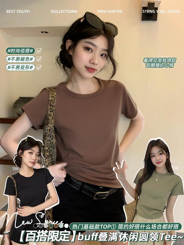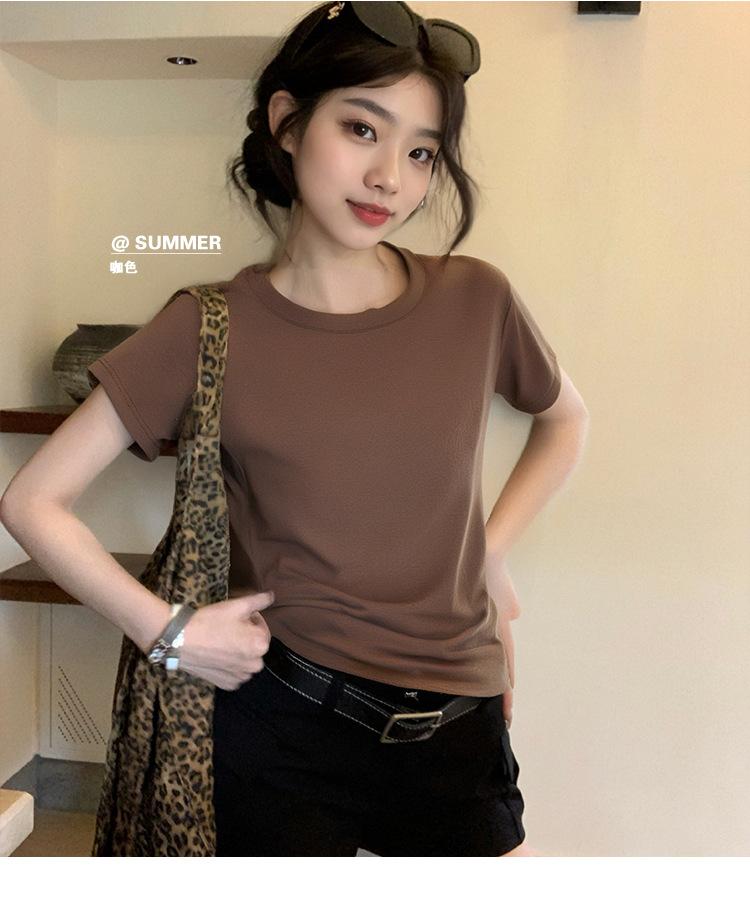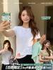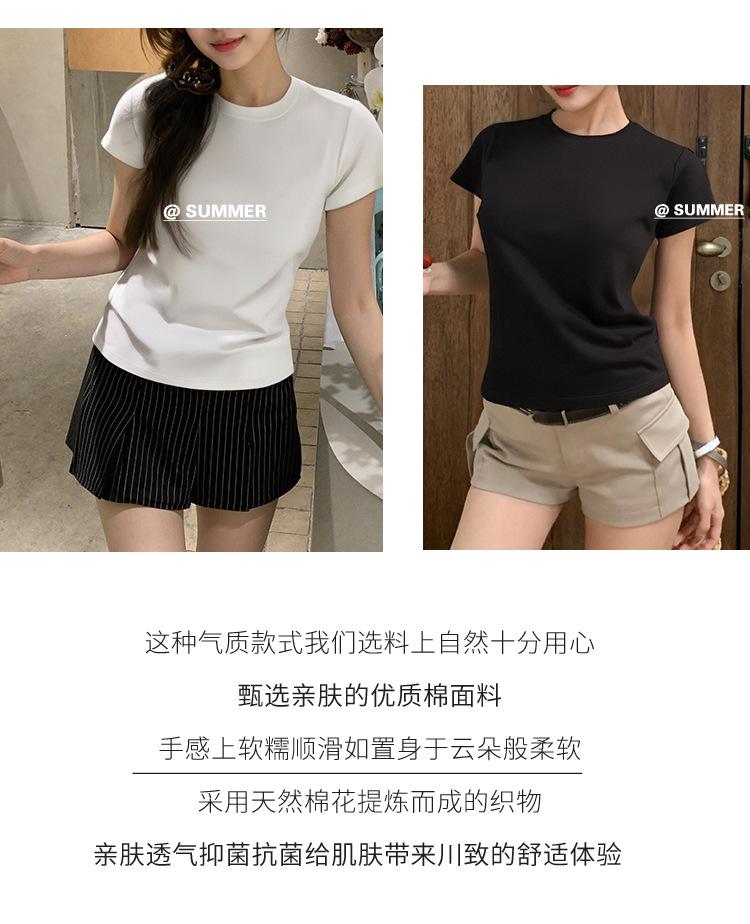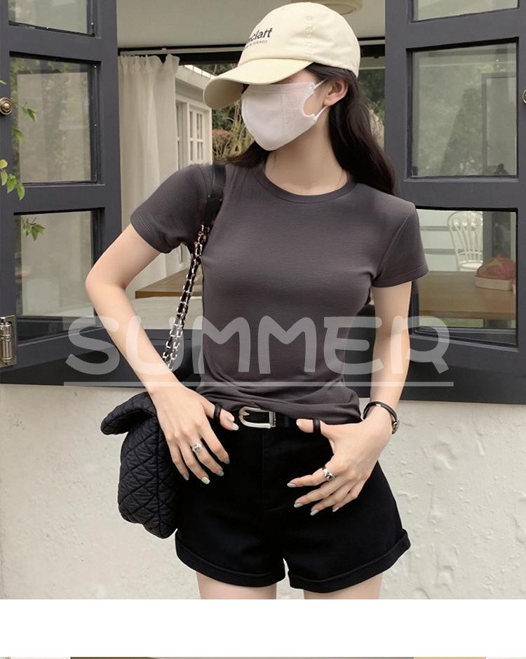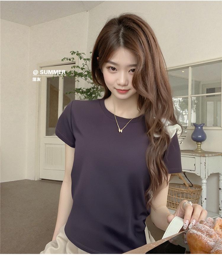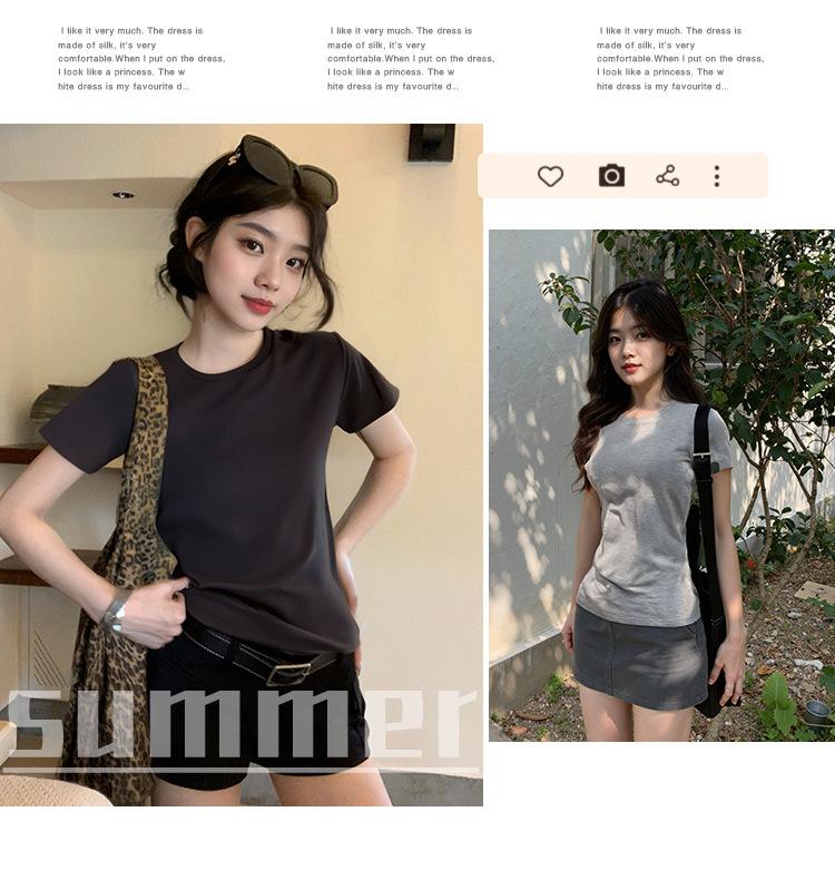 Camiseta de Algodón de Manga Corta para Mujer Verano 2025 Nueva Ajustada Adelgazante Hombro Corto Cuello Redondo Top para Hombres Pequeños