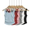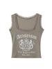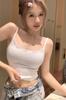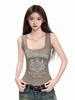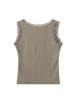 Estilo Americano Gris Encaje en Forma de I Camisola Pequeña Chaleco para Mujer Verano Ajustado Cintura Ceñida Diseño Chica Caliente Sin Mangas Top Corto