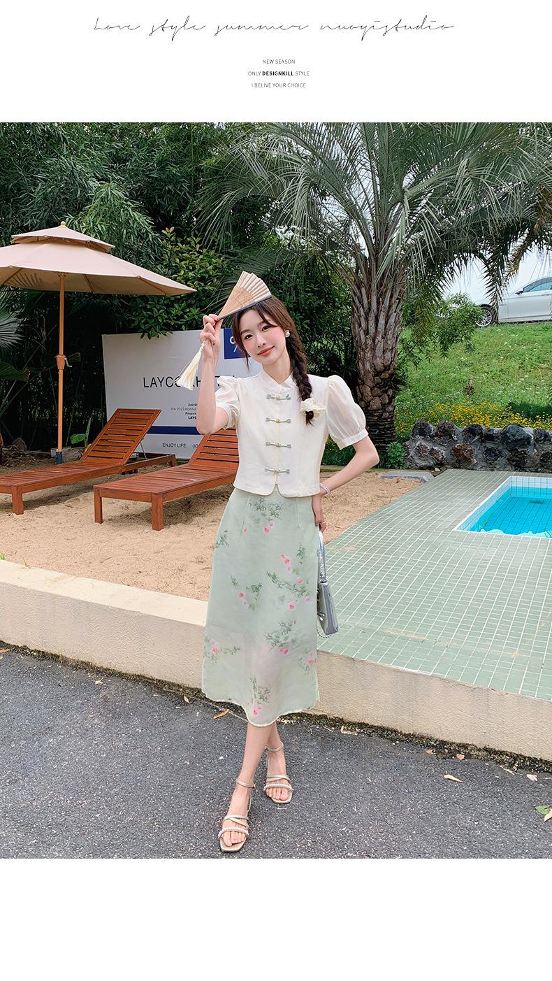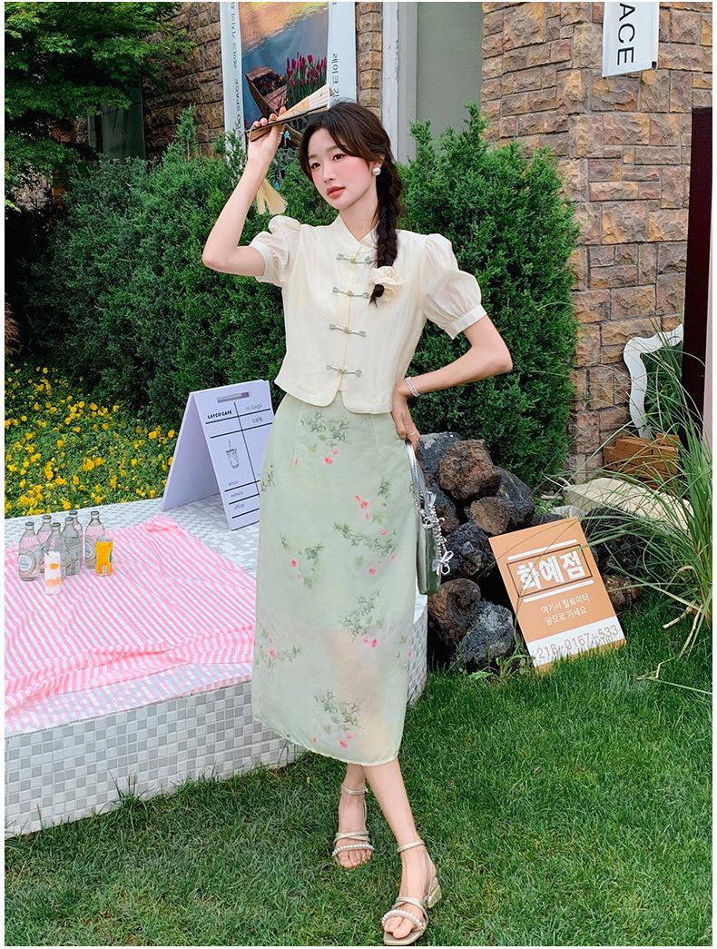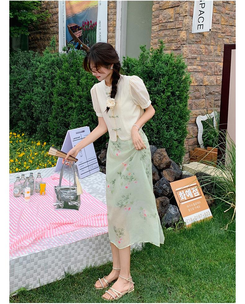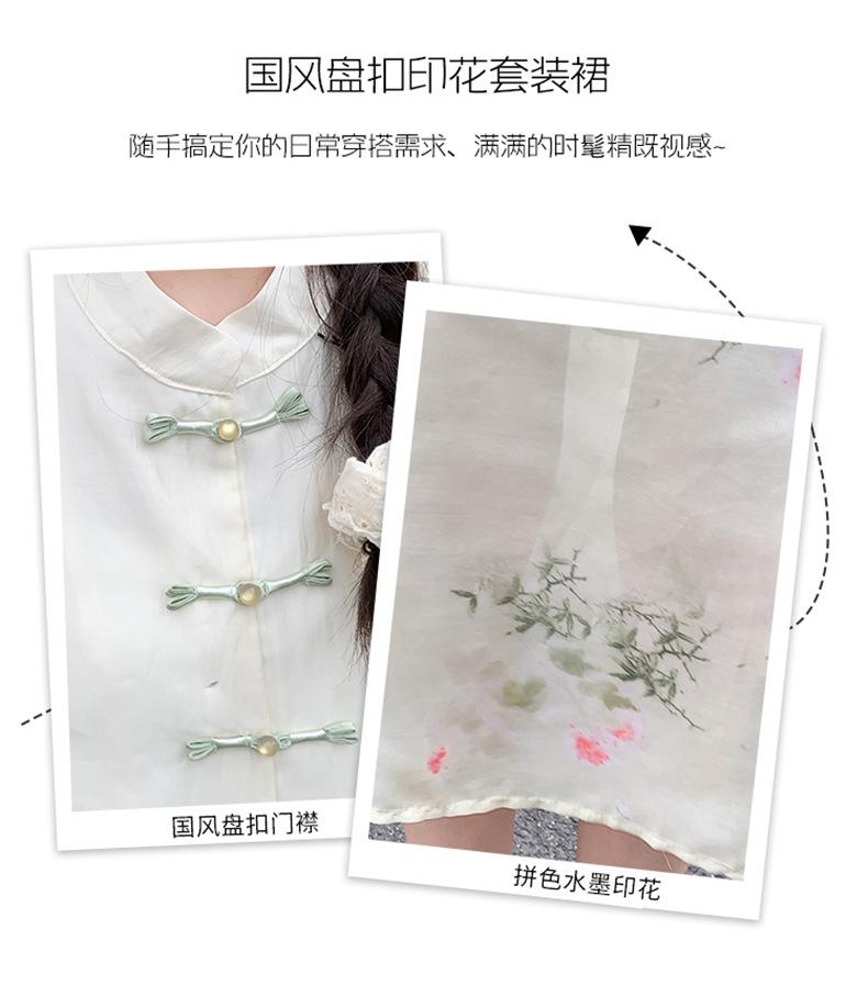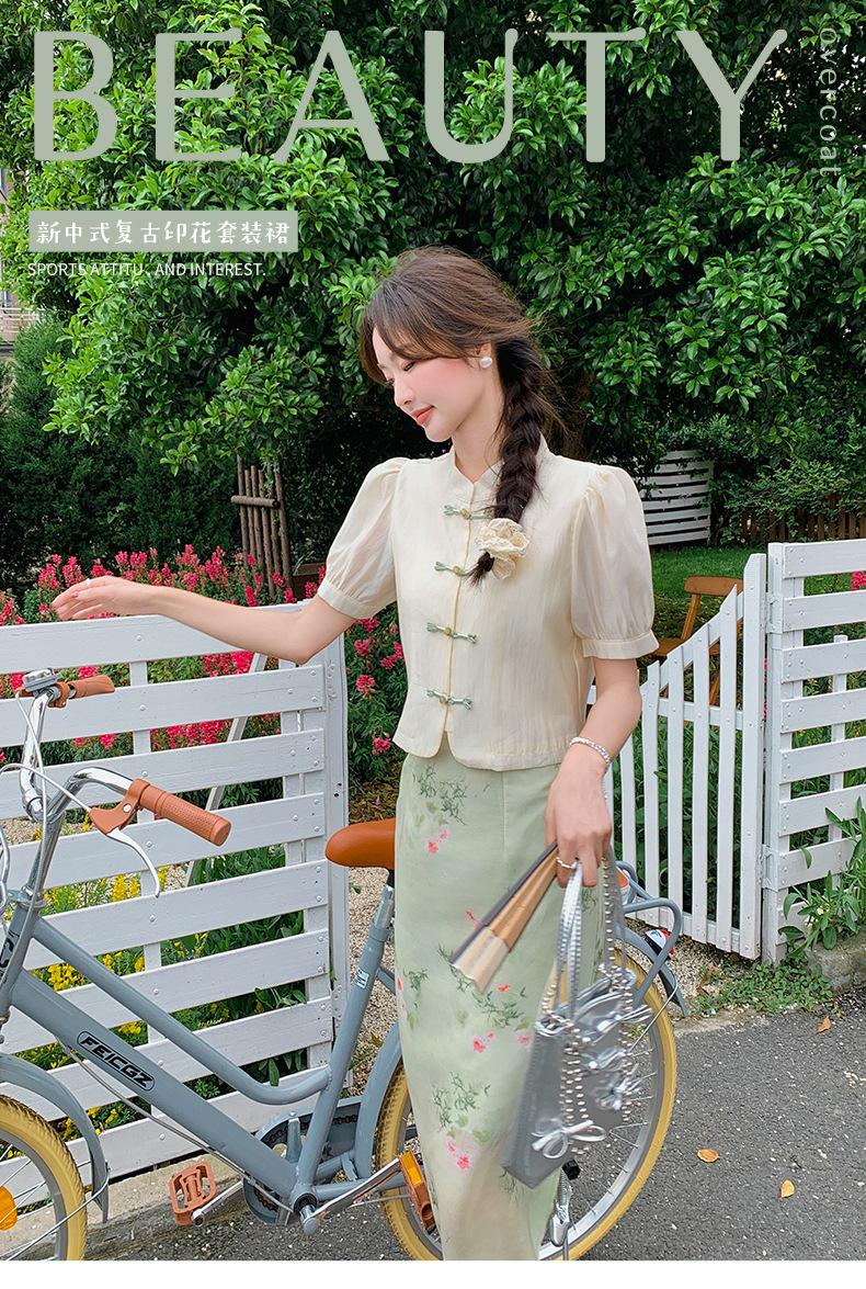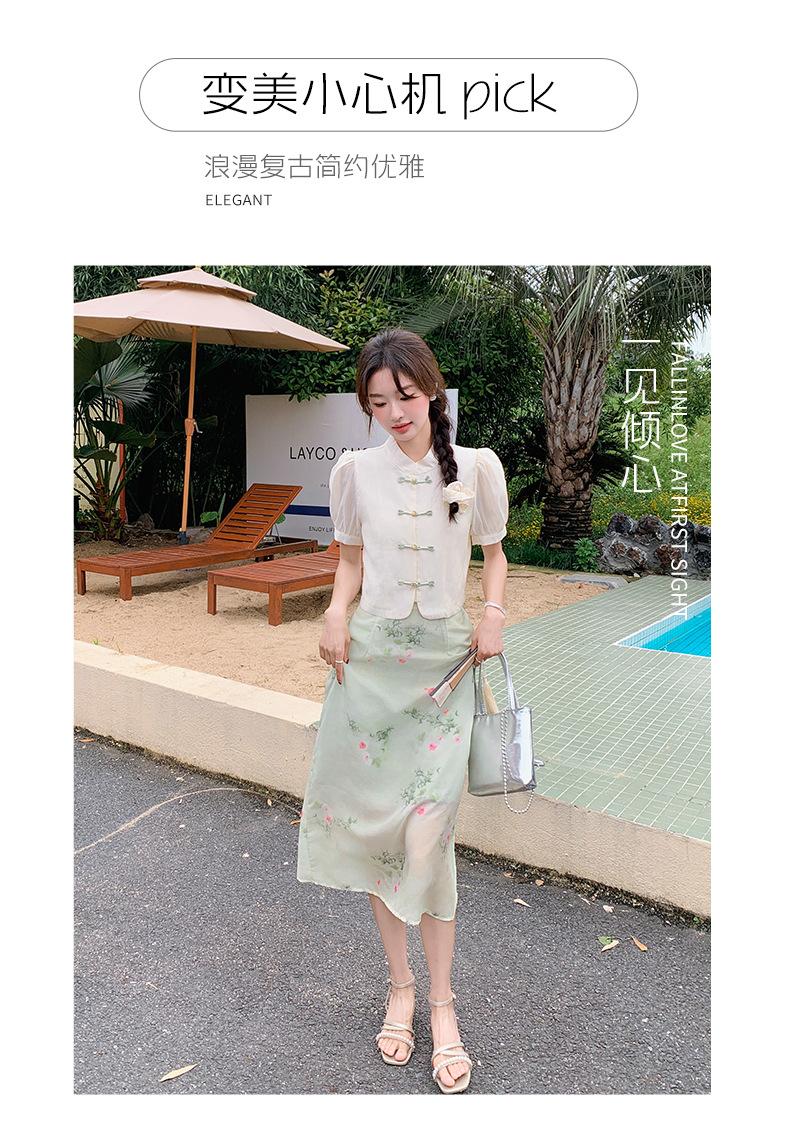 Verano 2025 Nuevo Estilo Moda China Casual Retro Top con Botones de Perla Traje Estampado de Chifón Falda Tendencia
