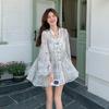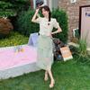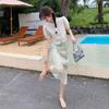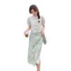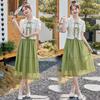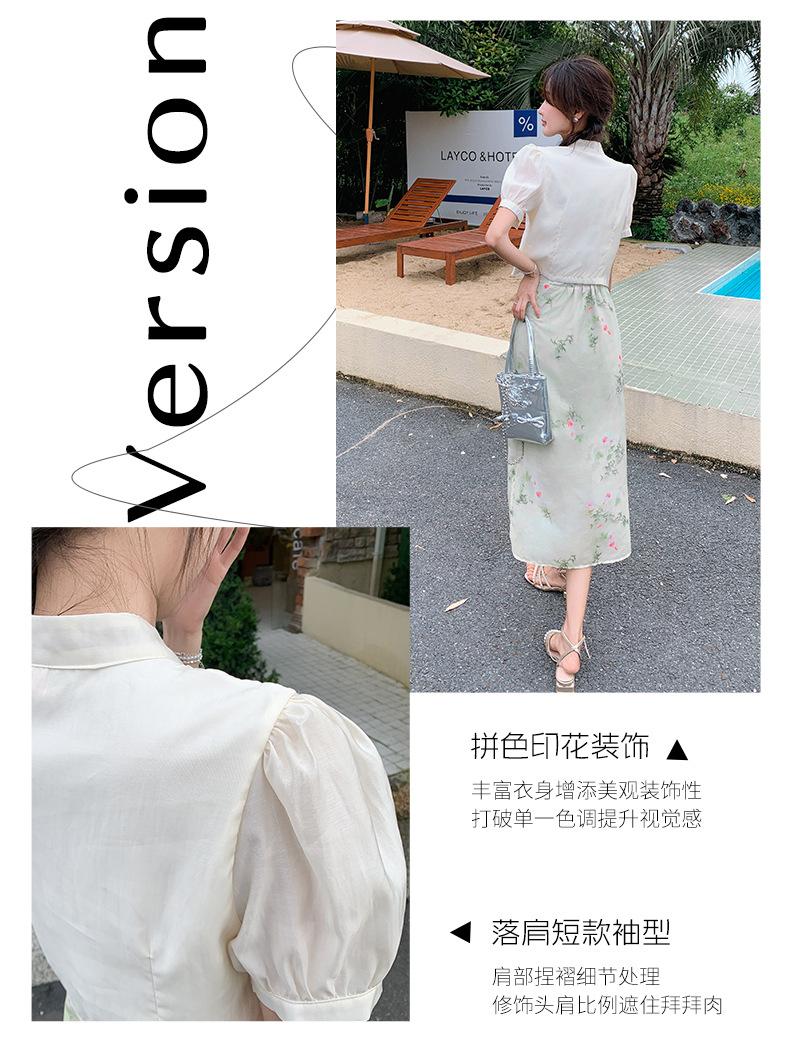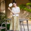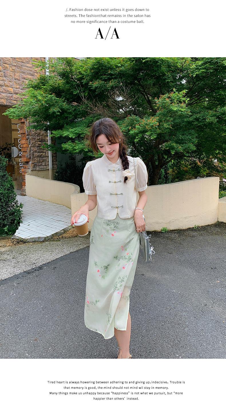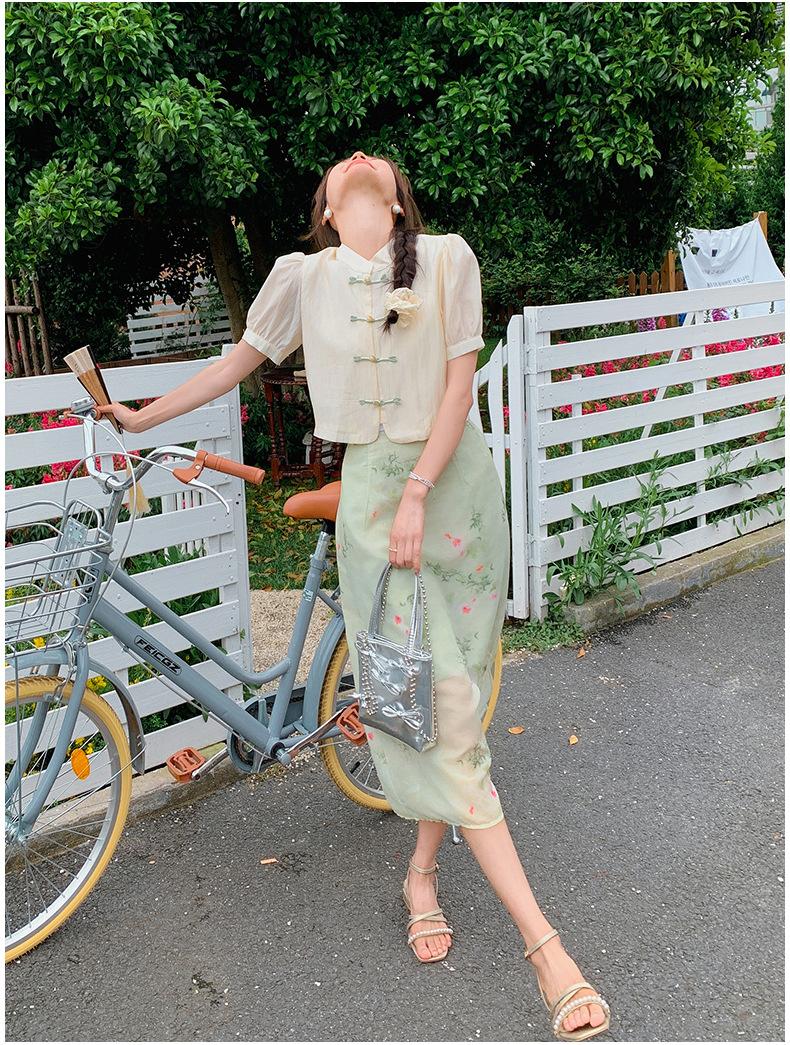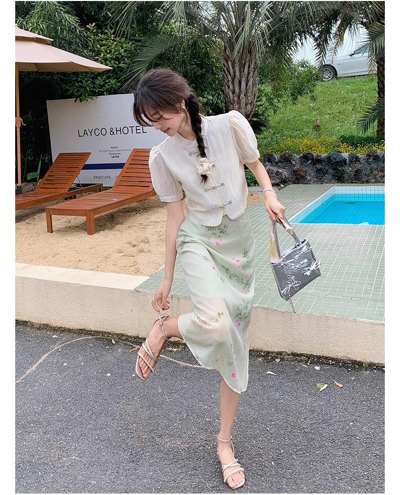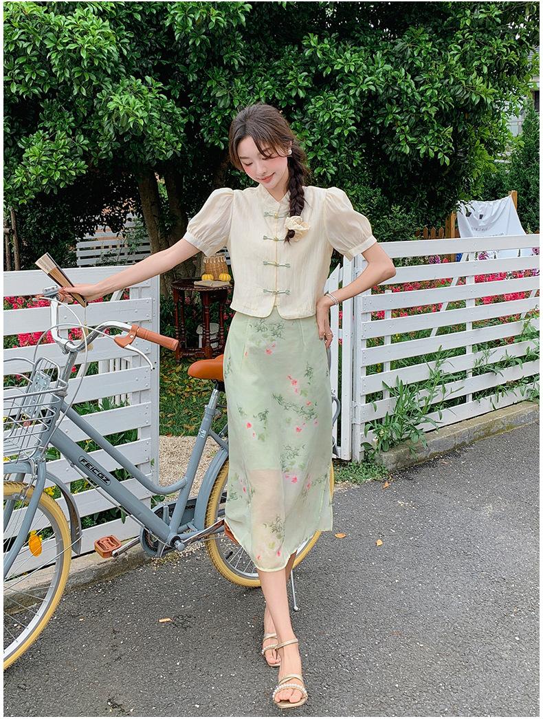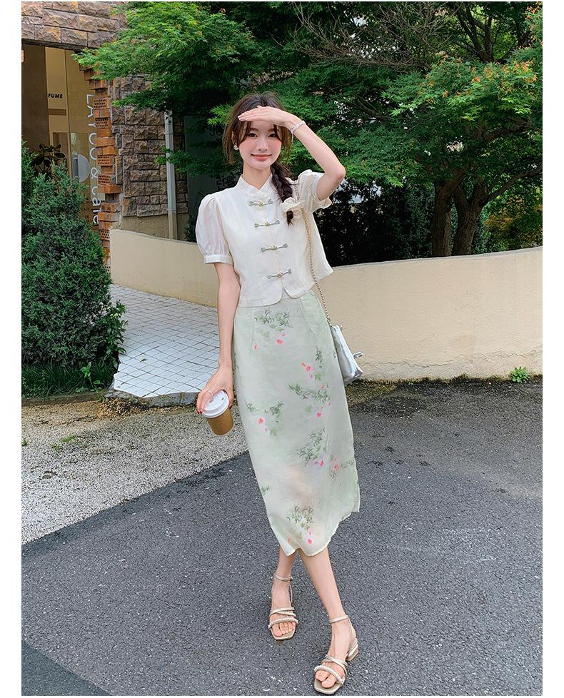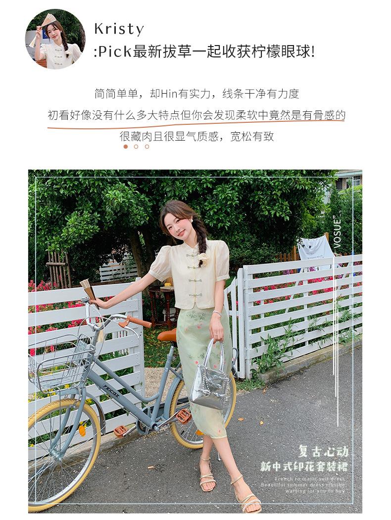Verano 2025 Nuevo Estilo Moda China Casual Retro Top con Botones de Perla Traje Estampado de Chifón Falda Tendencia