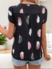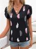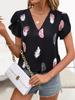 Transfronterizo Europeo y Americano para Mujer 2025 Nuevo Amazon Cuello en V Estampado de Plumas Manga Corta Camiseta Holgada Top de Mujer