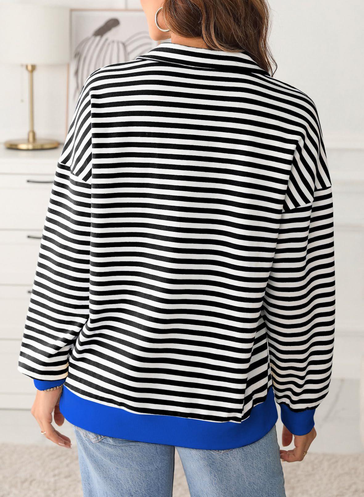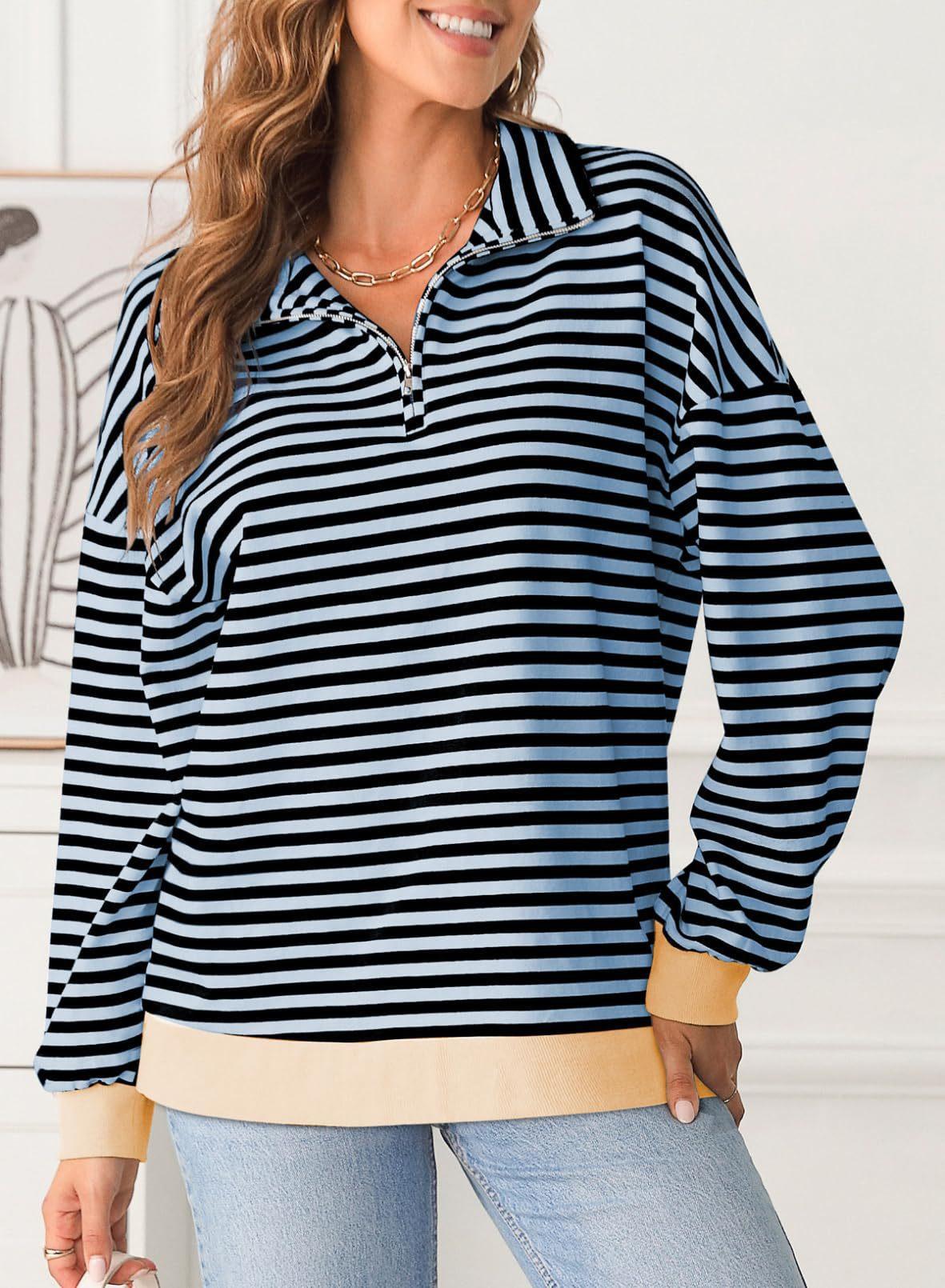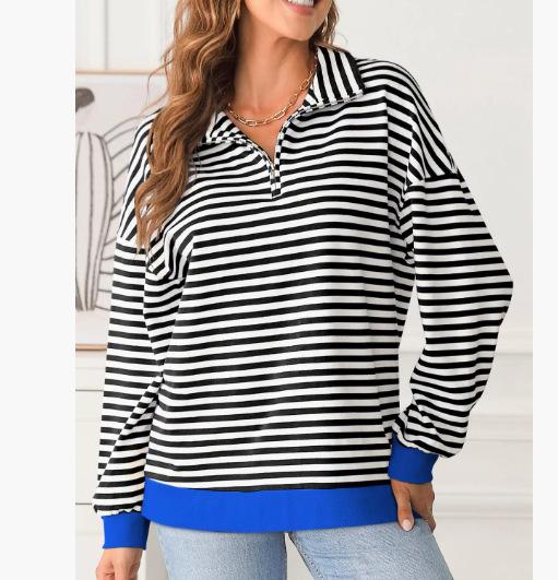 Ropa de Mujer Transfronteriza Europea y Americana 2025 Otoño e Invierno Amazon Estación Independiente Popular Sudadera Casual Suelta con Cremallera a Rayas para Mujer