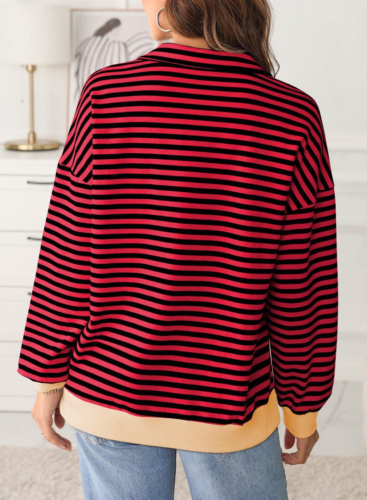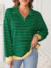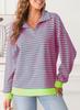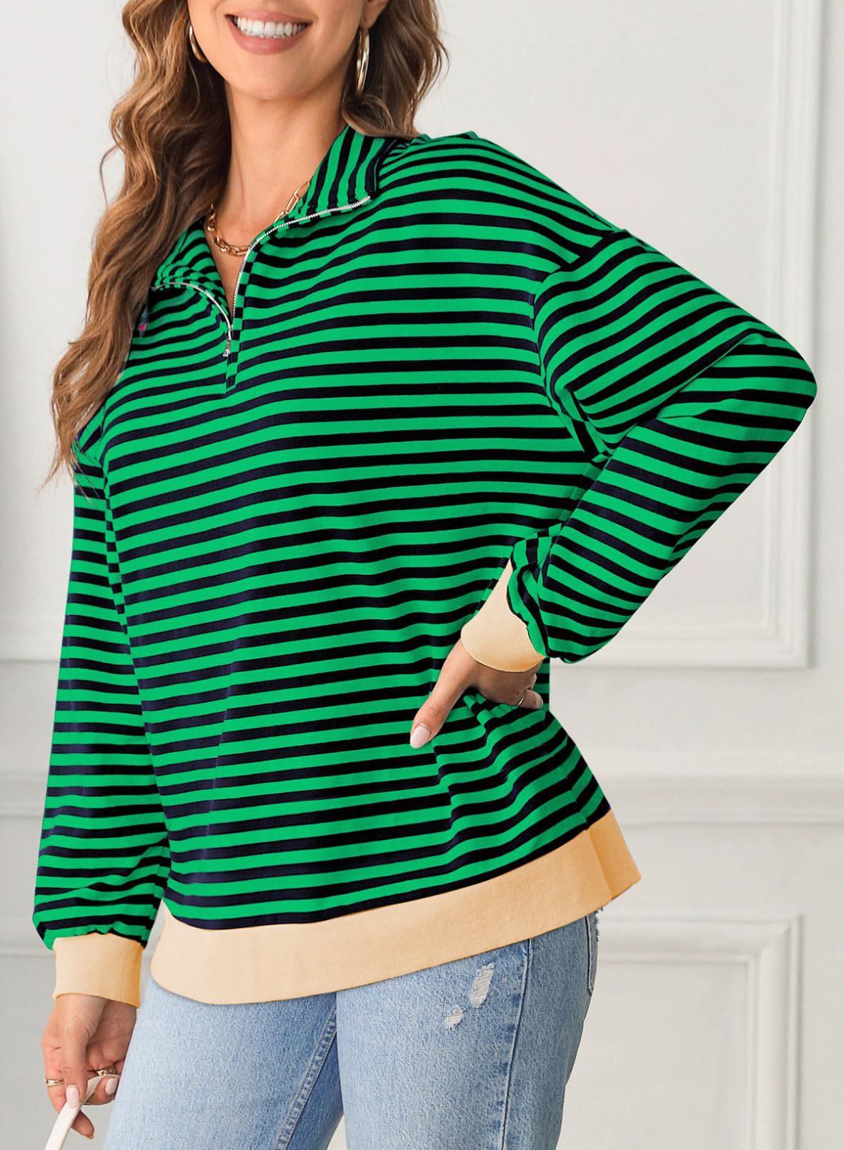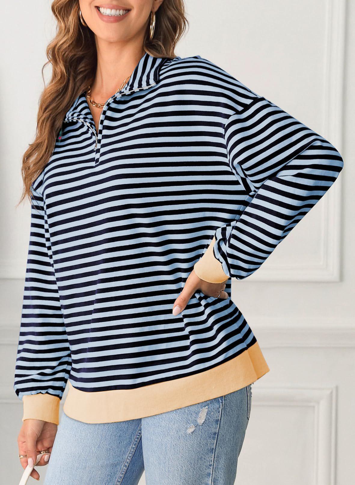 Ropa de Mujer Transfronteriza Europea y Americana 2025 Otoño e Invierno Amazon Estación Independiente Popular Sudadera Casual Suelta con Cremallera a Rayas para Mujer