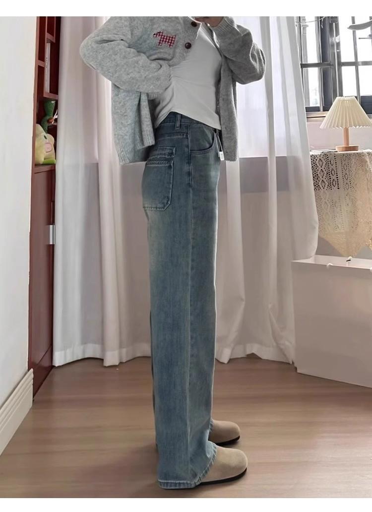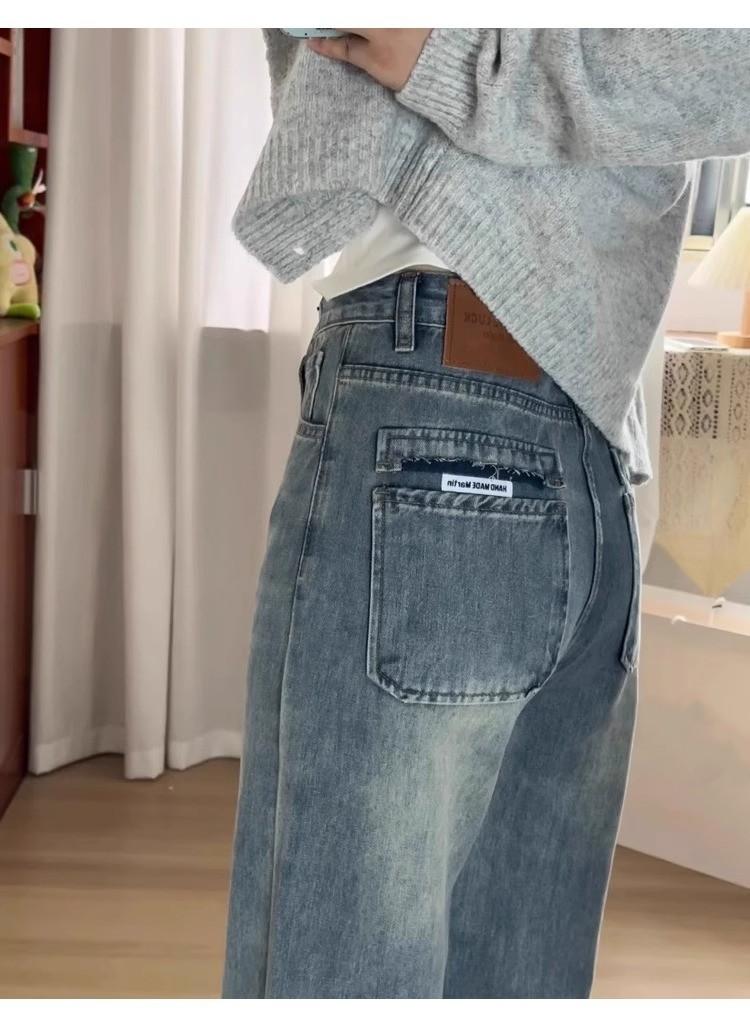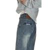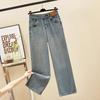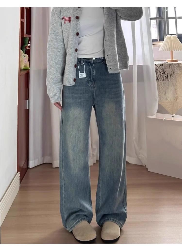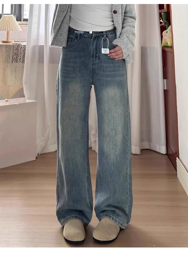 Jeans Rectos Azules Vintage para Mujer, Modernos, Combinan con Todo, Talla Grande, Cintura Alta, Adelgazantes, Diseño Casual Holgado, Pantalones de Pierna Ancha