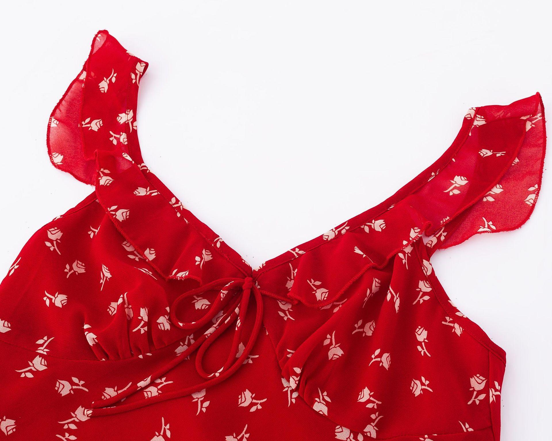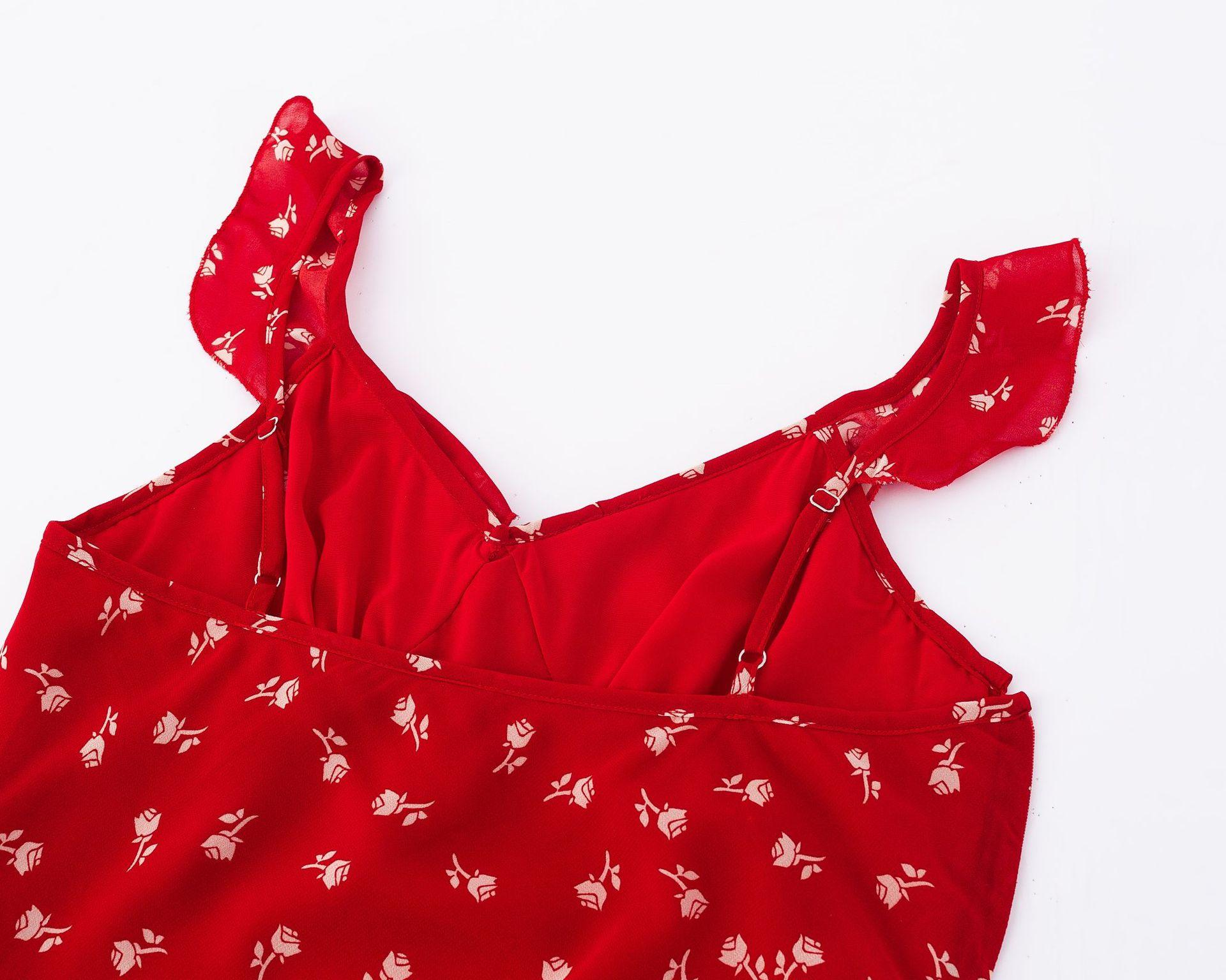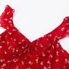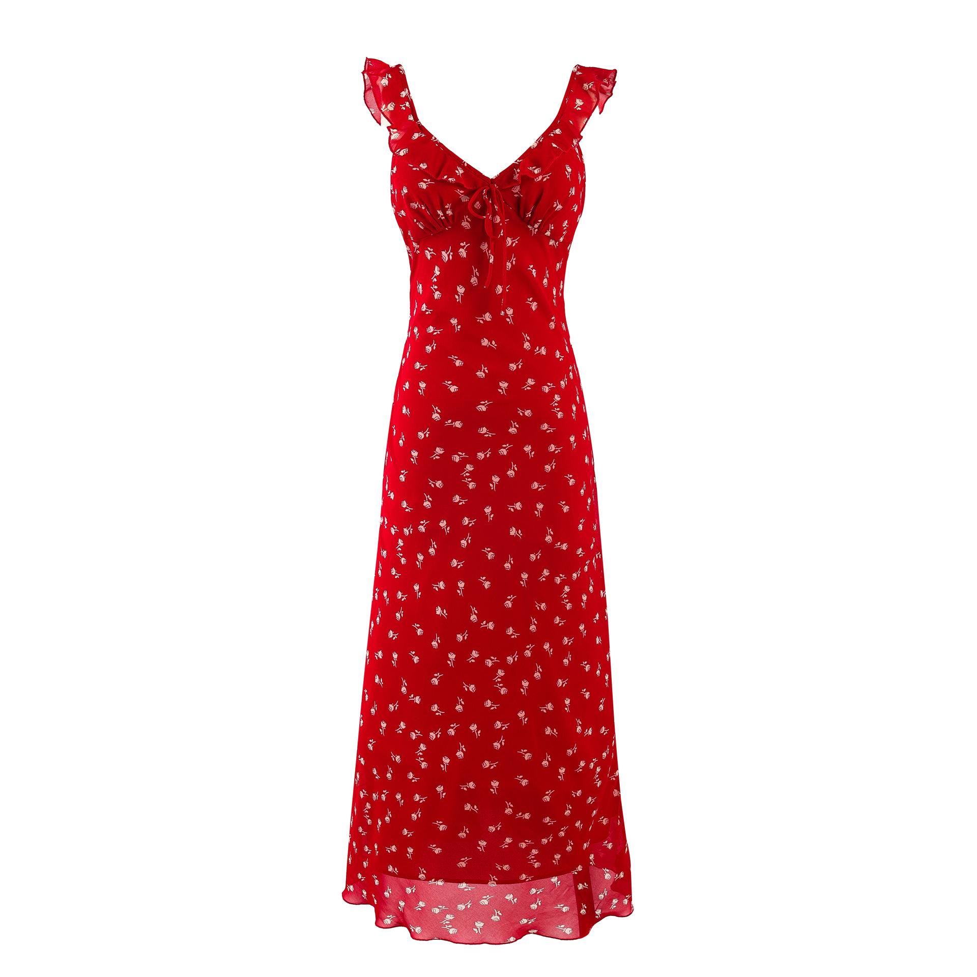 L25206-25 Nuevo Estilo de Verano Estilo Resort Europeo y Americano Estilo Casual Vestido Rojo Floral Sexy con Cuello en V