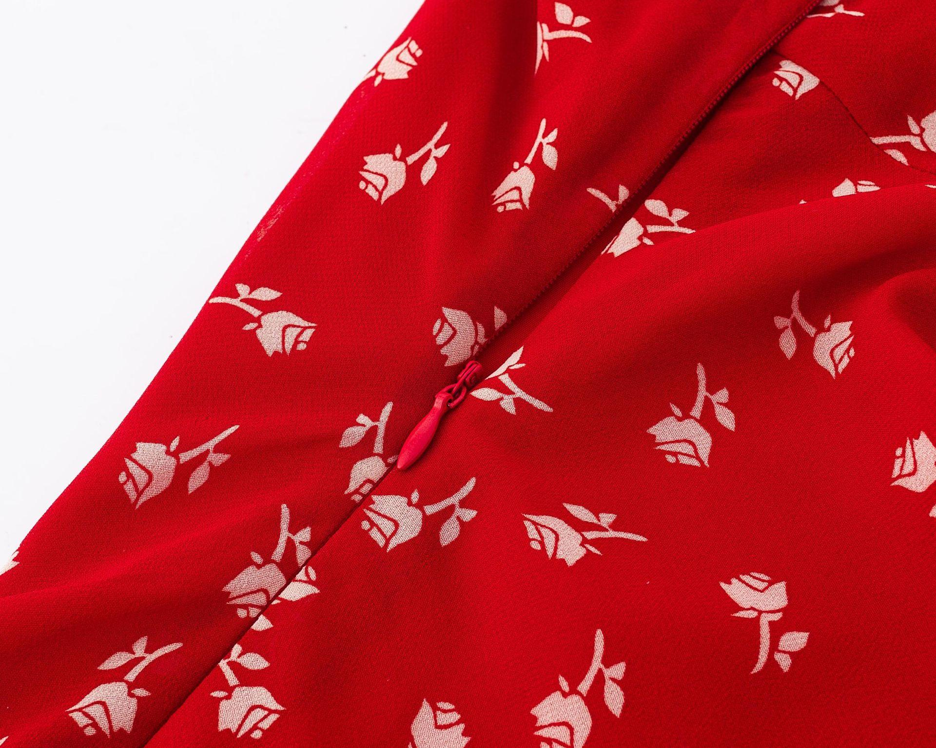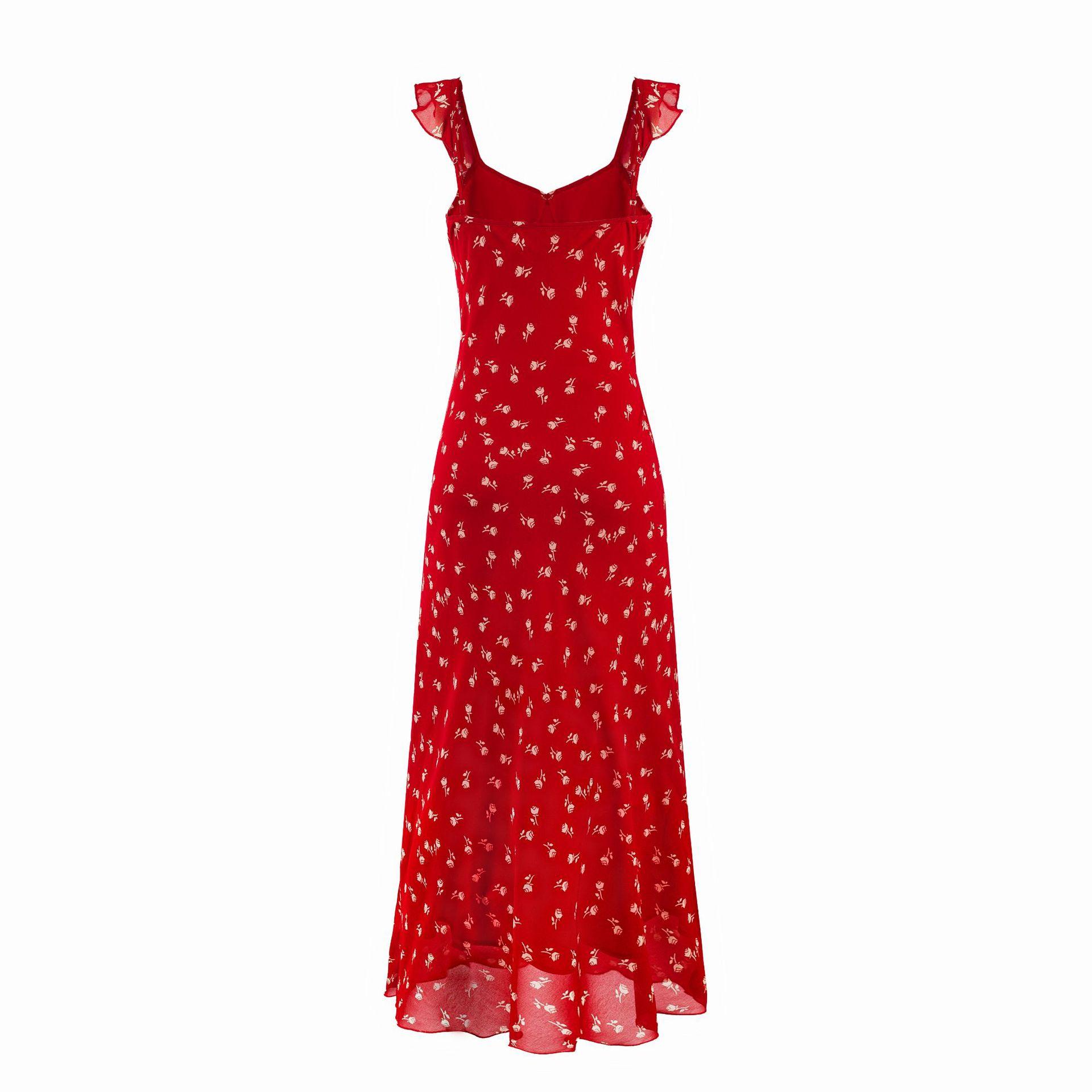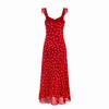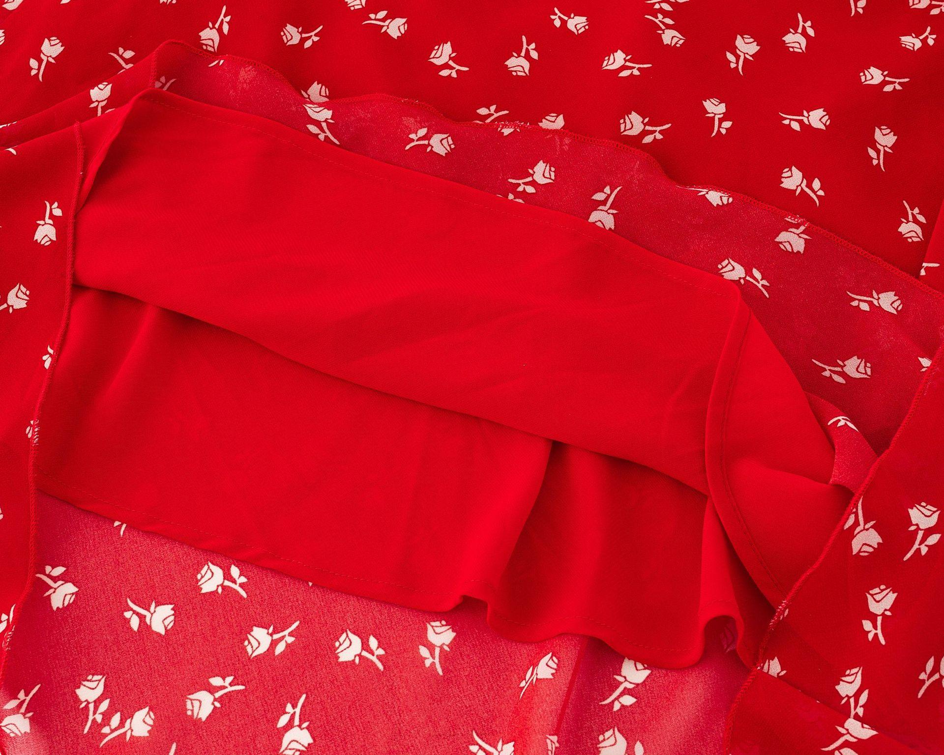 L25206-25 Nuevo Estilo de Verano Estilo Resort Europeo y Americano Estilo Casual Vestido Rojo Floral Sexy con Cuello en V