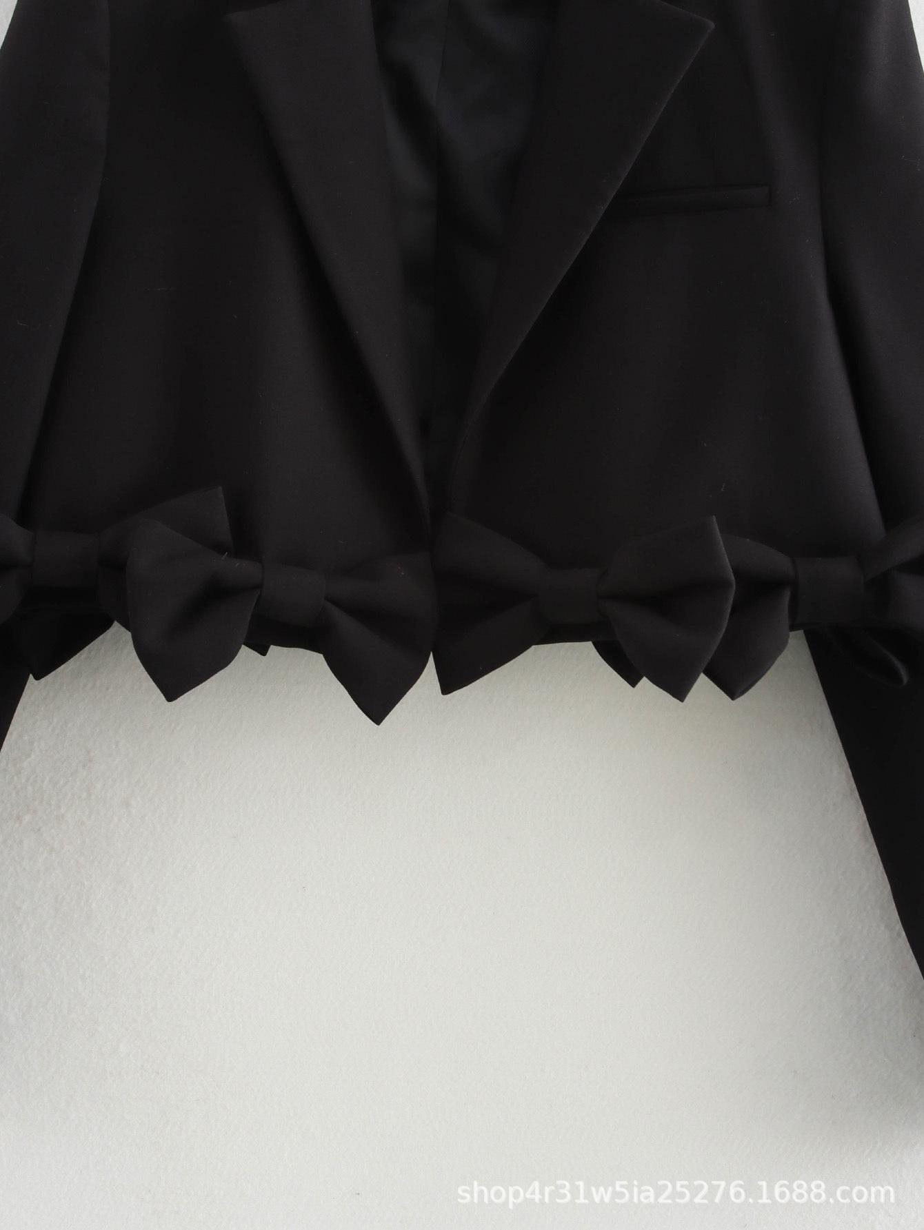 Ropa de Mujer Otoño 2024 Nueva Europea y Americana Chaqueta de Traje Corta Casual Versátil sin Botones Decorada con Lazo de Manga Larga
