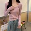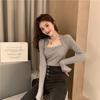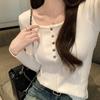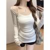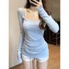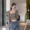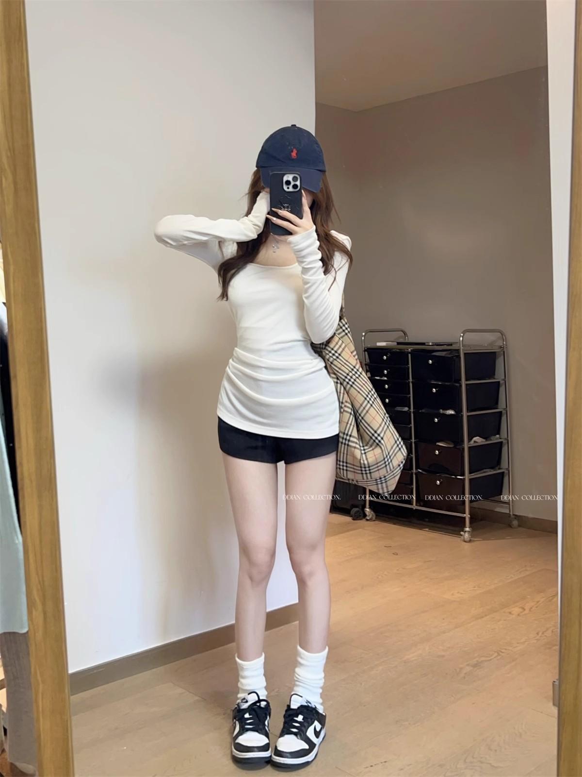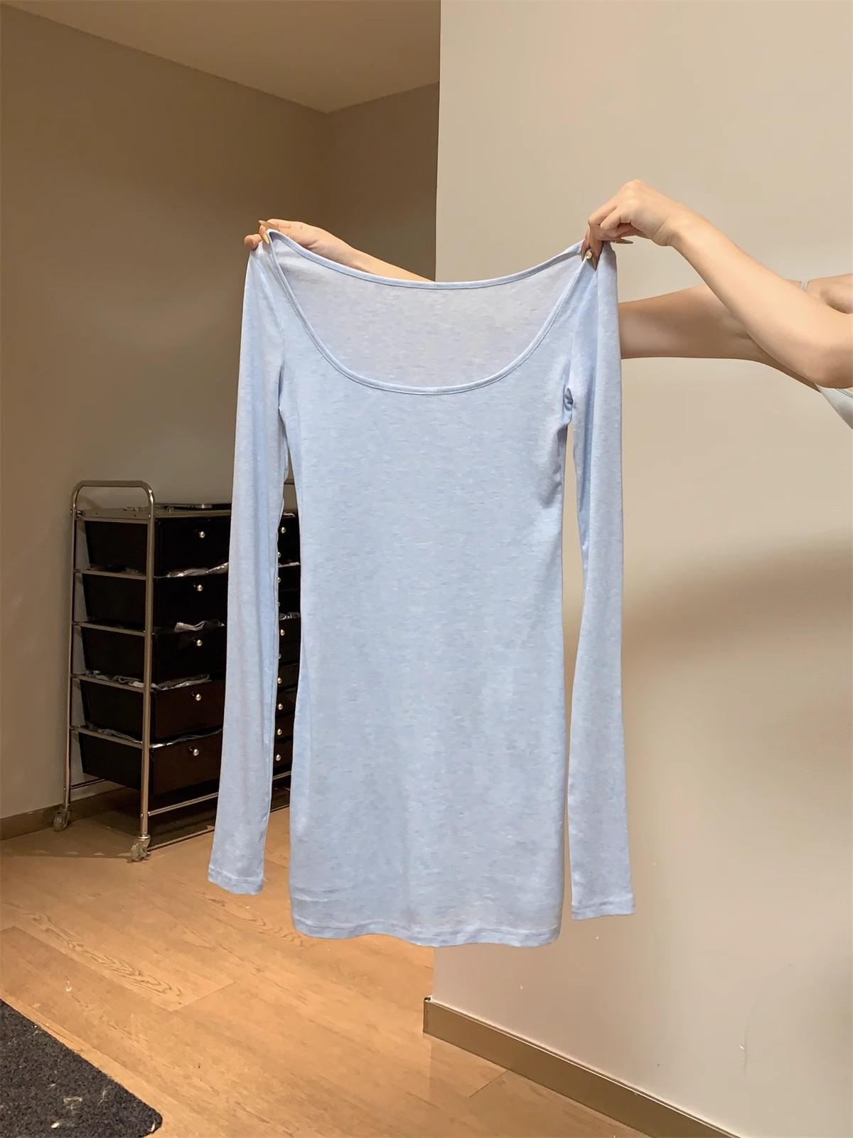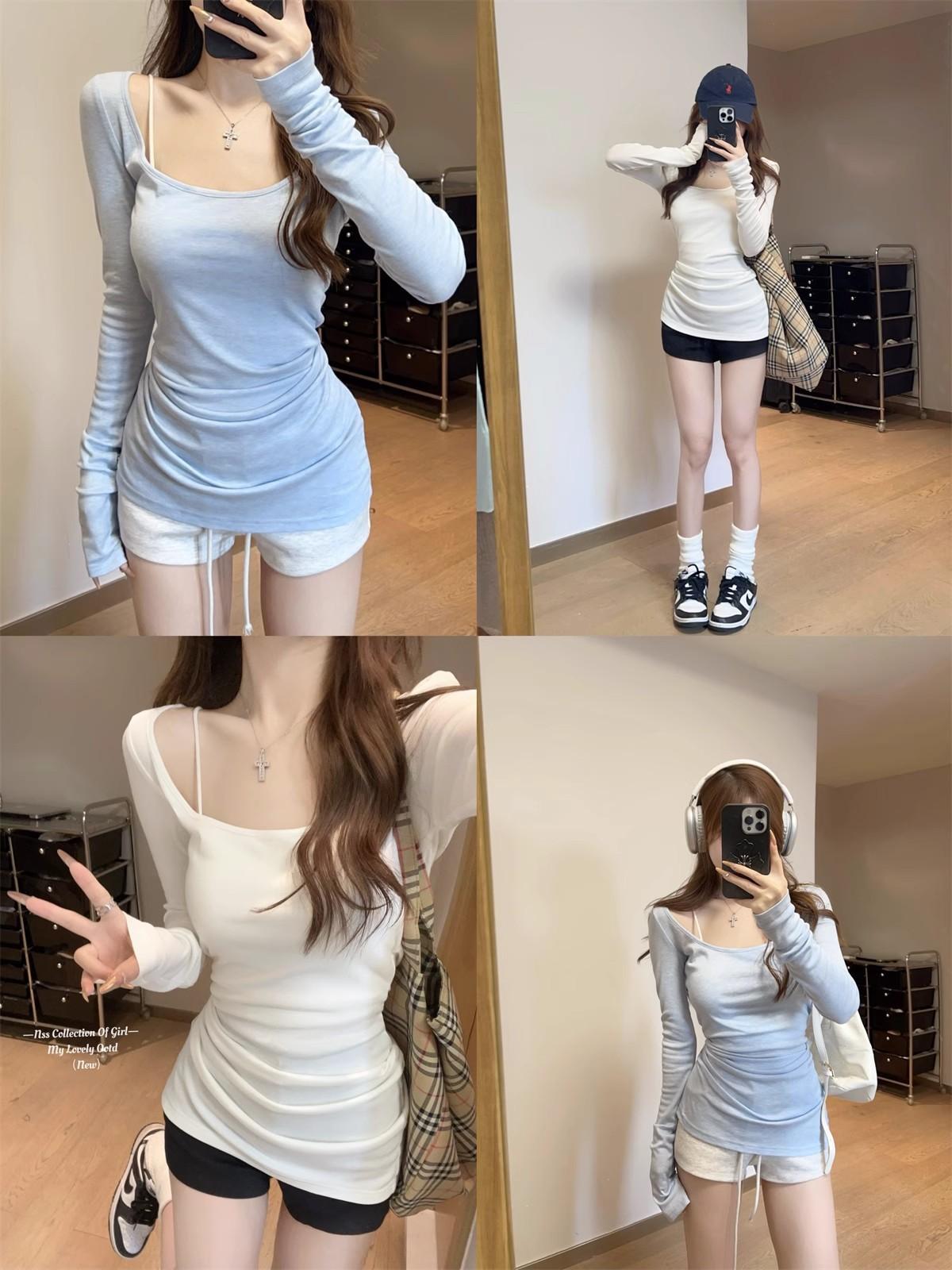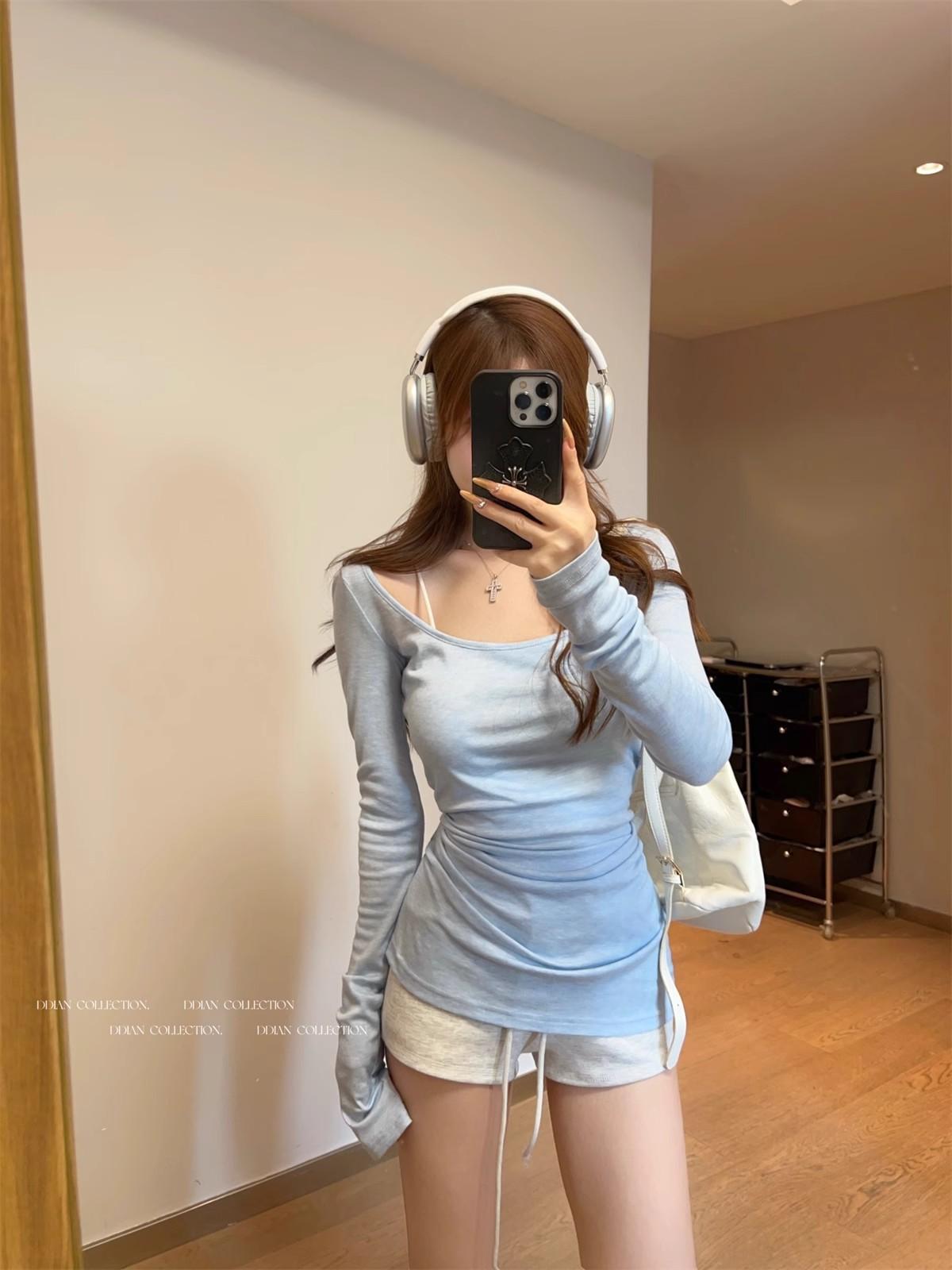 Playera Blanca Pura de Cuello Cuadrado y Manga Larga para Mujer, Primavera, Corte Ajustado, Adelgazante, con Hombros Descubiertos, Camiseta Básica Chic, Dulce, Picante, Top Interior