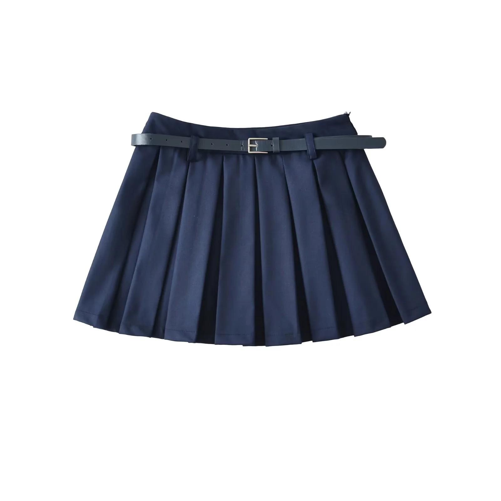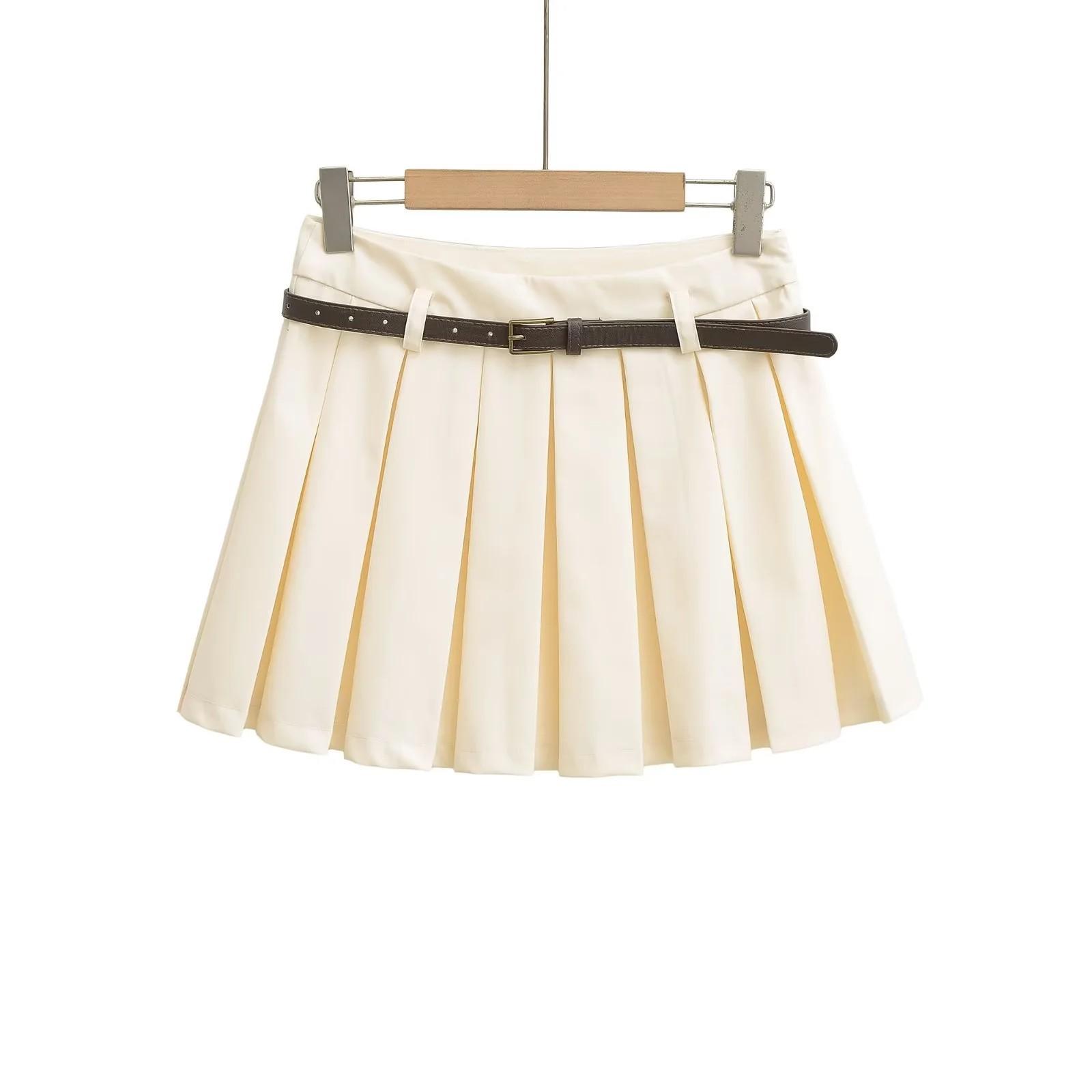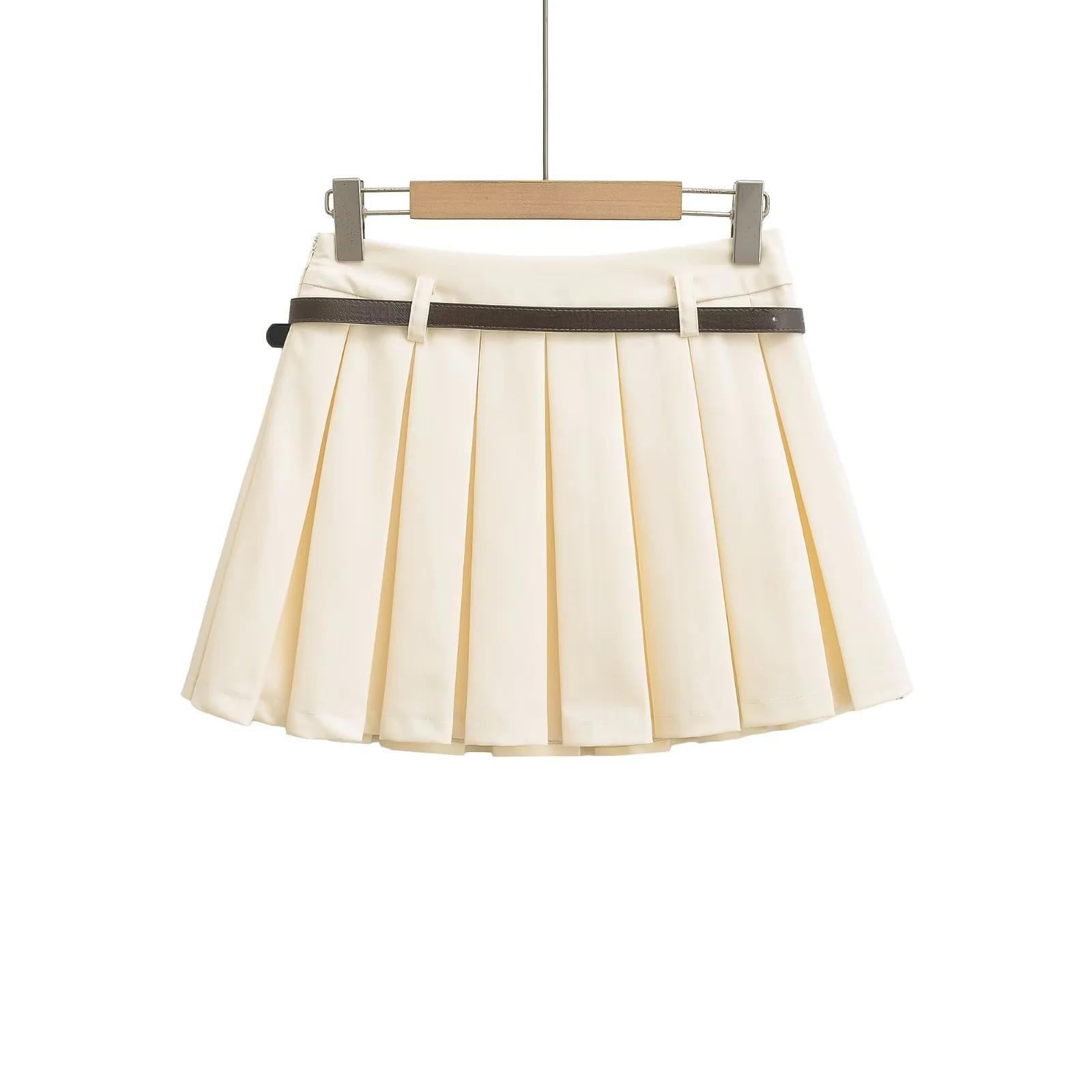 Falda Plisada Estilo Universitario Cintura Alta Niña con Cinturón Anti-Exposición Adelgazante Línea A Falda Corta Falda Petite