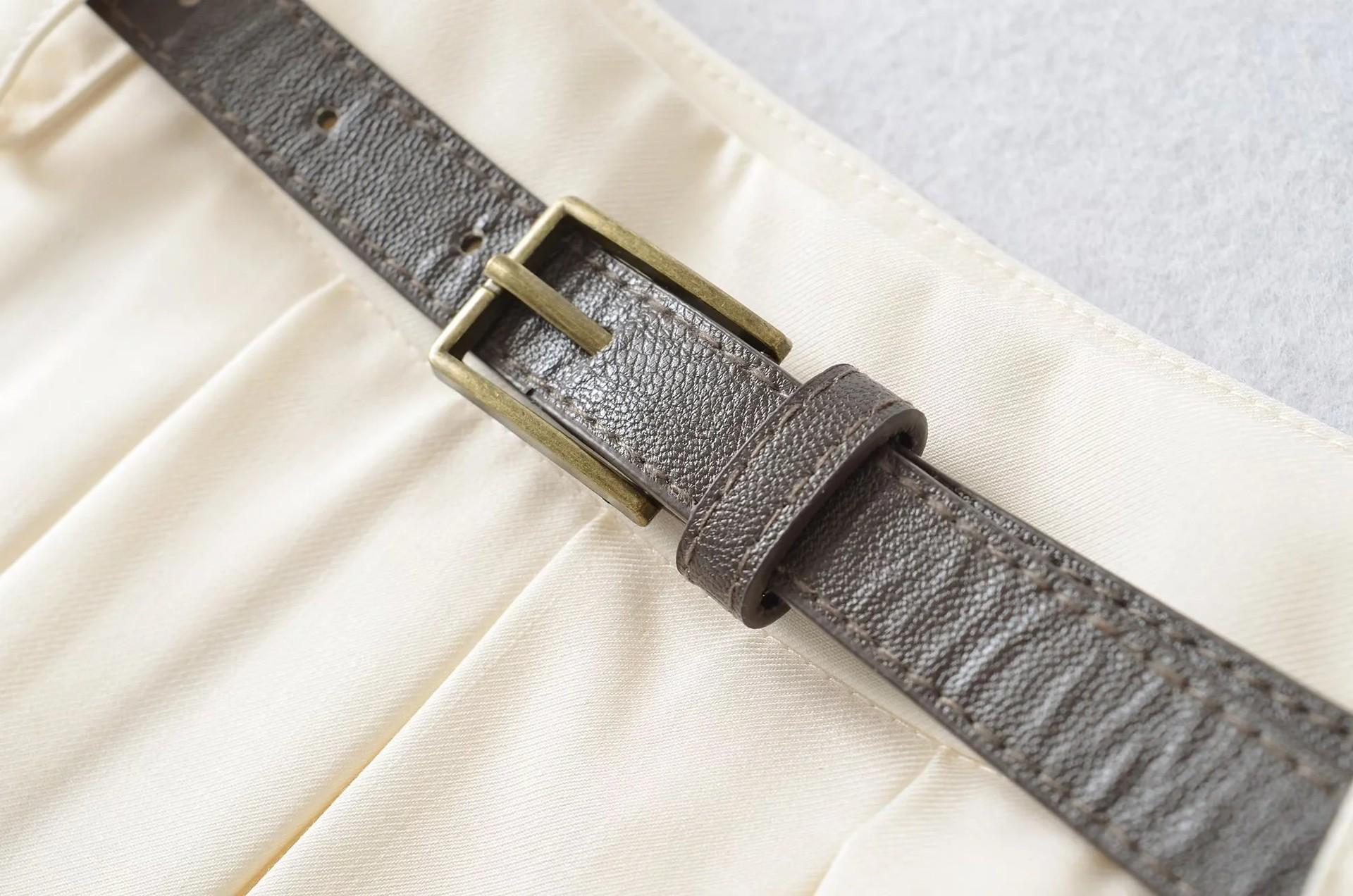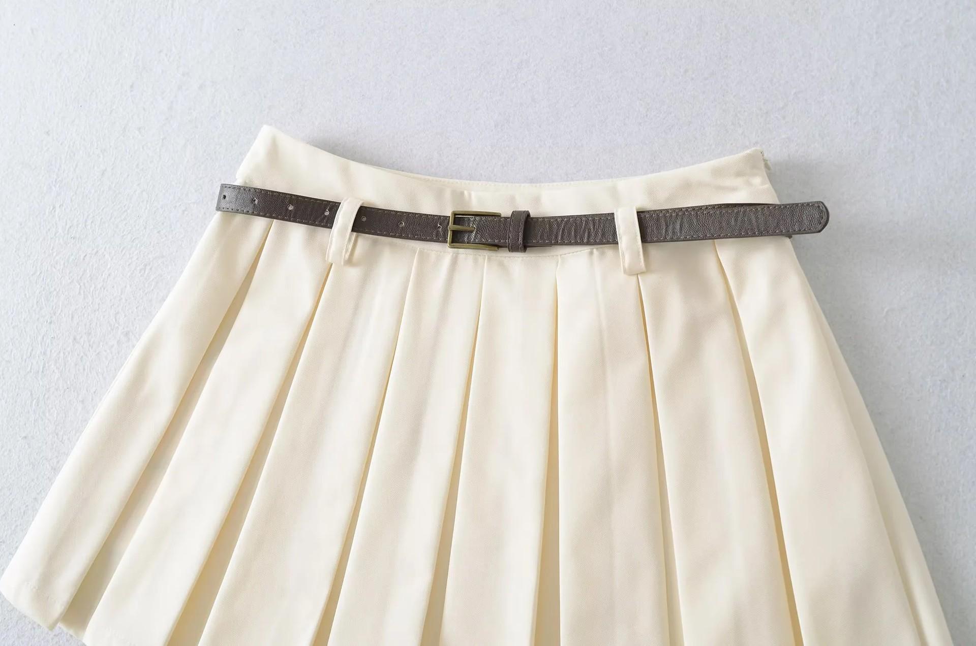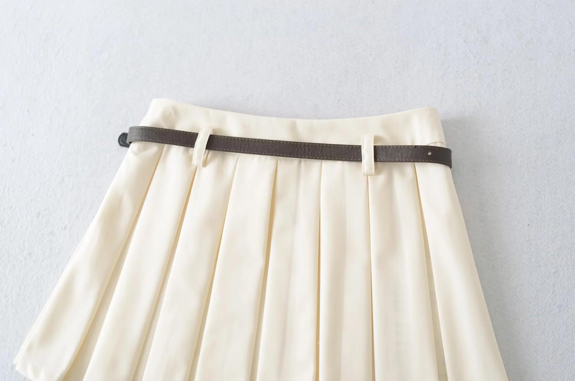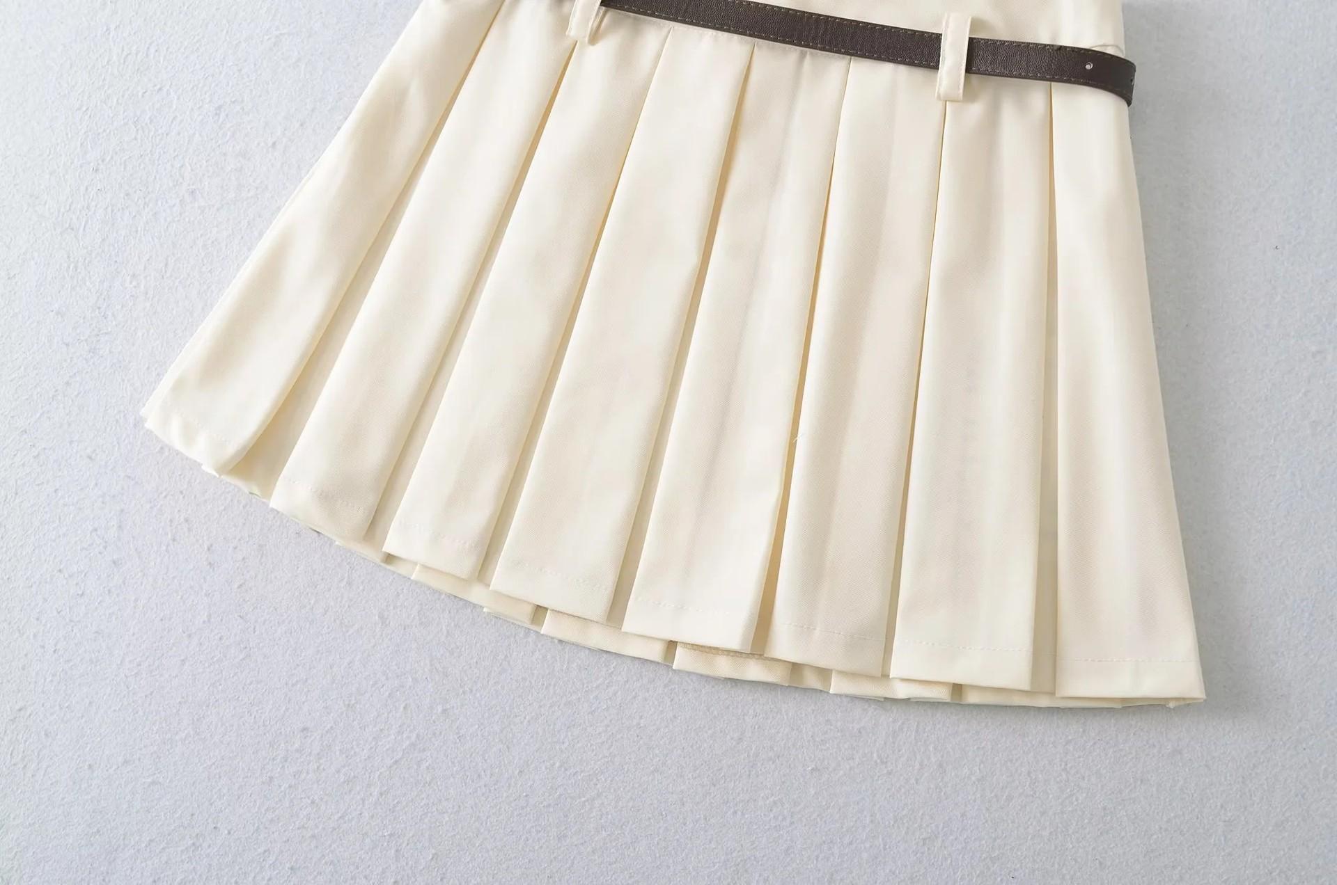 Falda Plisada Estilo Universitario Cintura Alta Niña con Cinturón Anti-Exposición Adelgazante Línea A Falda Corta Falda Petite