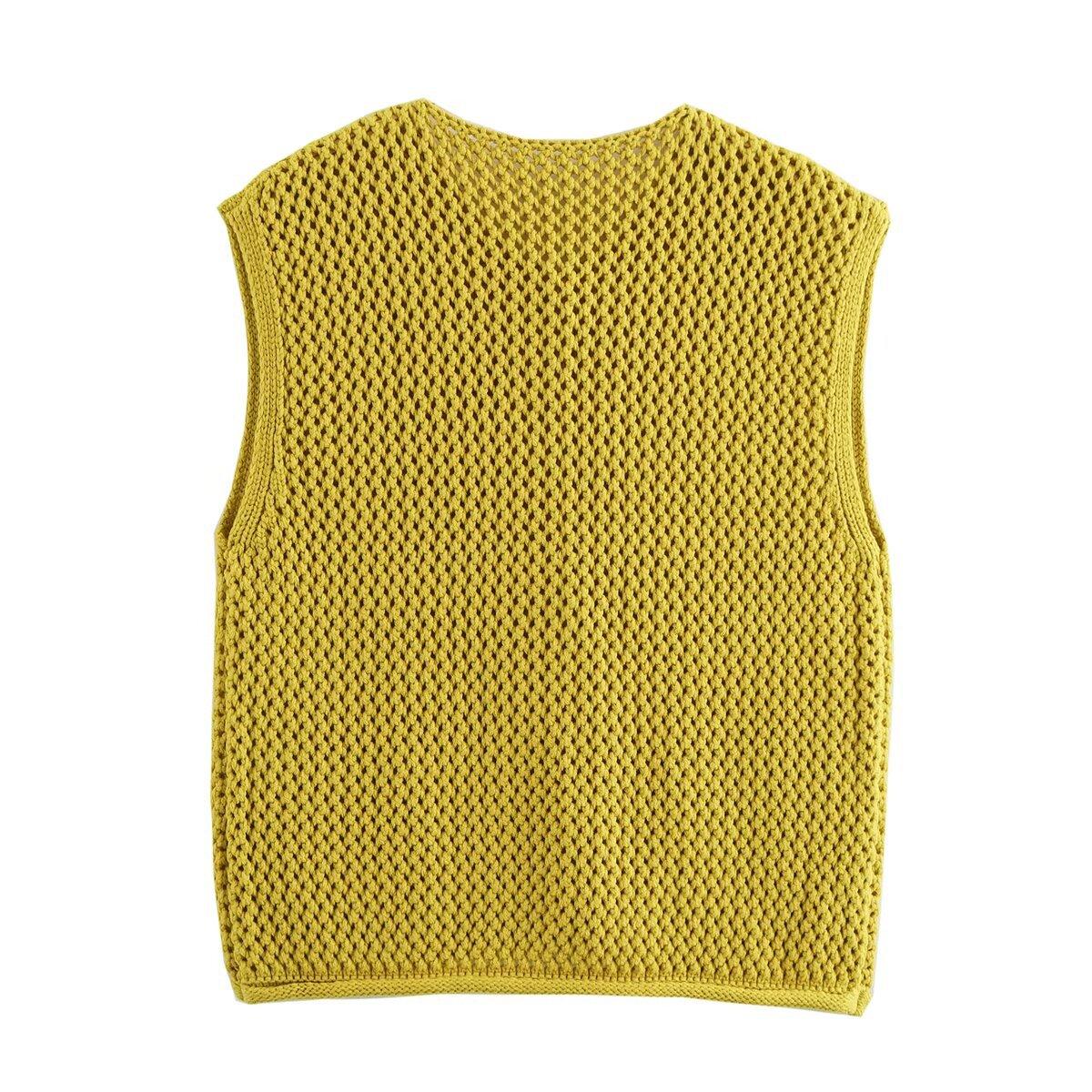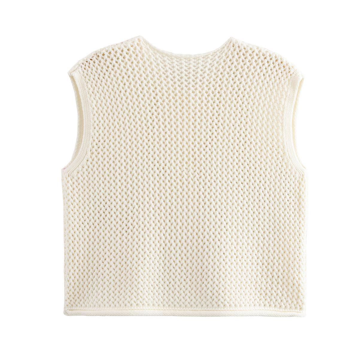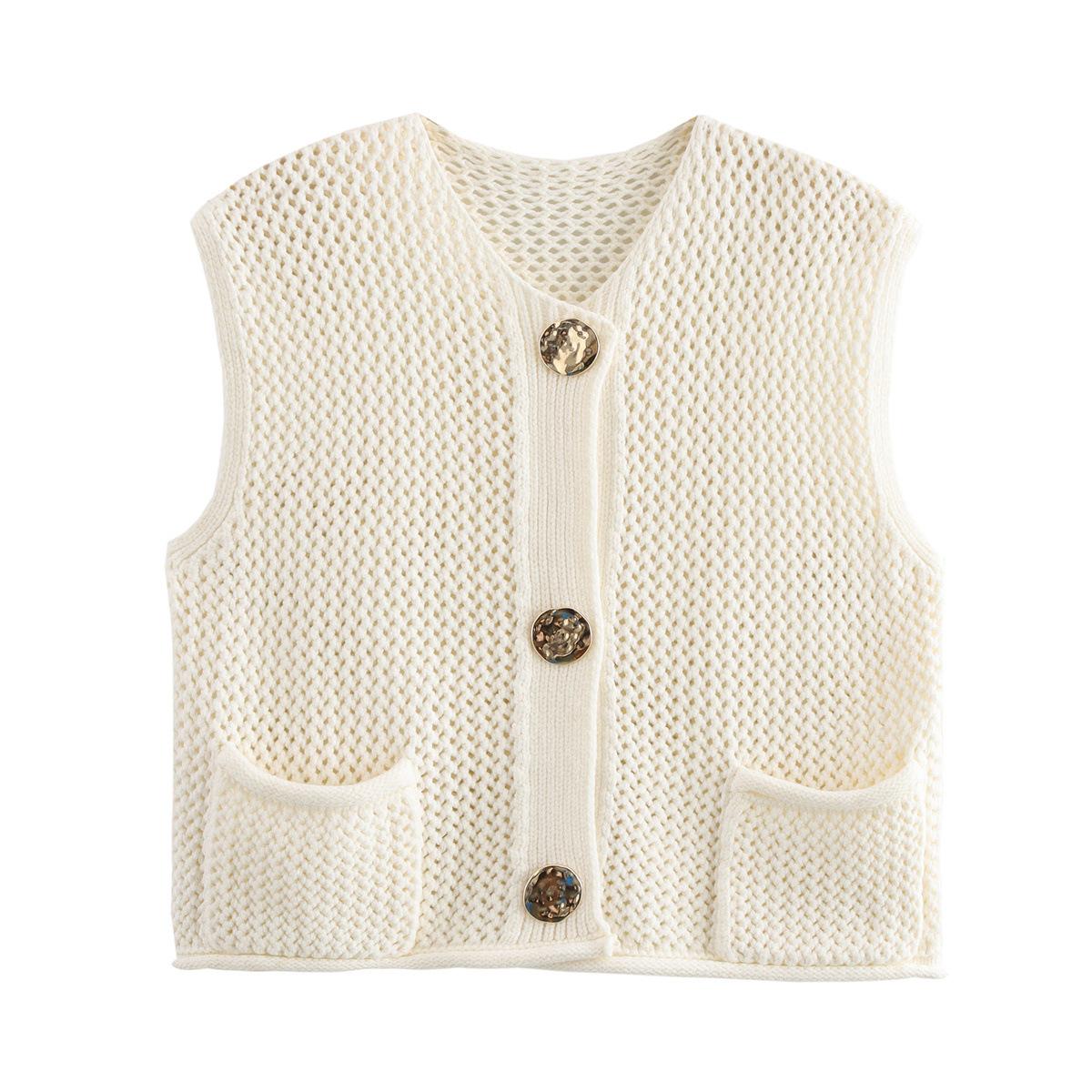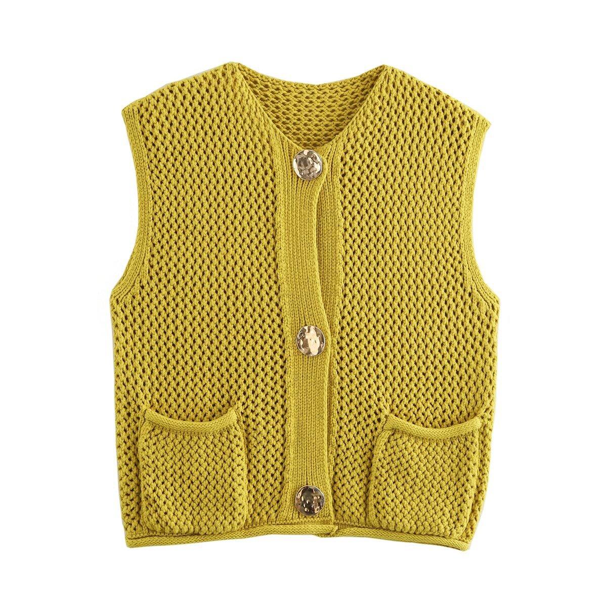 Ropa de Otoño para Mujer Nueva 2024 Estilo Europeo y Americano Moda Simple Versátil Casual Top Chaleco de Punto de Aguja Gruesa