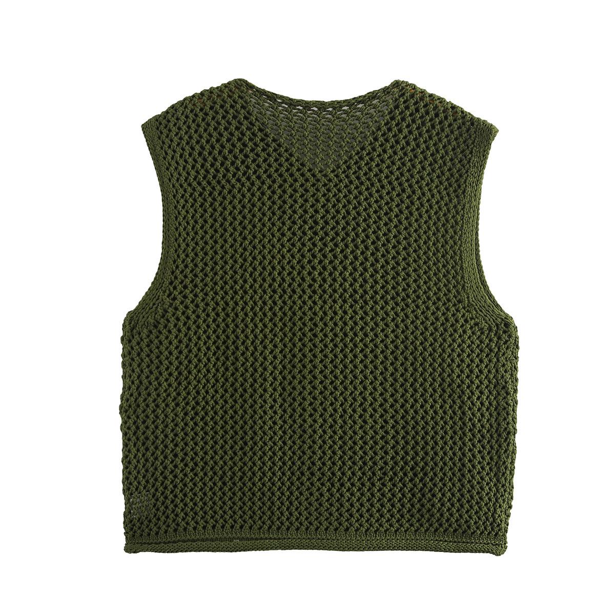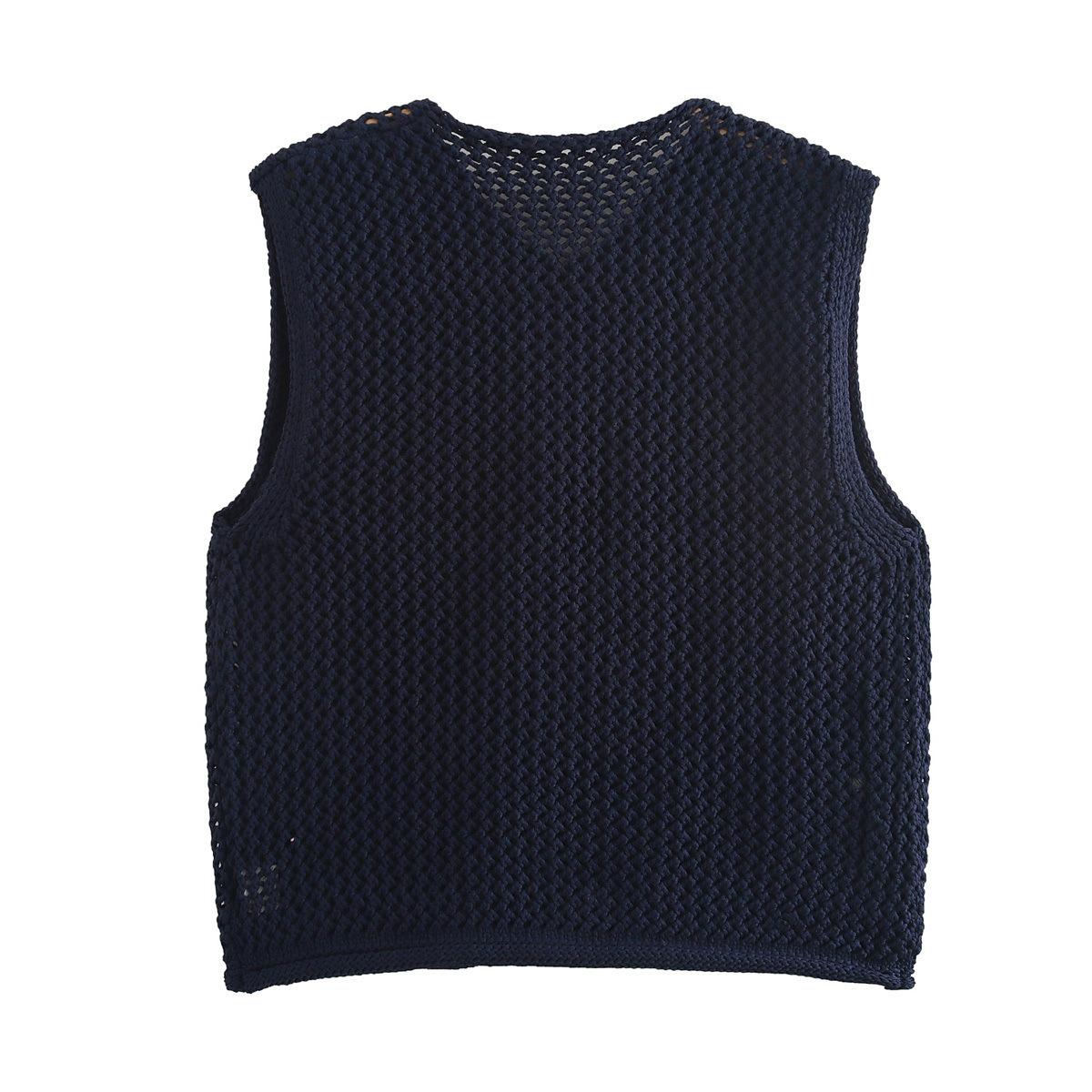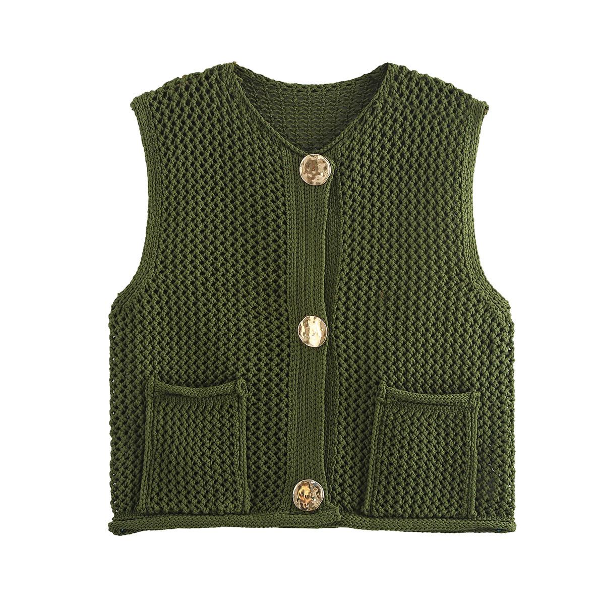 Ropa de Otoño para Mujer Nueva 2024 Estilo Europeo y Americano Moda Simple Versátil Casual Top Chaleco de Punto de Aguja Gruesa
