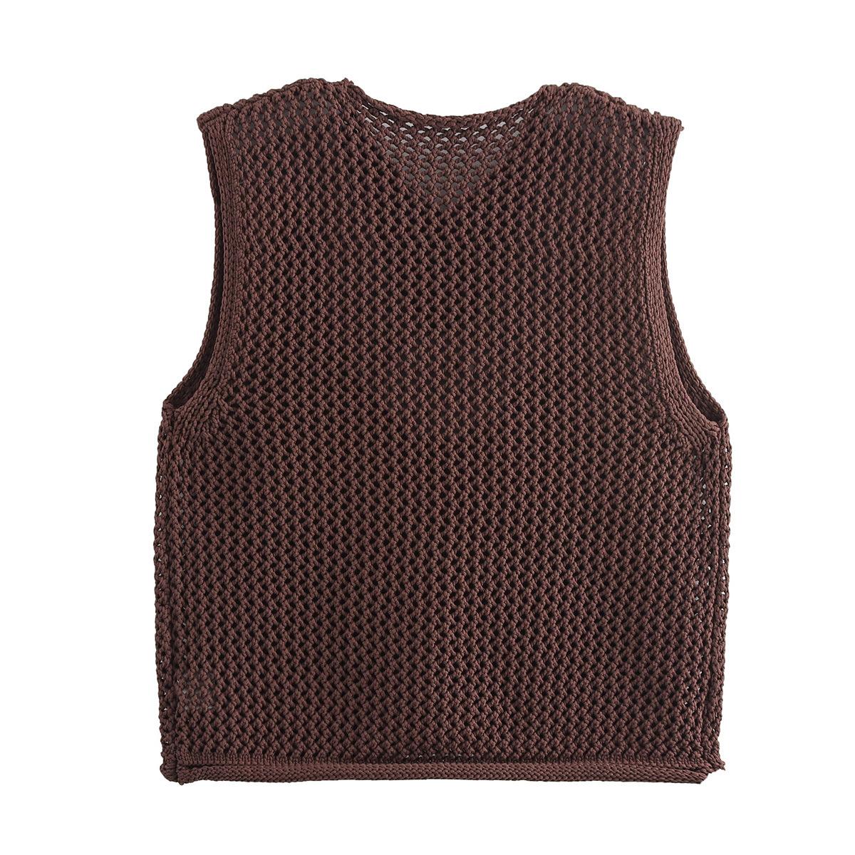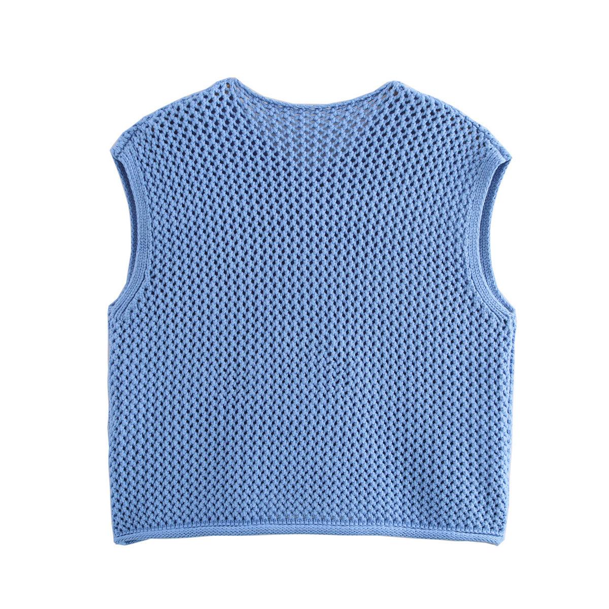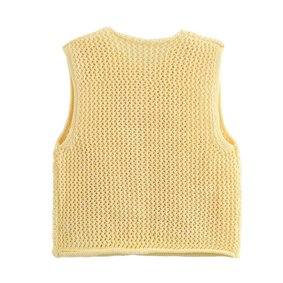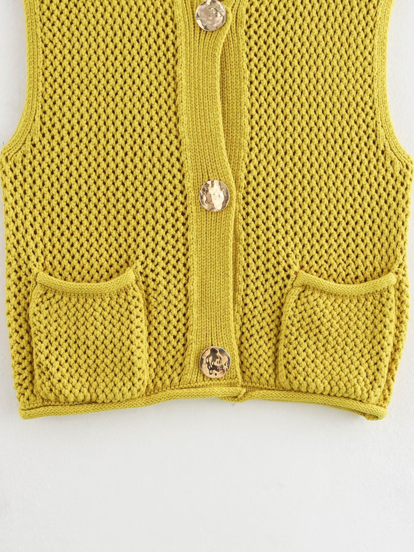 Ropa de Otoño para Mujer Nueva 2024 Estilo Europeo y Americano Moda Simple Versátil Casual Top Chaleco de Punto de Aguja Gruesa
