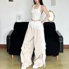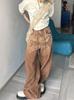 Primavera y Verano 2025 Nuevo Jacquard de Letras Bolsillo de Lata Estilo Celebridad de Internet Cintura Alta Adelgazantes Pantalones Jeans Acampanados