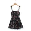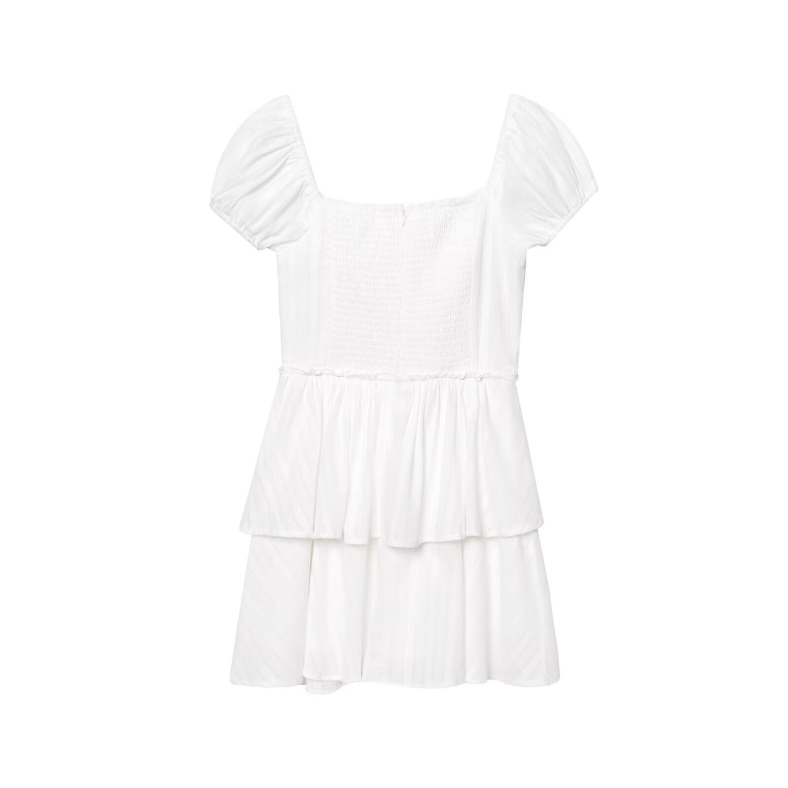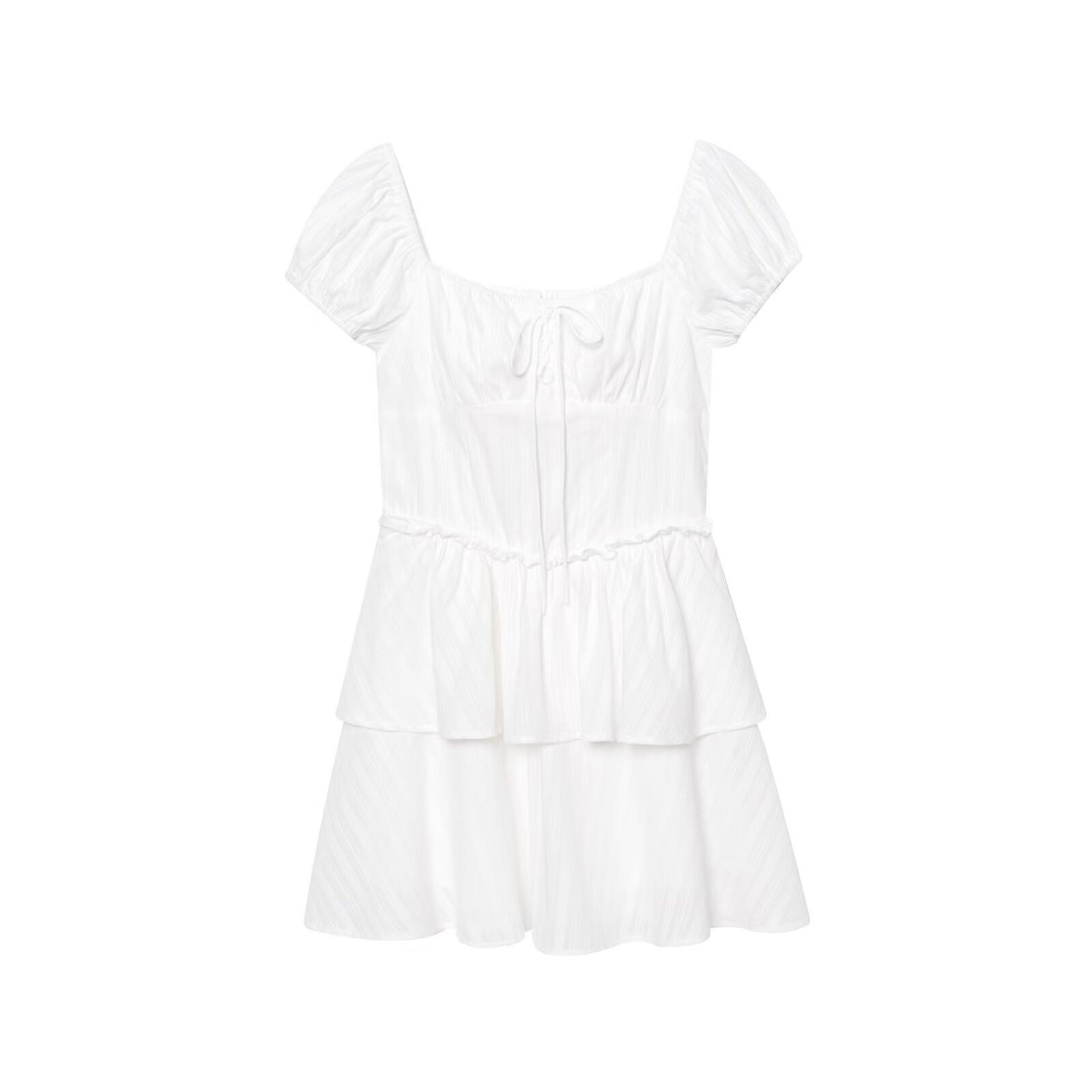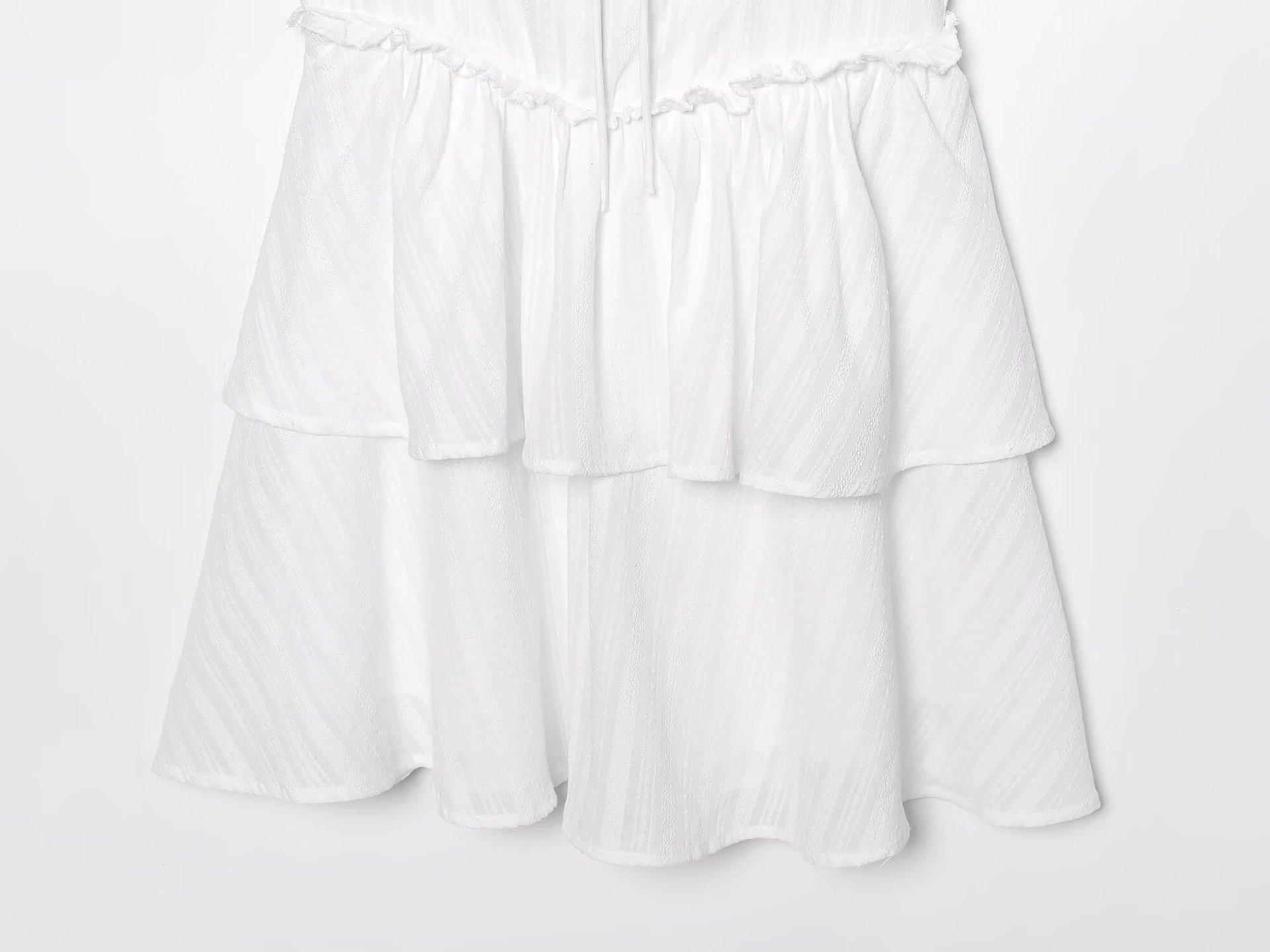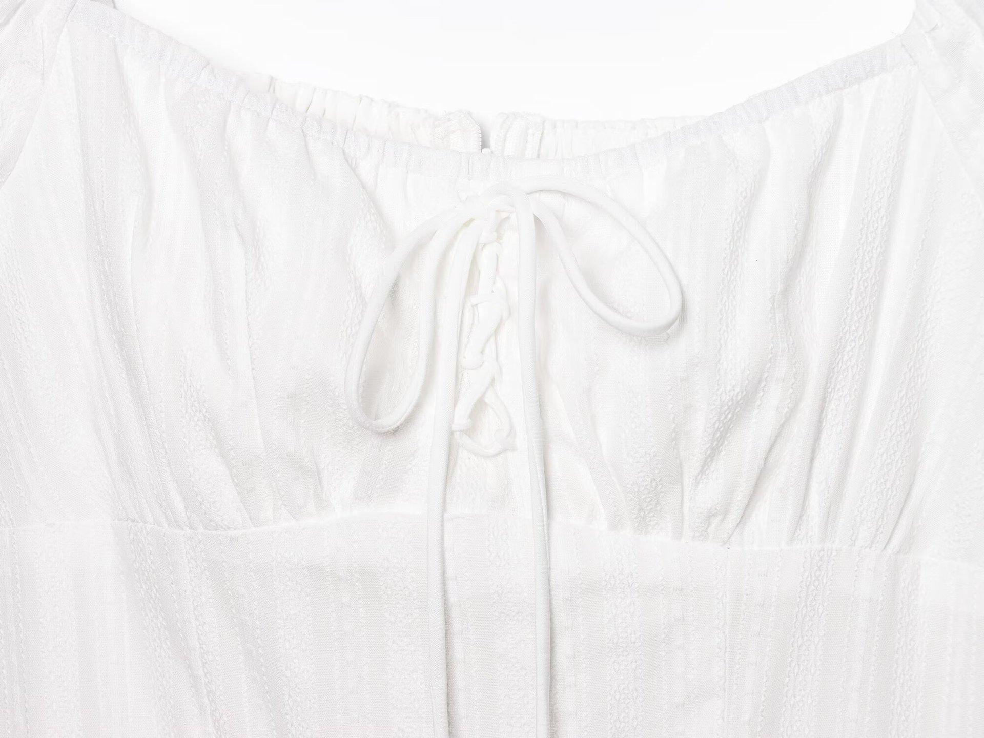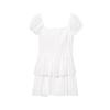 Z Transfronterizo Verano Diseño Nicho Mujer Blanco Cuello Cuadrado Tirantes Cintura Adelgazante Vestido Dobladillo Oreja Falda Corta