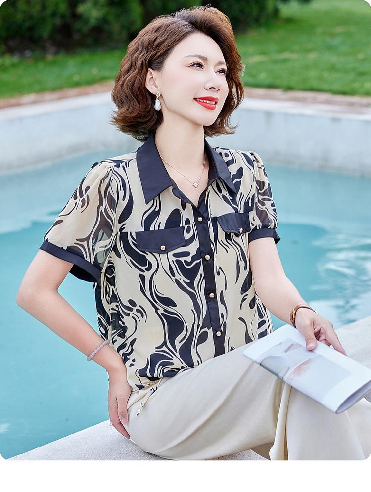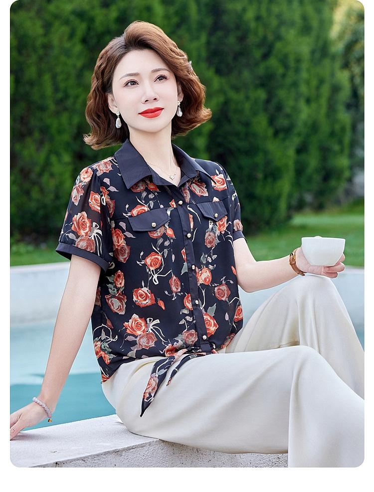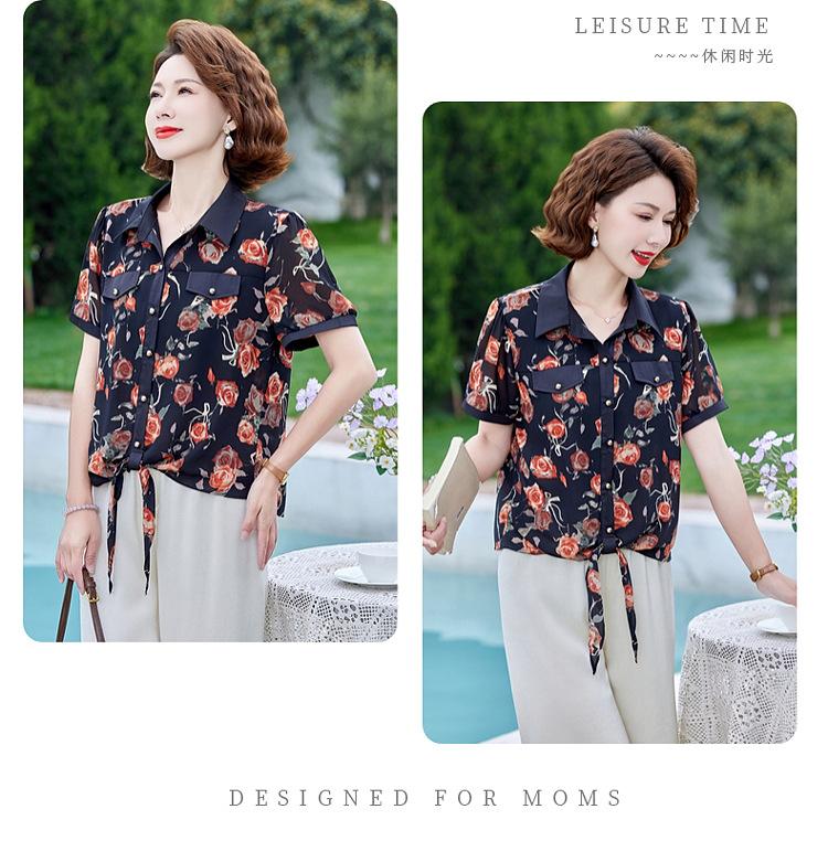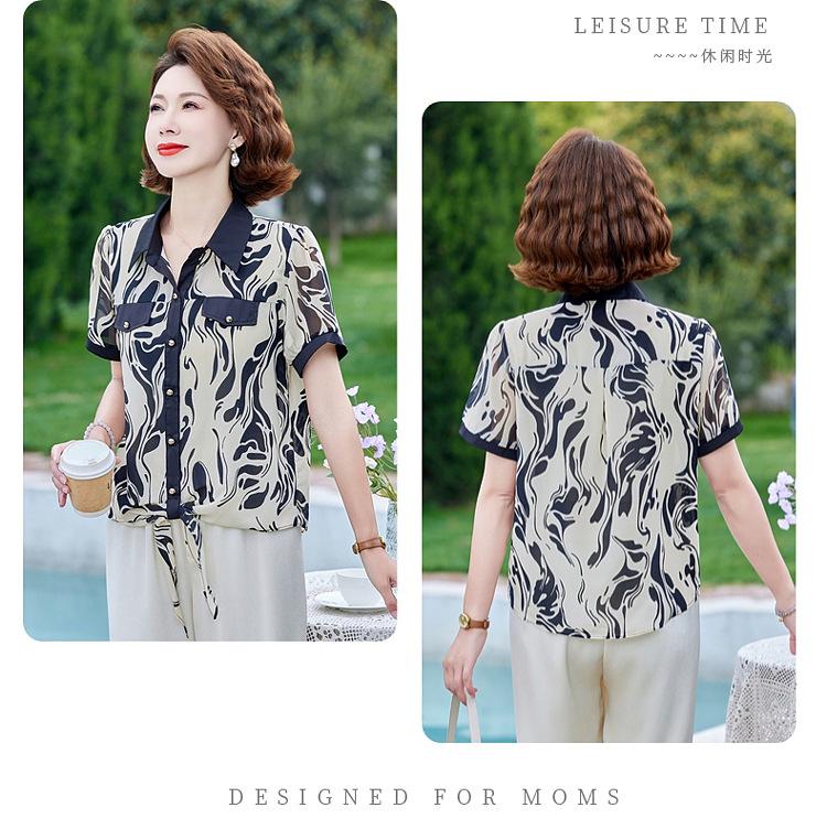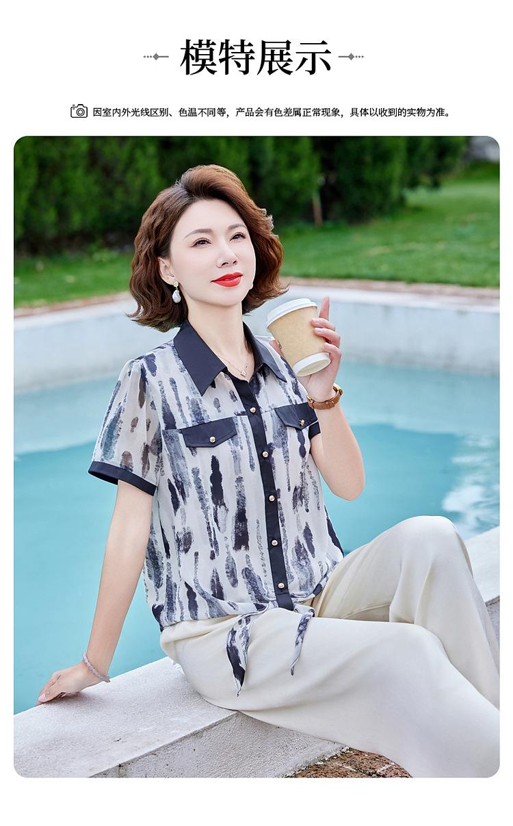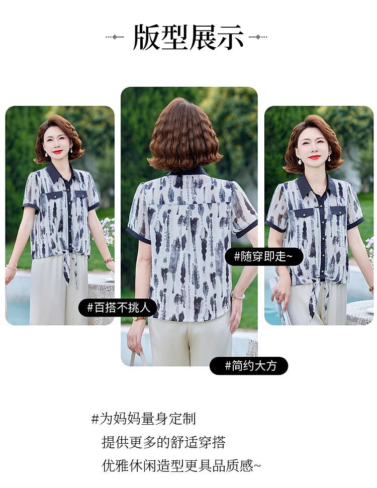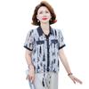 2025 Verano Nueva Moda Camisa de Manga Corta para Madre Camisa Elegante con Solapa para Mujeres de Mediana Edad y Mayores Top Cubre-carne