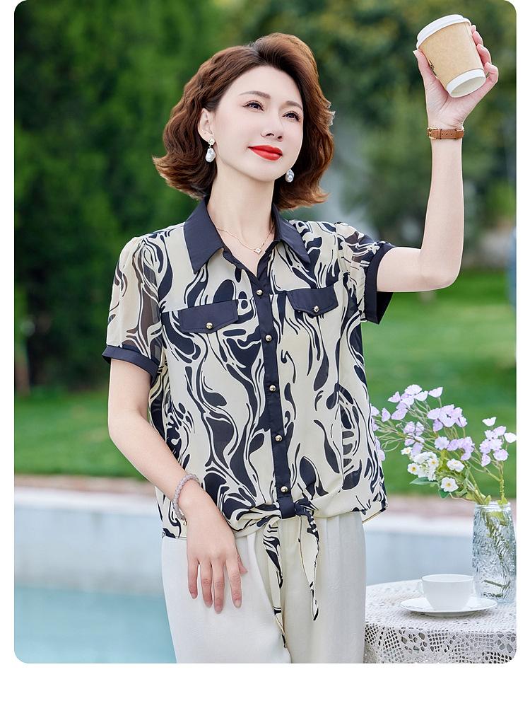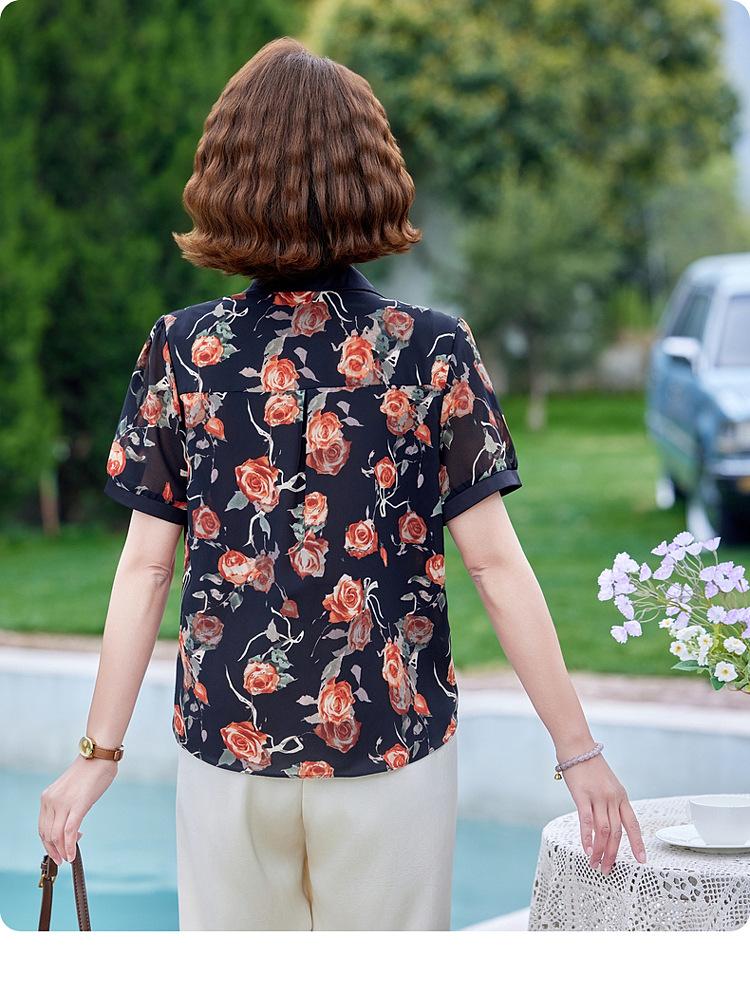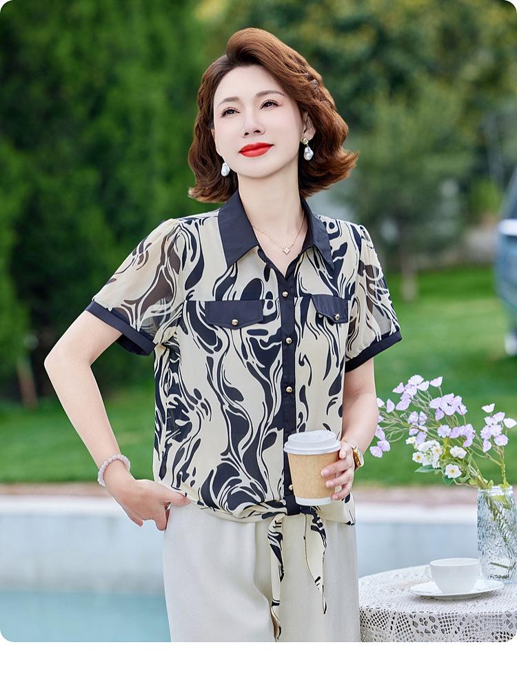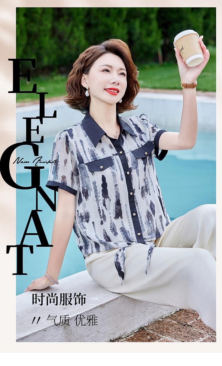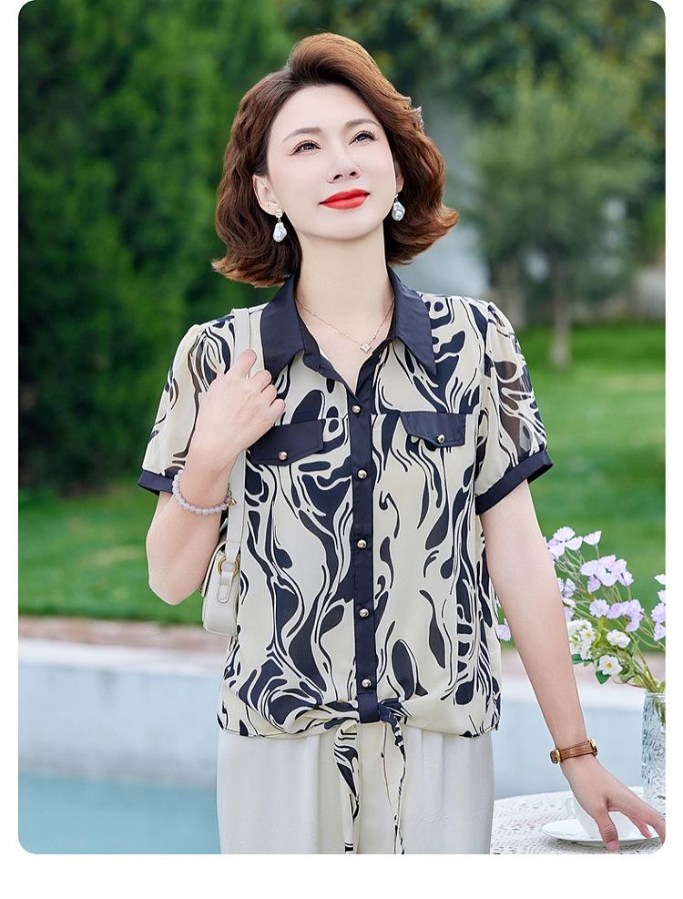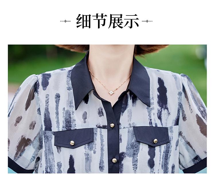 2025 Verano Nueva Moda Camisa de Manga Corta para Madre Camisa Elegante con Solapa para Mujeres de Mediana Edad y Mayores Top Cubre-carne