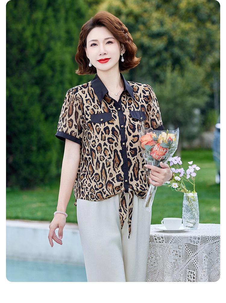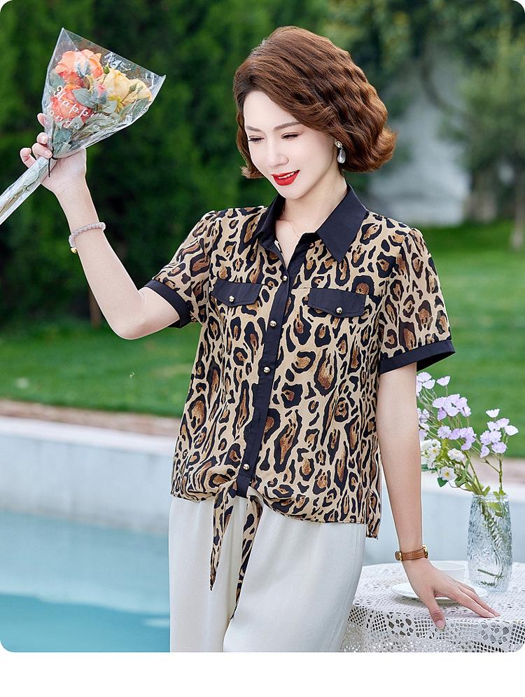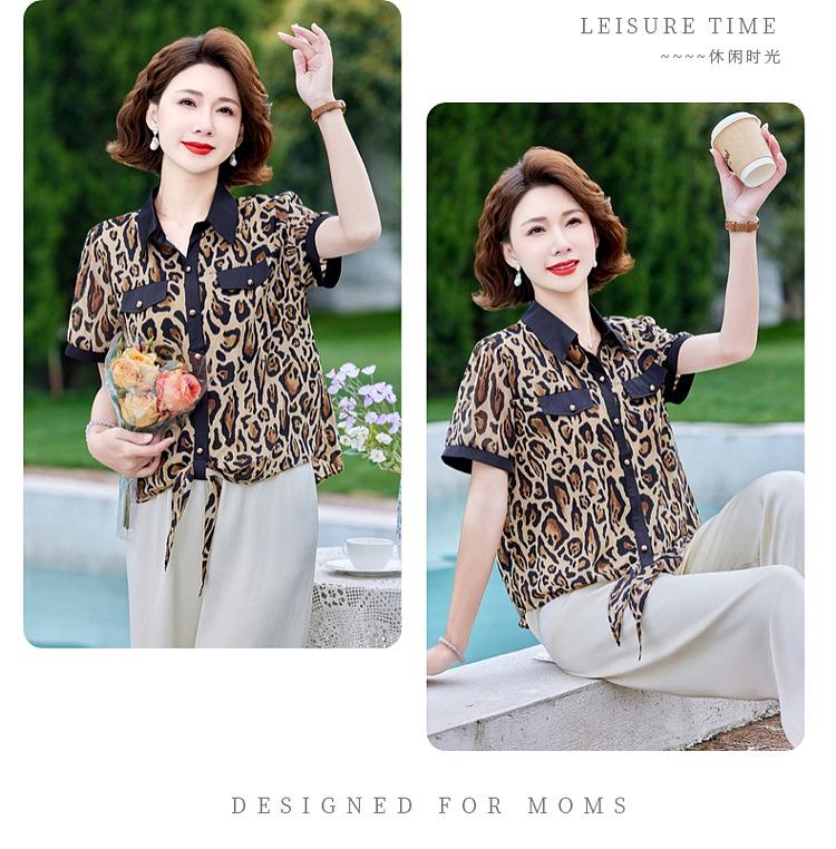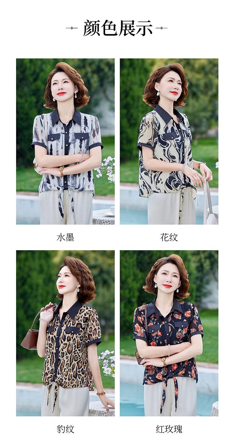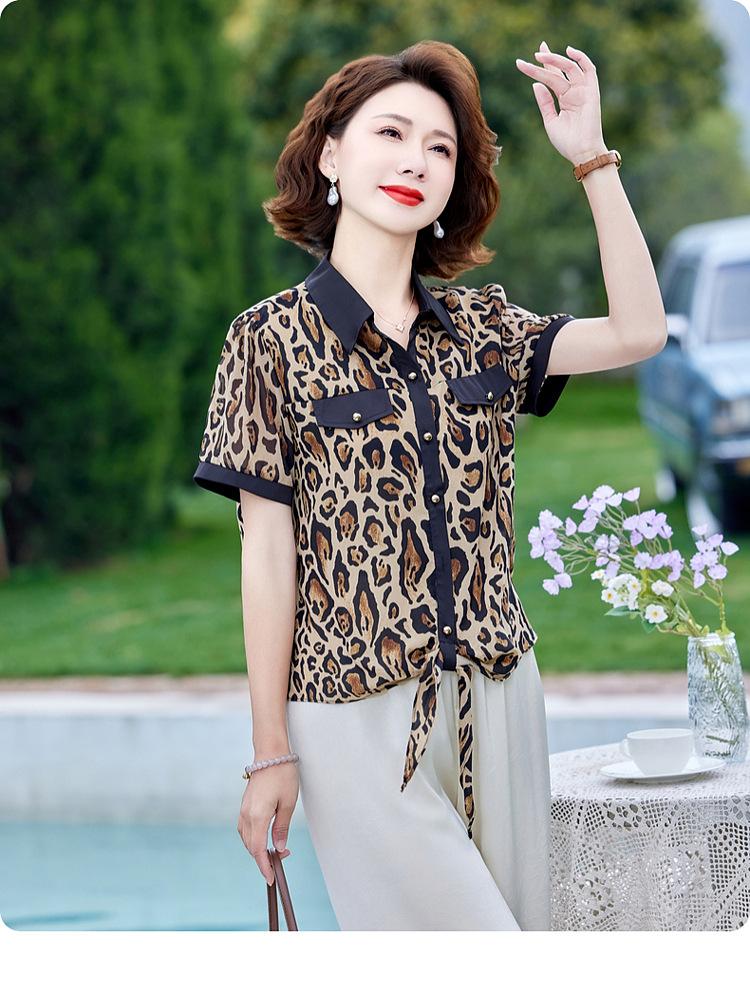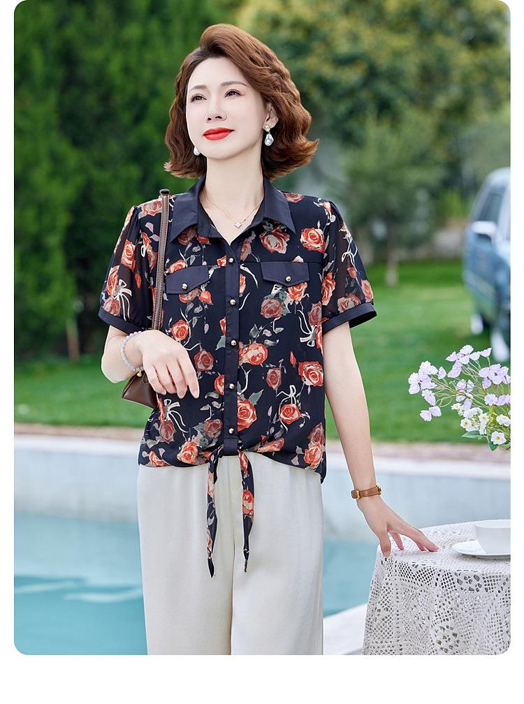 2025 Verano Nueva Moda Camisa de Manga Corta para Madre Camisa Elegante con Solapa para Mujeres de Mediana Edad y Mayores Top Cubre-carne