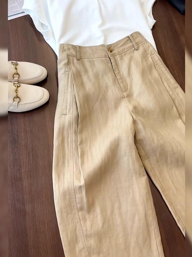 Pantalones japoneses sencillos de cintura alta, versátiles, de pierna ancha, para mujer, de verano, finos, de estilo perezoso, sueltos, cómodos y rectos