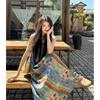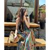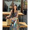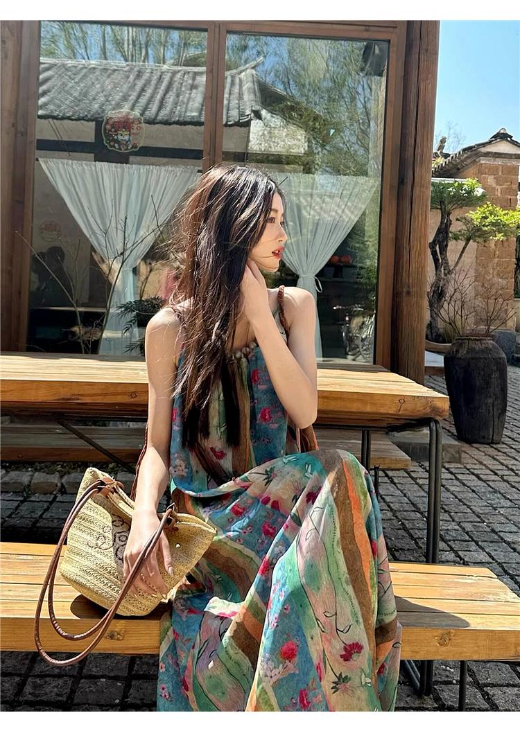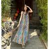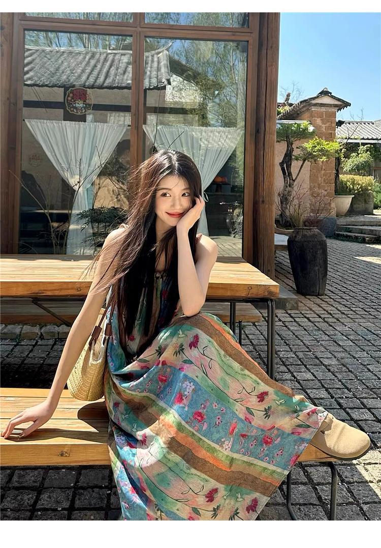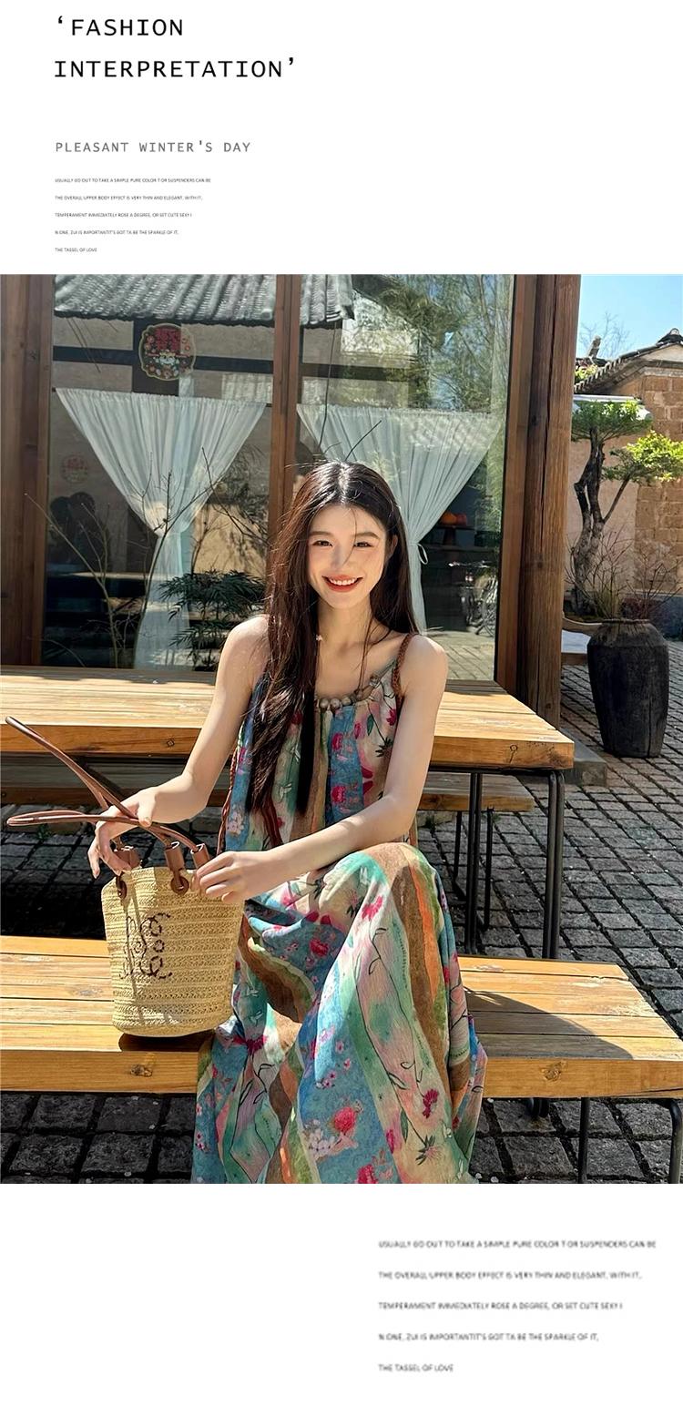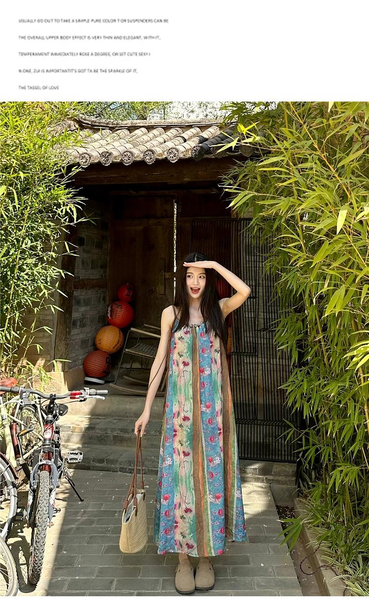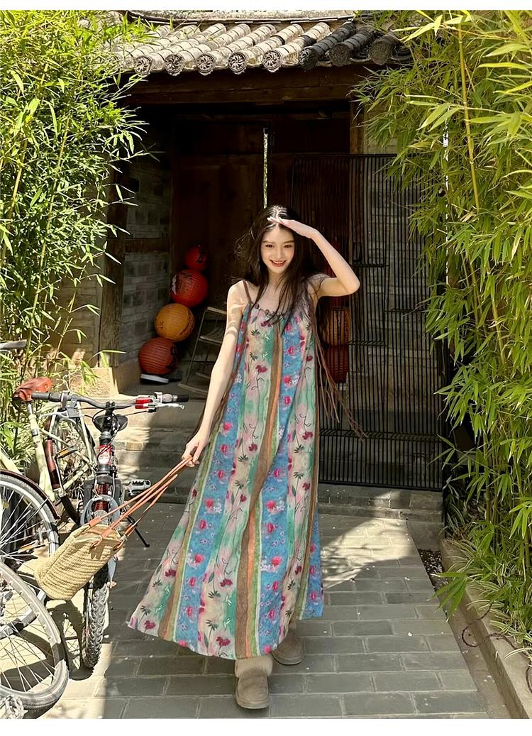 Vestido de tirantes 2025 Verano Nuevo Estilo Retro Floral Estilo Vacacional Sin Mangas Petite Vestido Largo para Mujer