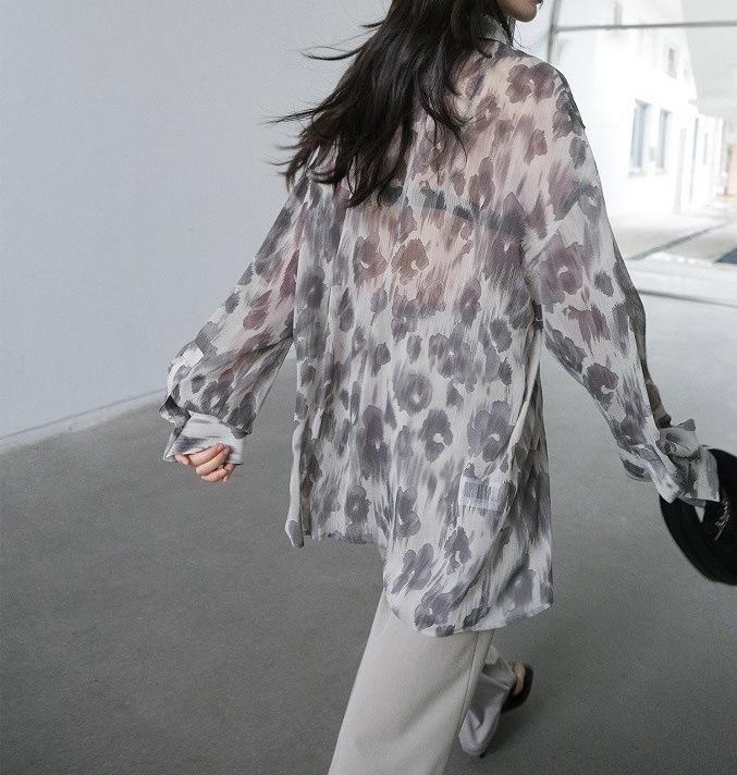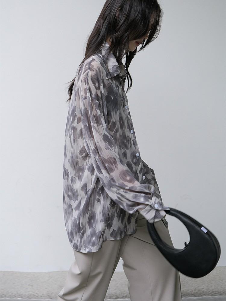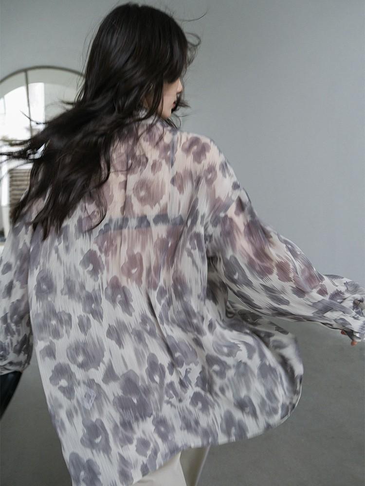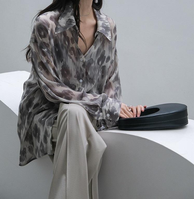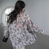 Camisa de Manga Larga con Estampado Floral de Estilo Perezoso, Diseño de Nicho con Sentido Dape, Camisa Delgada y Sedosa con Protección Solar para Mujer