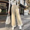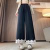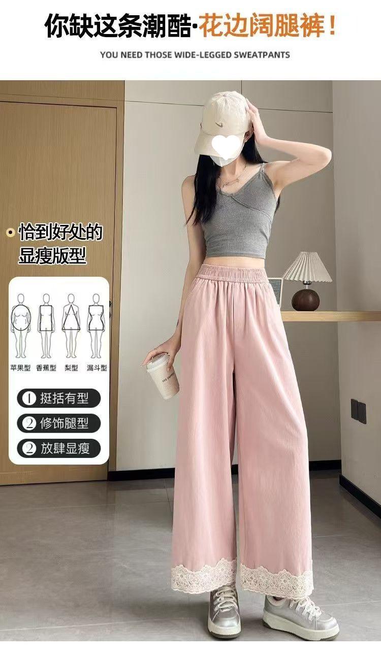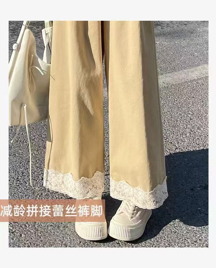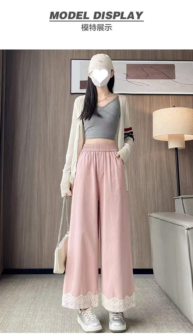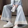 Pantalones de Pierna Ancha de Encaje de Algodón Lavado para Mujer, Nuevo Estilo de Primavera y Verano, Dulces y con Caída, Suaves, Casuales Rectos Nueve Puntos