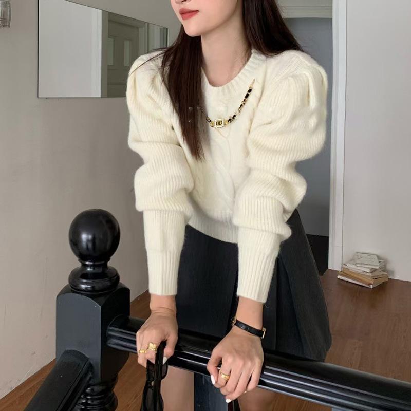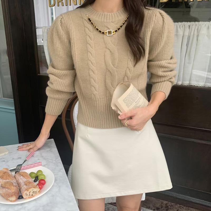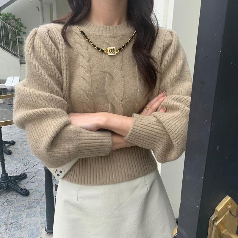 Suéter corto de punto retro con trenzas para mujer otoño e invierno Nuevo Cintura alta adelgazante temperamento diseño nicho suéter