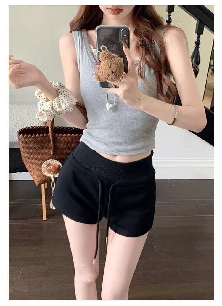 2025 Pantalones Cortos Deportivos Hot Girl para Mujer Verano Cordón Ajustable Slim Casual Yoga Americano Sexy Cubre Caderas Cintura Baja Pantalones Cortos