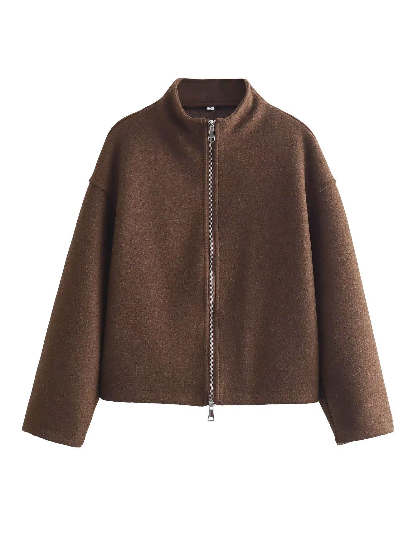 Ropa Europea y Americana Transfronteriza Aliexpress Popular Abrigo Deportivo Cuello Alto Suelto Manga Larga Abrigo de Lana para Mujer Chaqueta
