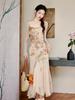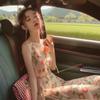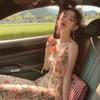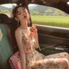 Vestido de Tirantes Romántico Estilo Francés Estampado de Albaricoque de Arroz para Mujer Verano Elegante Hermoso Salado Dulce Vestido de Alta Gama